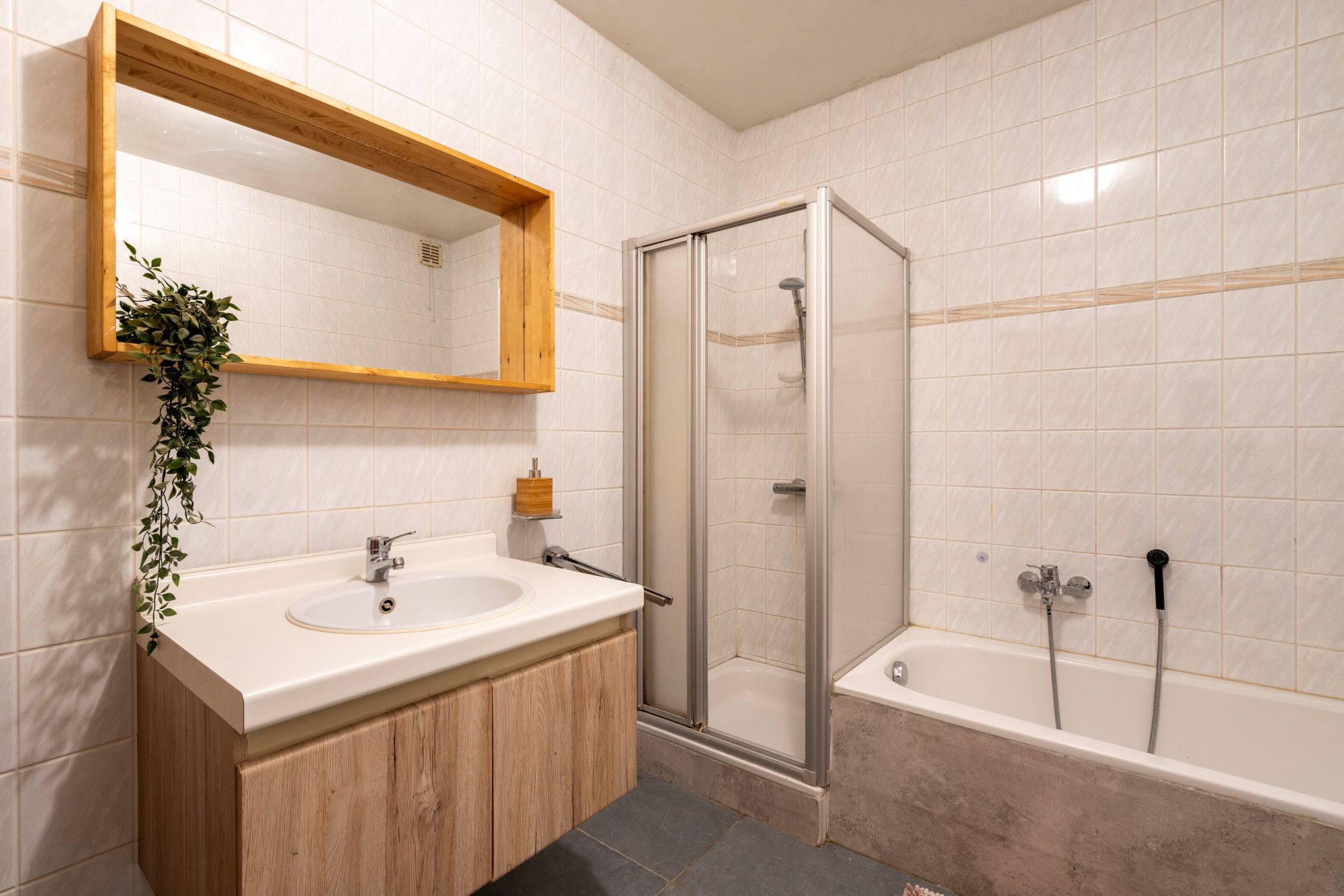 Badkamer 1, gelegen op niveau 0, is uitgerust met een douche, een bad en een lavabo.