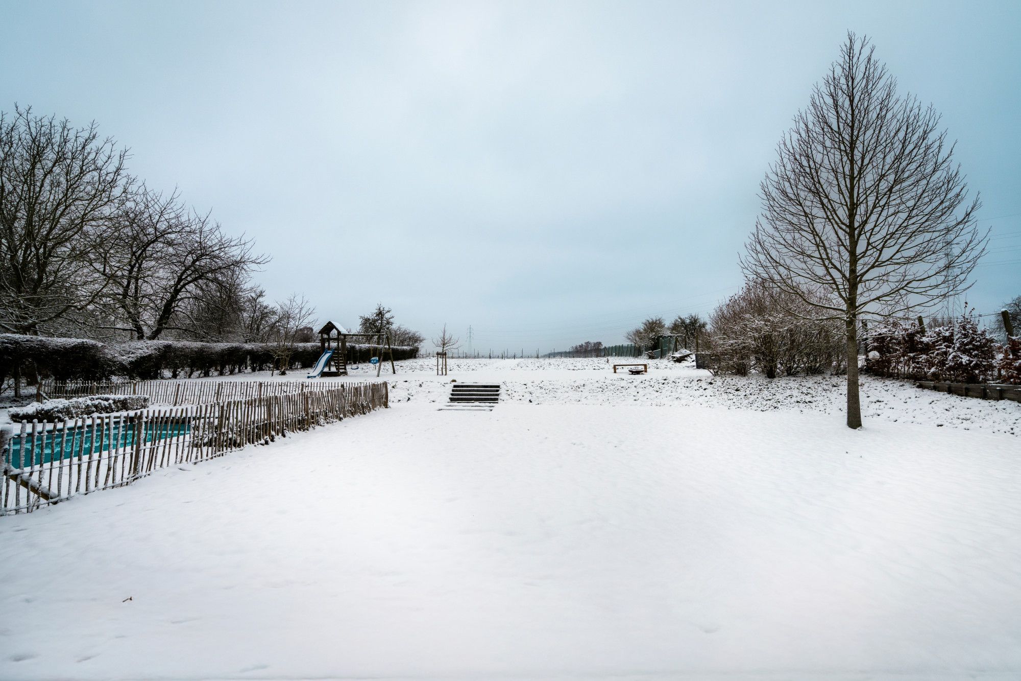 Buiten geniet u van een rustig gelegen tuin met een vrij en open uitzicht over de omliggende weilanden. Het verwarmde buitenzwembad van 10 x 4 meter, uitgerust met zoutelektrolyse, een solarscherm én een aparte warmtepomp, vormt samen met de verschillende terrassen een uitnodigende plek om in alle rust te ontspannen.
