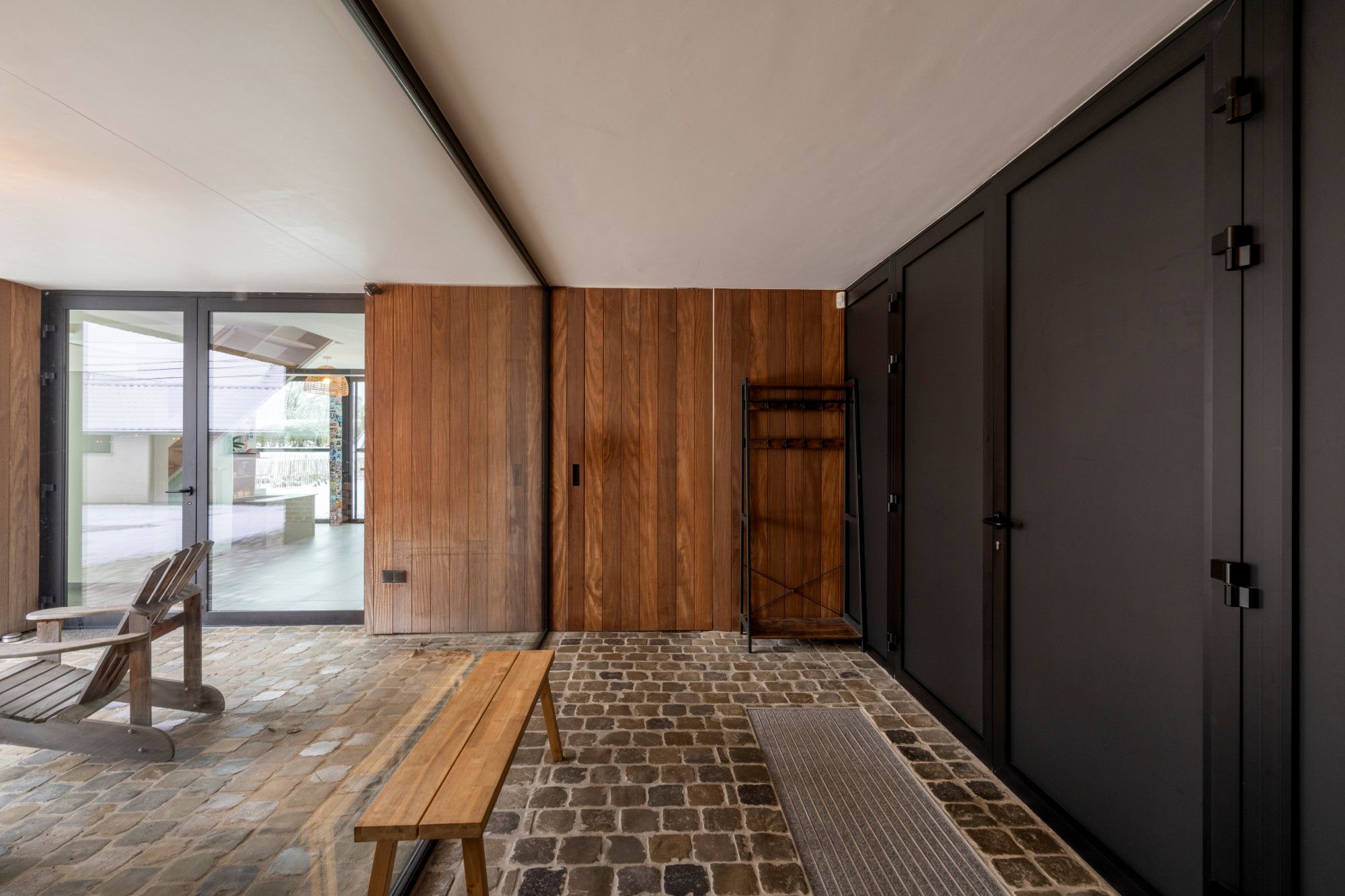De hoeve is opgebouwd rond een sfeervolle, beschutte binnenkoer die meteen bij het binnenkomen tot de verbeelding spreekt. De inkomhal, met panoramisch zicht op deze binnenkoer, beschikt over een gastentoilet en vestiaire en vormt de elegante spil van de woning. Verder zijn er een dubbele inpandige garage en ruime berging die zorgen voor praktisch comfort.