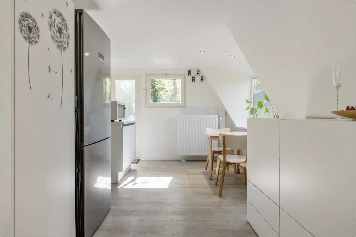 Deze instapklare, gerenoveerde chalet heeft een ruime, lichtrijke leefruimte met geïnstalleerde keuken.