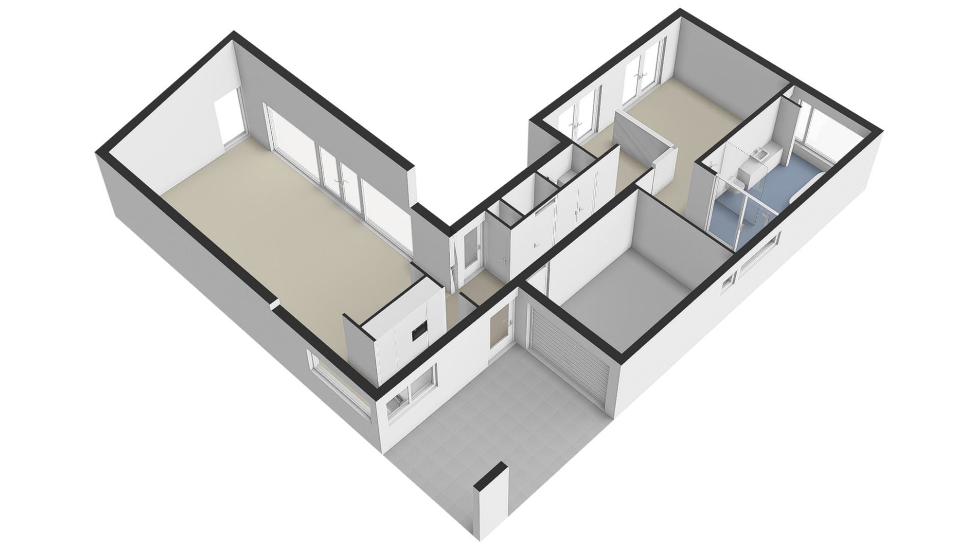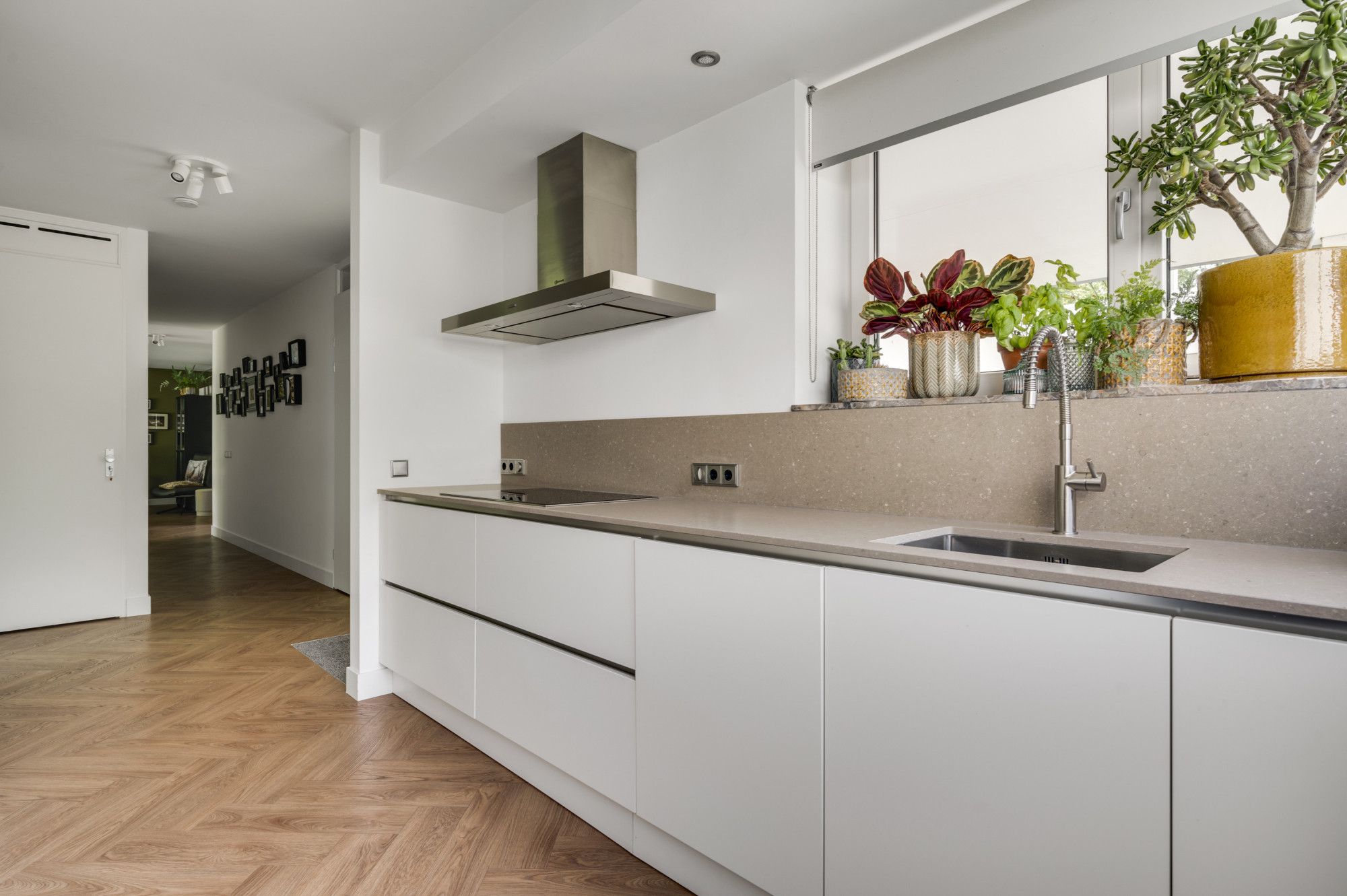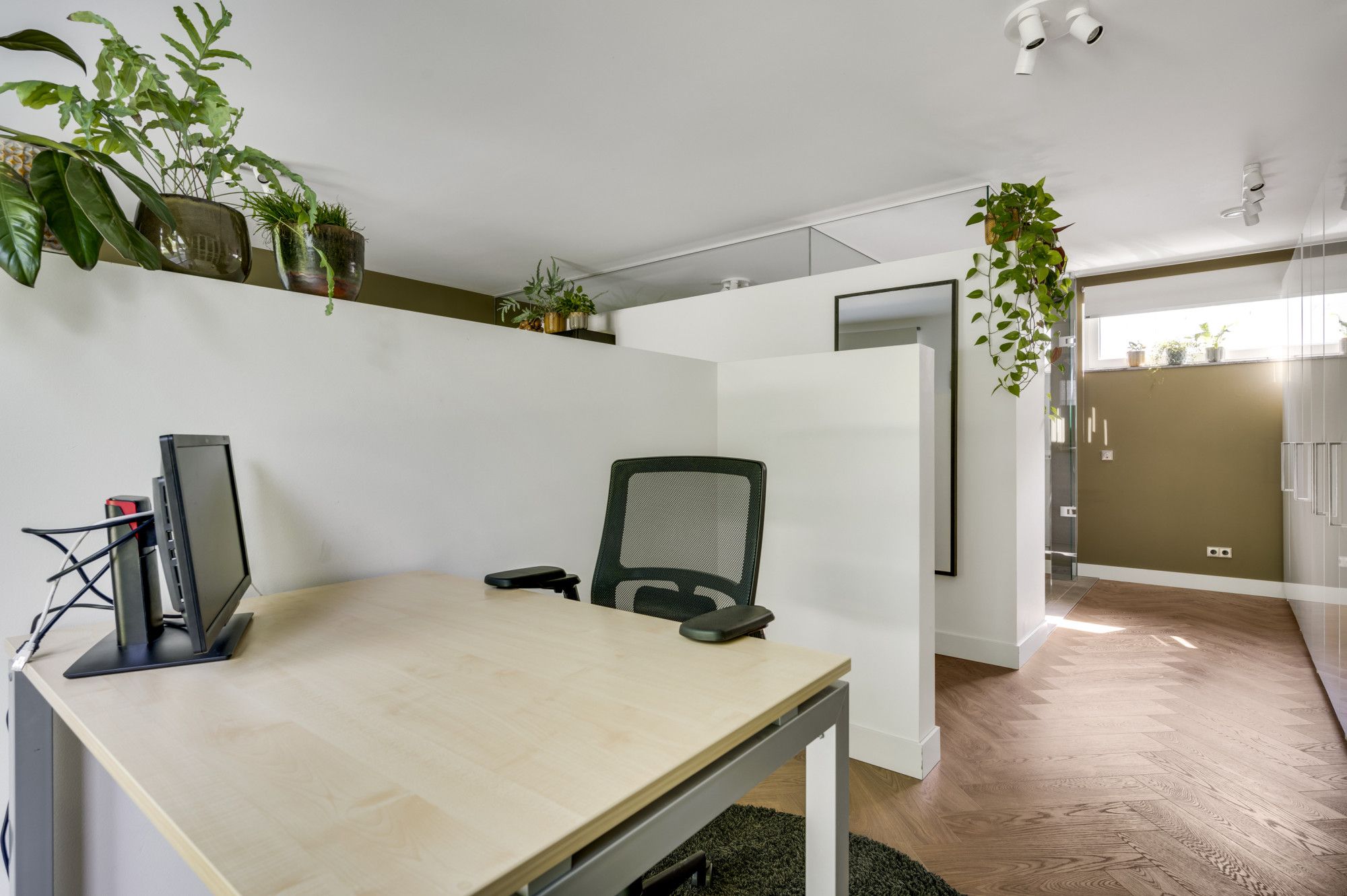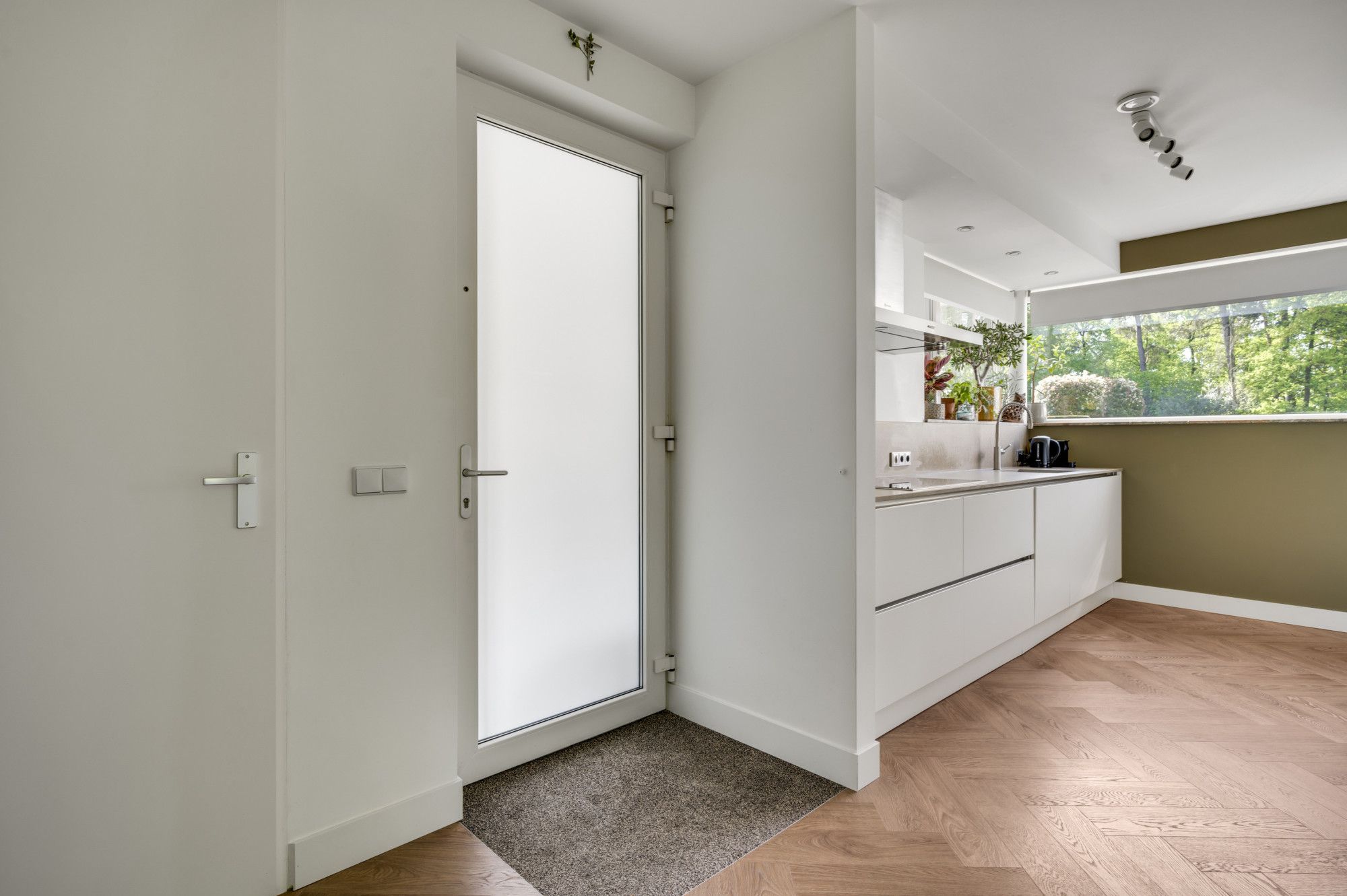De woning is geheel voorzien van een dorpel-loos gelegde PVC-vloer in visgraat design.