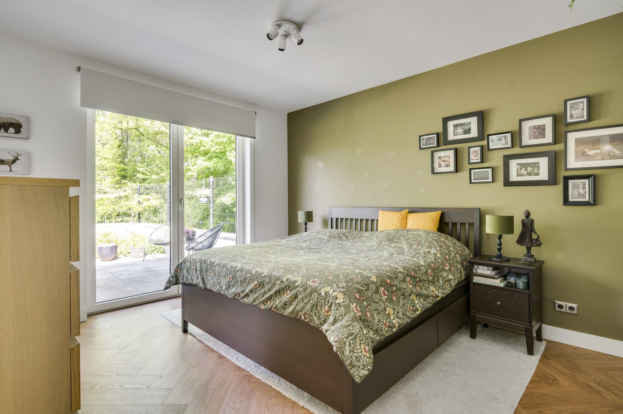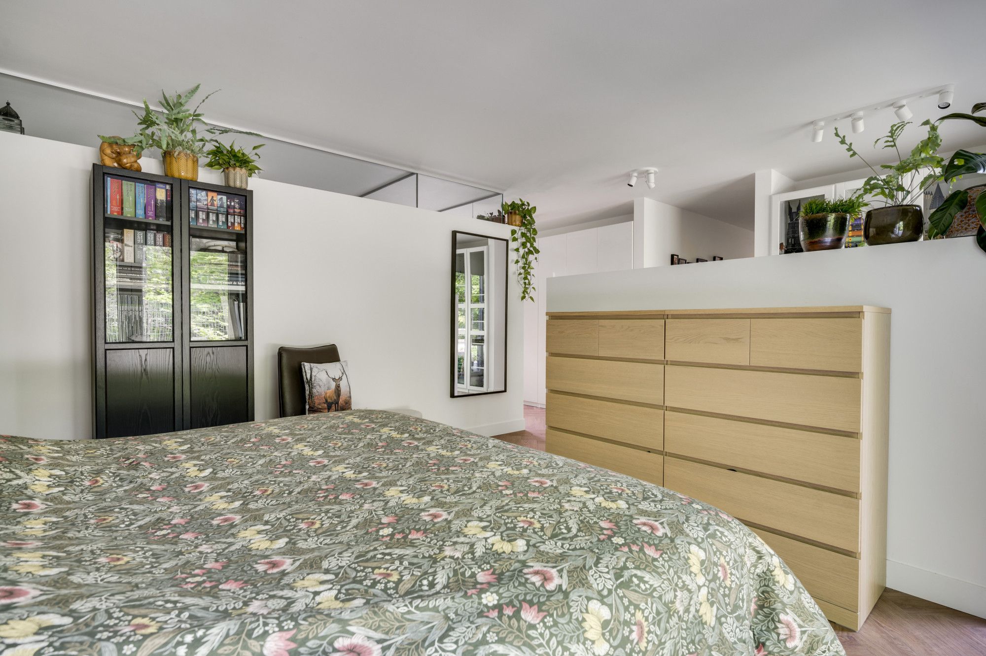 Ontspan in de serene ambiance van de slaapkamer en lichte werkkamer, beide verbonden met het terras en de fraai aangelegde en uitstekend onderhouden tuin. De eigentijds vormgegeven badkamer biedt een oase van rust, met een vrijstaand ligbad, inloopregendouche en een panoramisch uitzicht op het groen.