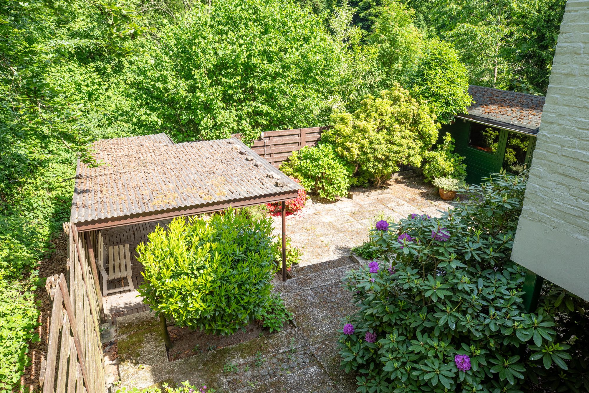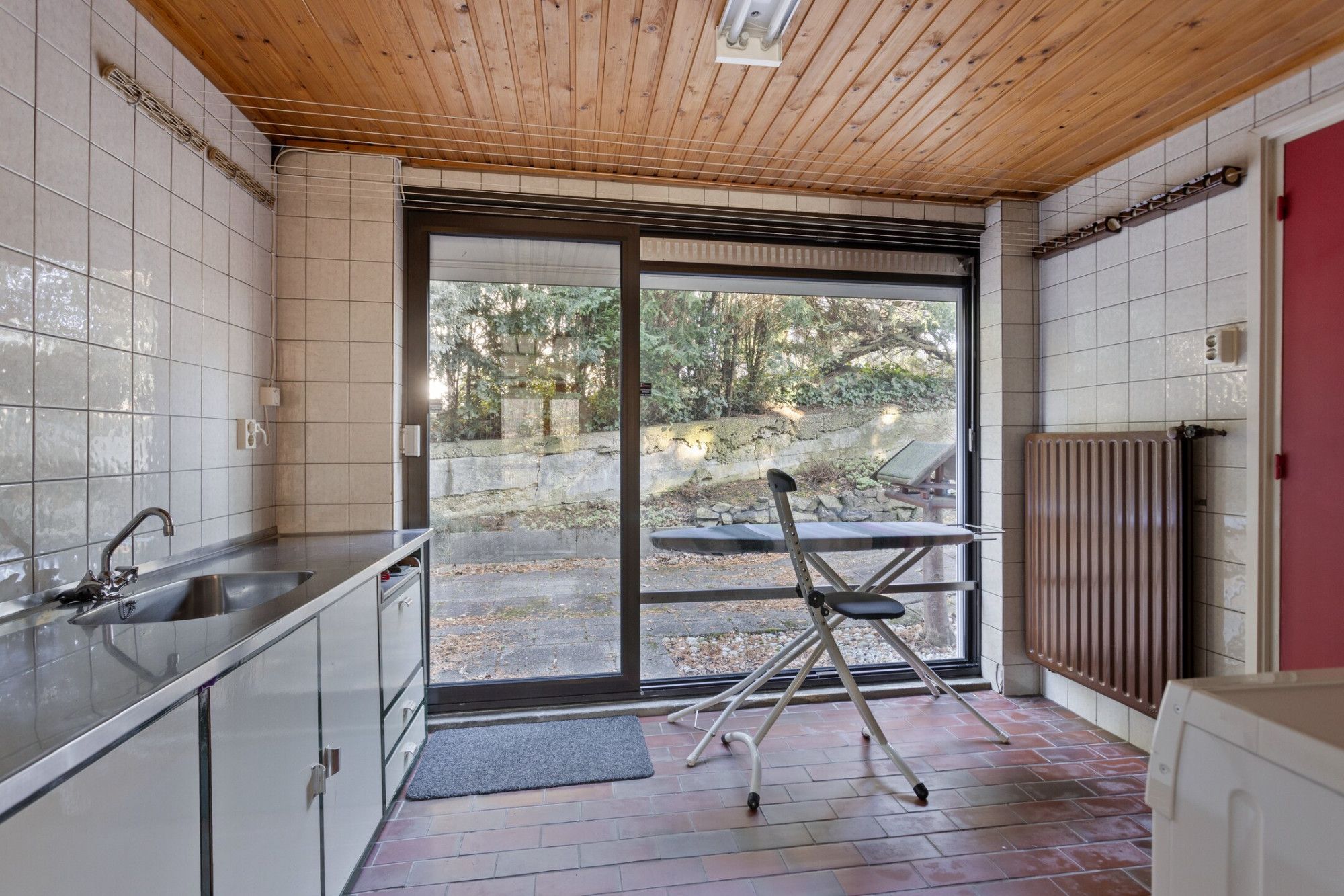 Vanuit de hal gaat u naar de achtertuin, waar u geniet van absolute privacy temidden van het omliggende bos.