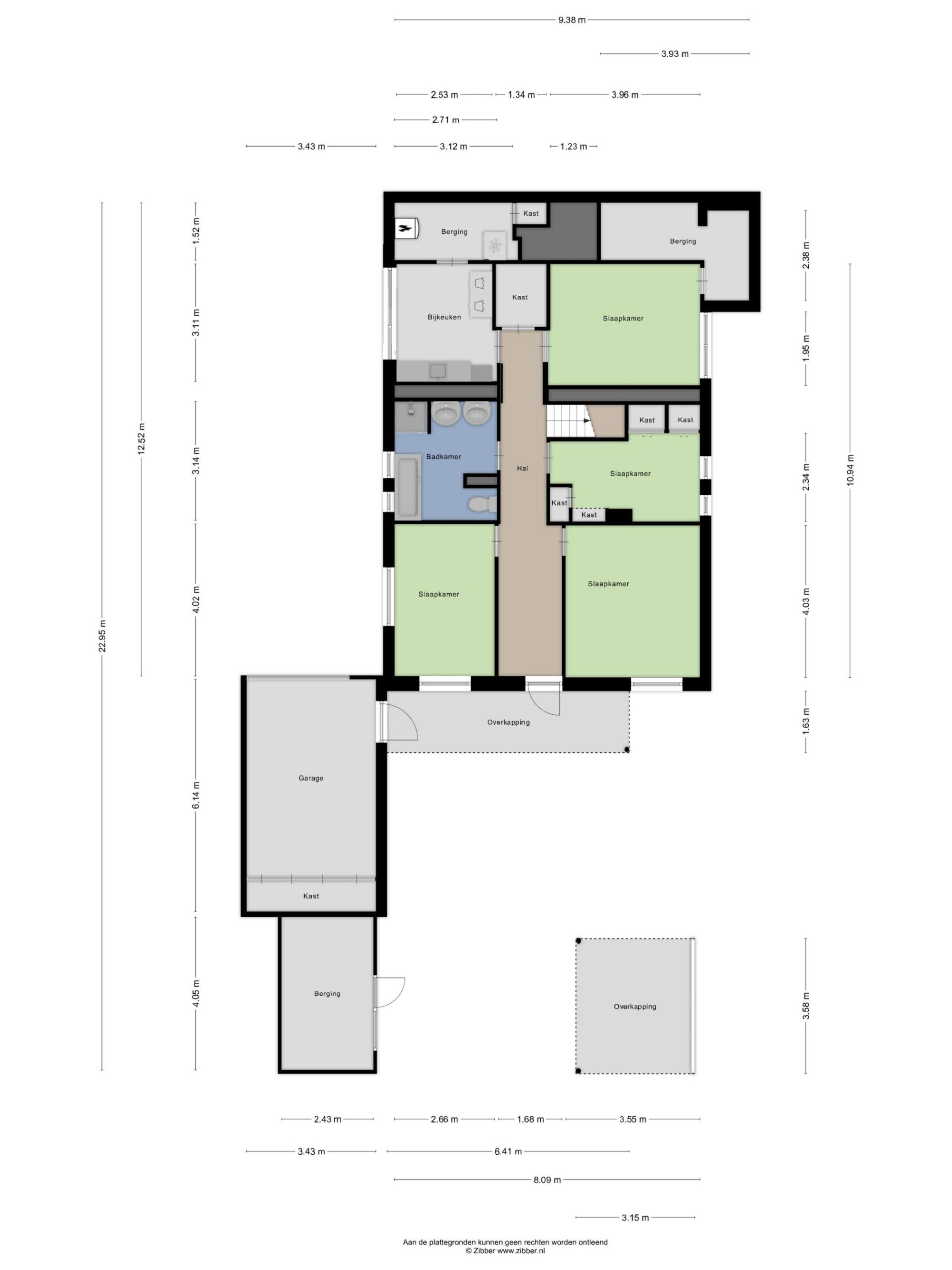 Naast de woning zijn de garage (circa 6,14m x 3,43m) en de buitenberging (circa 4,05m x 2,43m).
