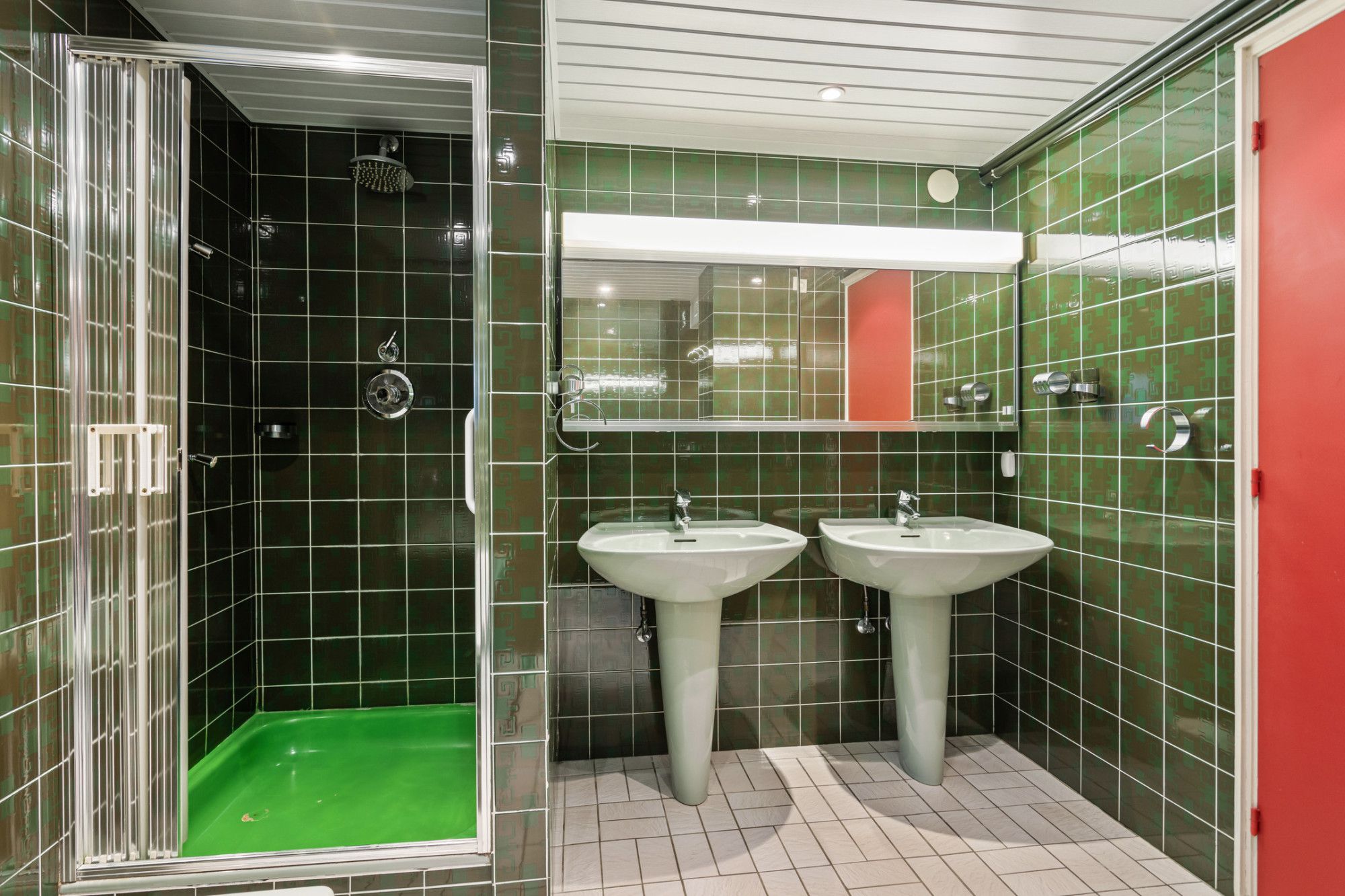 Een verdieping lager, op achtertuinniveau, zijn vanuit de hal de slaapkamers, de badkamer en meerdere bergruimtes toegankelijk. De slaapkamers meten circa 3,96m x 3,11m, 3,96m x 2,34m (exclusief de muurkasten), 4,03m x 3,55m en 4,02m x 2,66m. De badkamer (circa 3,14m x 2,66m) is ingericht met ligbad, douche, twee wastafels en wc. De overige ruimtes zijn in gebruik als bijkeuken met de aansluitingen voor wasmachine en droger, cv-ruimte en bergingen.