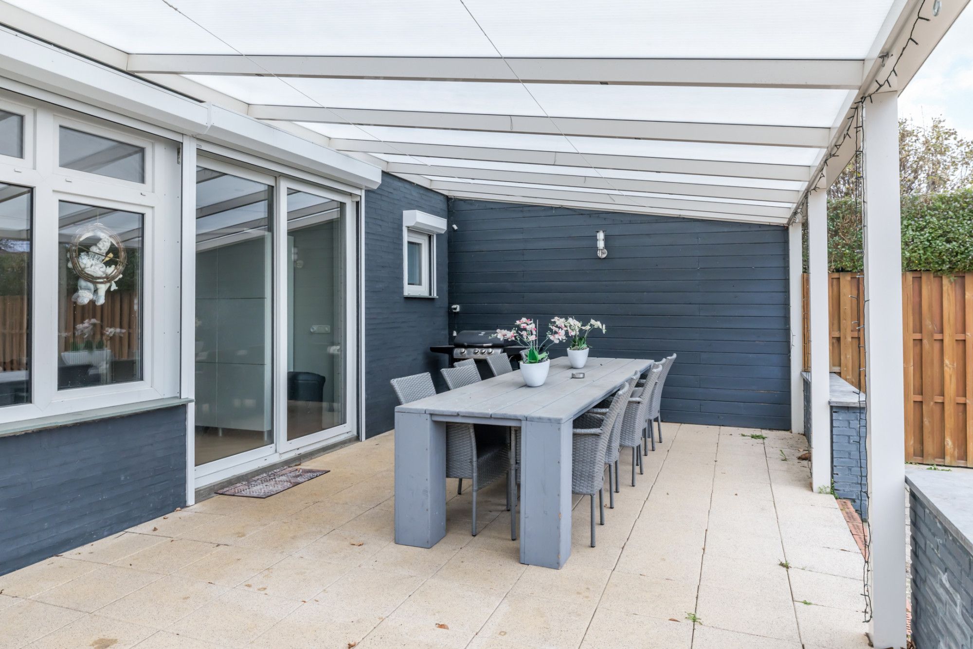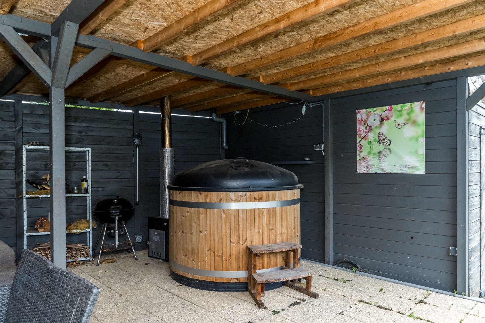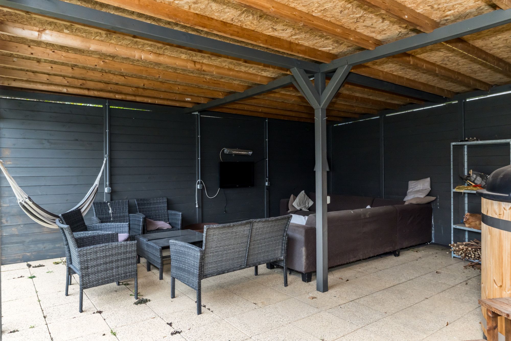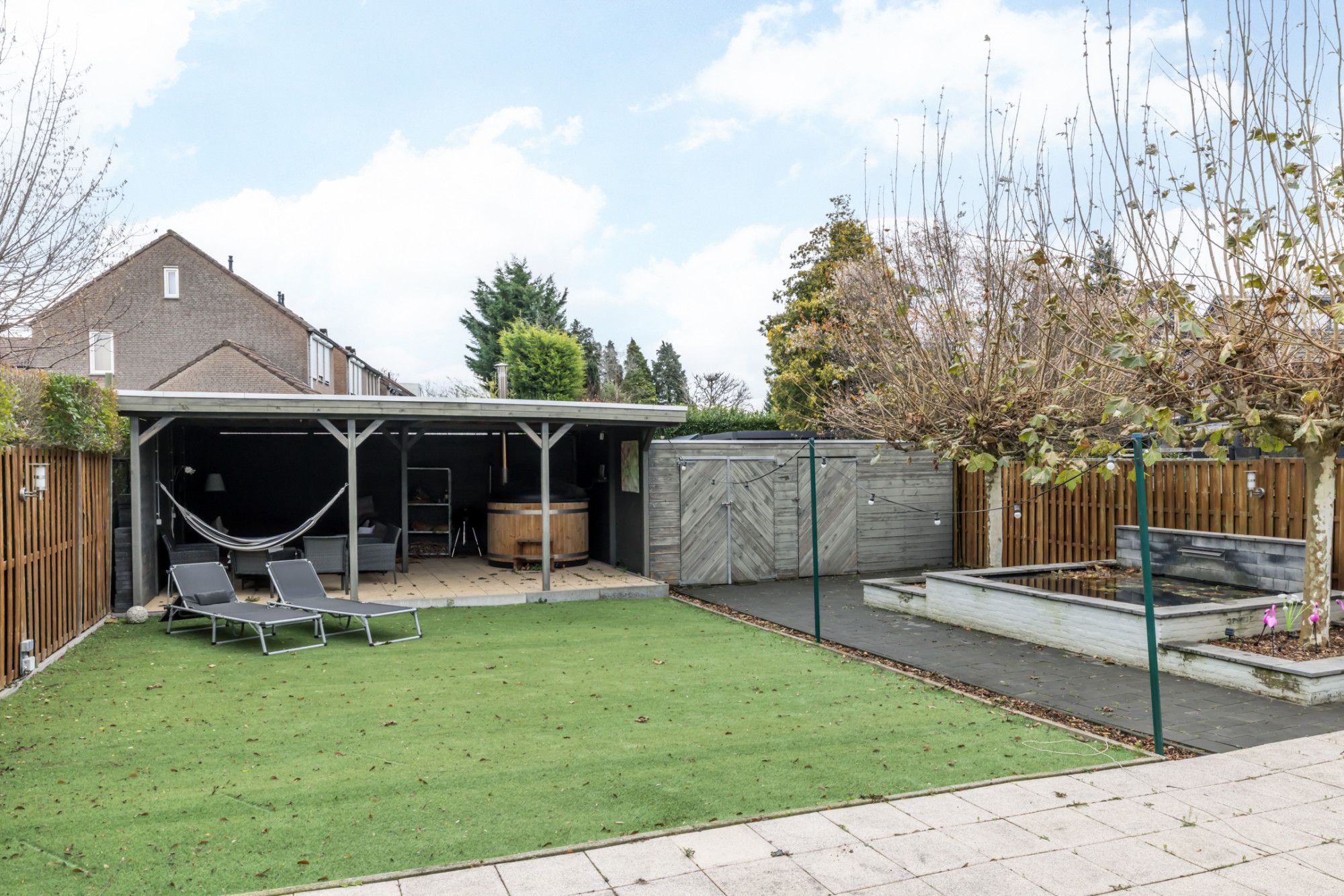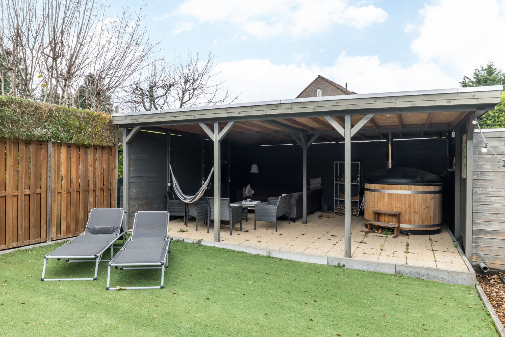 De riante onderhoudsvriendelijke tuin is voorzien van een ovedekt terras, een ruime sfeervolle overkapping (6,40 m x 9,29 m) inclusief twee aangrenzende bergingen en een siervijver. De ruime garage (7,25 m x 4,06 m) biedt directe toegang tot het overdekte terras/ tuin.