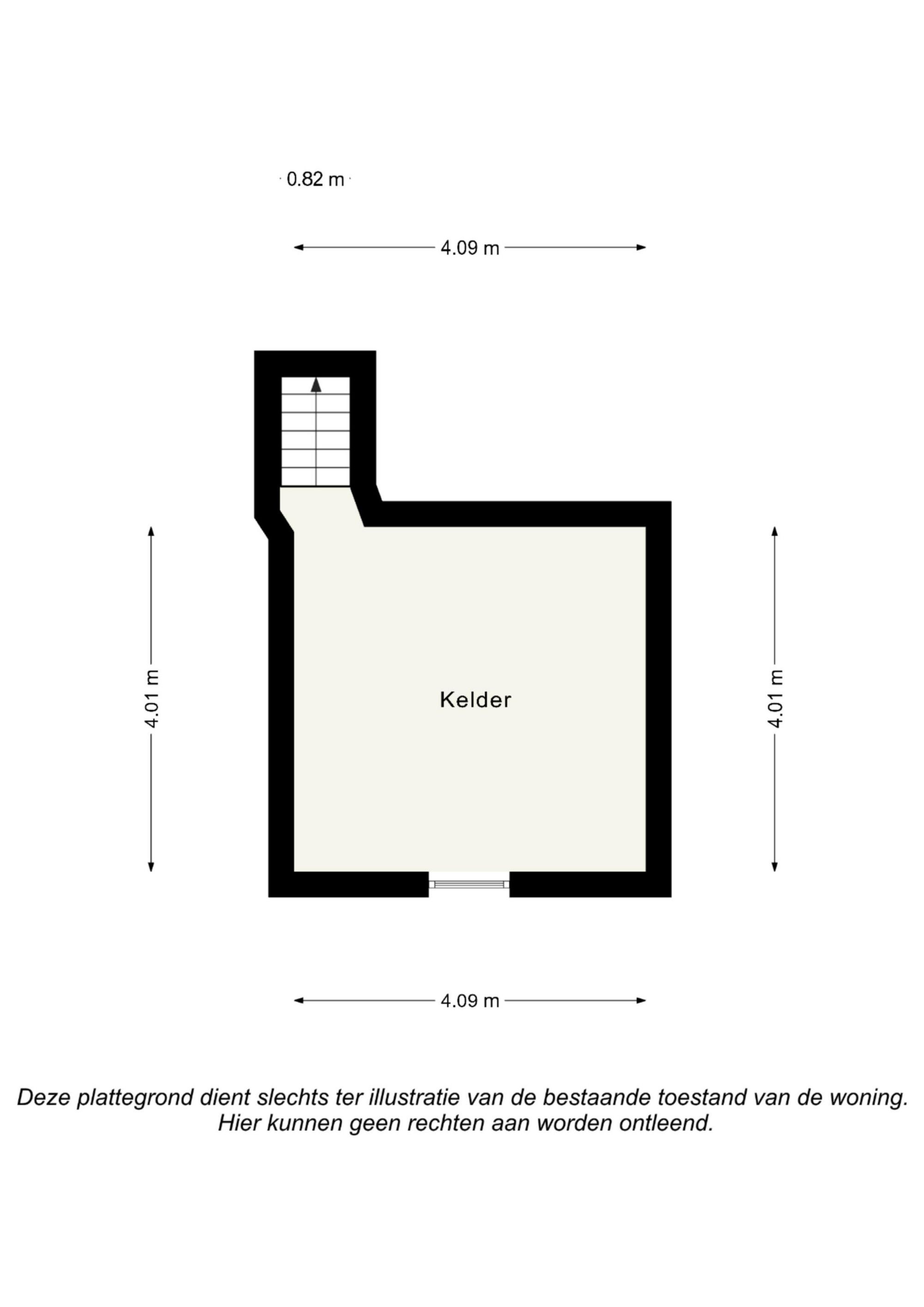Vanuit het tussenhalletje heeft men toegang tot de kelder (4,09 m x 4,01 m)