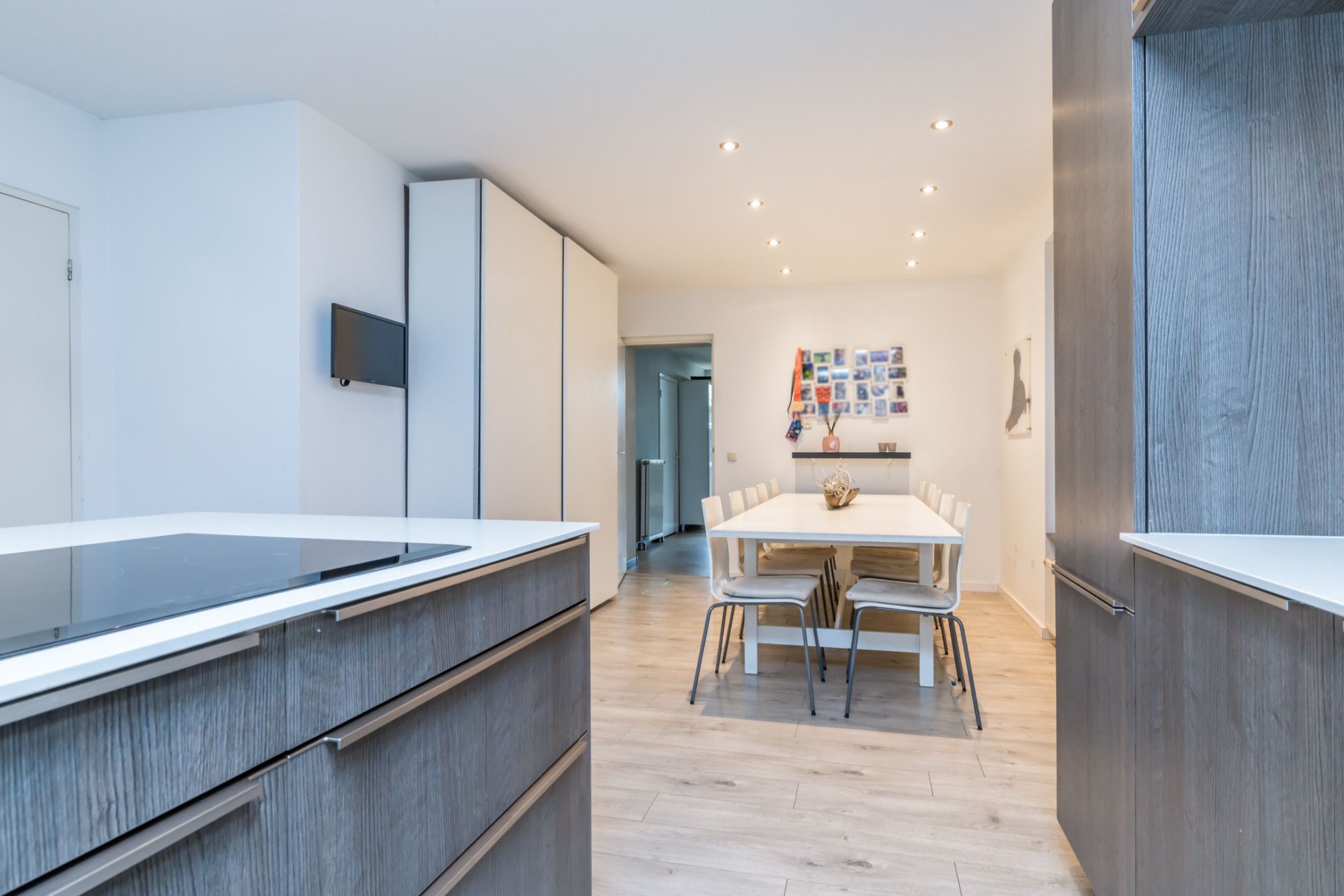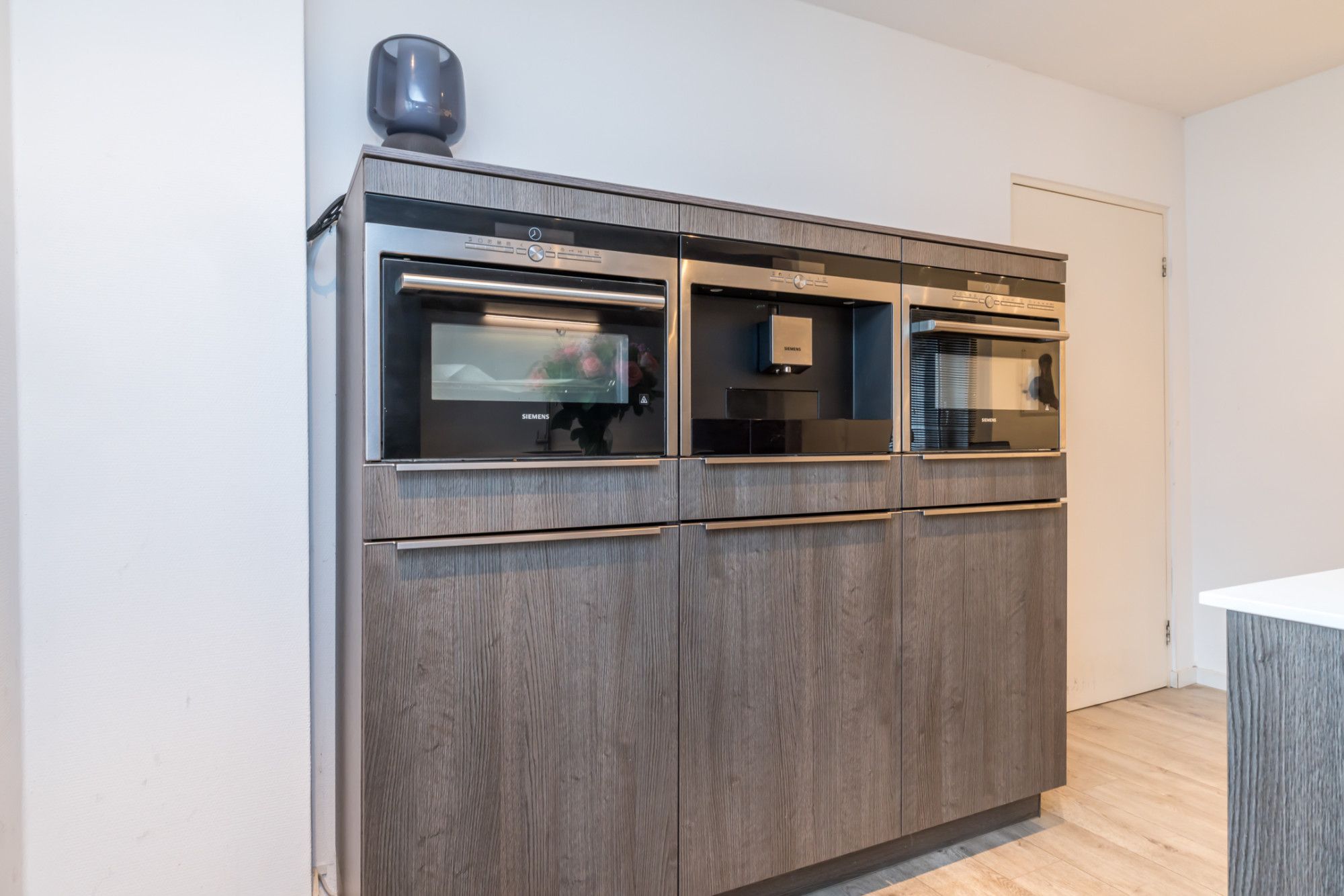 De hal v.v. separate moderne toiletruimte biedt toegang tot de moderne leefkeuken (7,11 m x 4,11 m/ 3,20 m). De riante leefkeuken is aan de voorzijde gelegen en is v.v. een kookeiland en de navolgende apparatuur: 5-pits keramische kookplaat, een ingebouwde Siemens combi oven/magnetron en een Siemens oven, koffiezetapparaat, vaatwasser, vriezer en koelkast.