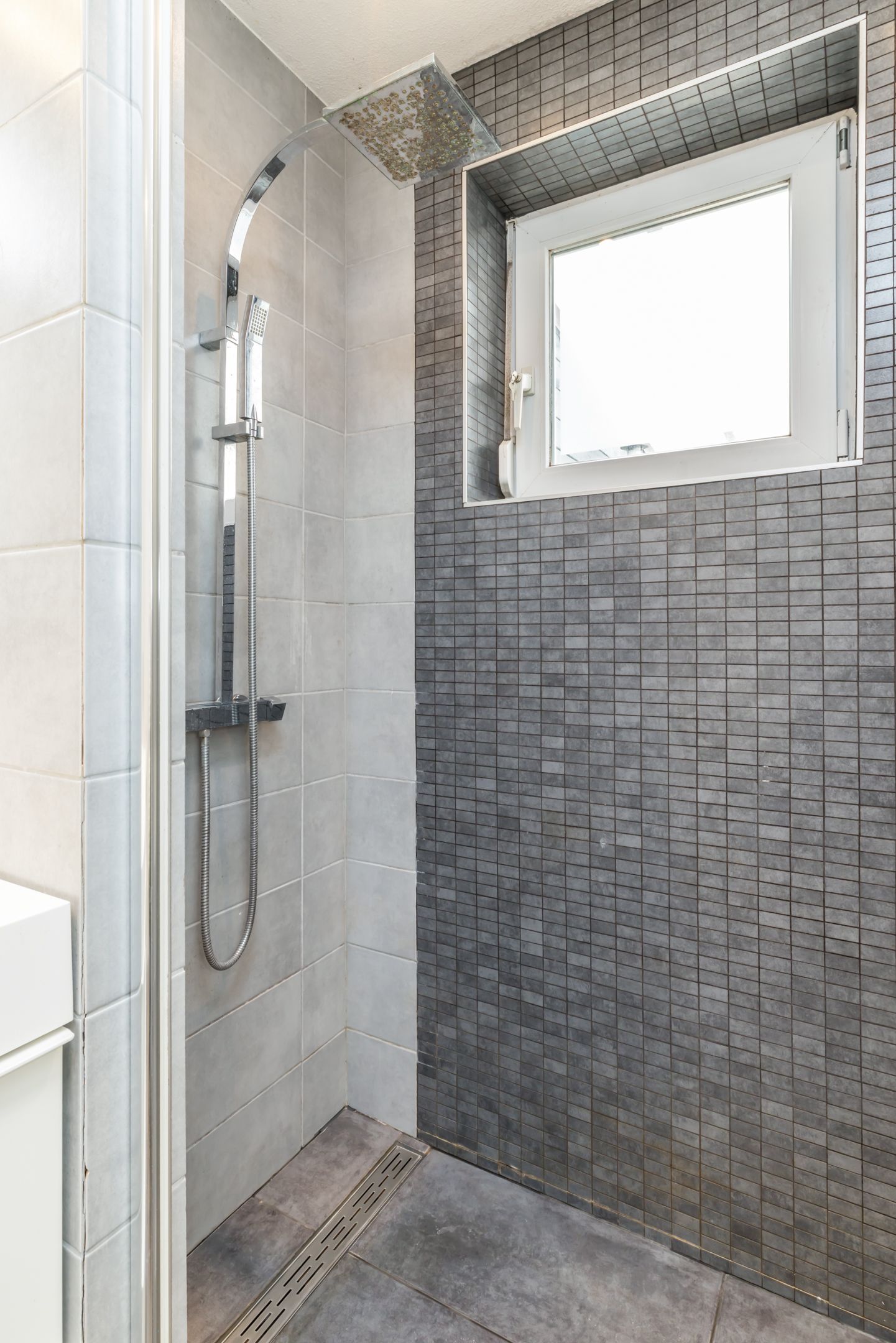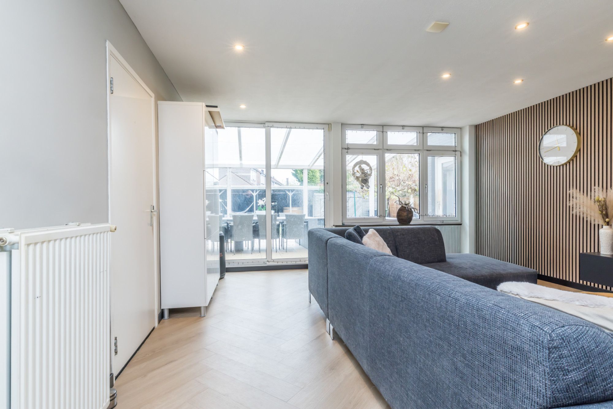 Middels deur bereikt men de living, de ruime living (4,88 x 4,11) biedt middels schuifpui toegang tot overdekt terras/ tuin, tevens is er toegang tot de berging/ bijkeuken (1,94 m x 1,78 m) waar witgoedvoorziening aanwezig is. Aangrenzend is er toegang tot de moderne badkamer (2,86 m x 1,78 m) deze is v.v. een inloopdouche, 2e toilet en vaste wastafel.