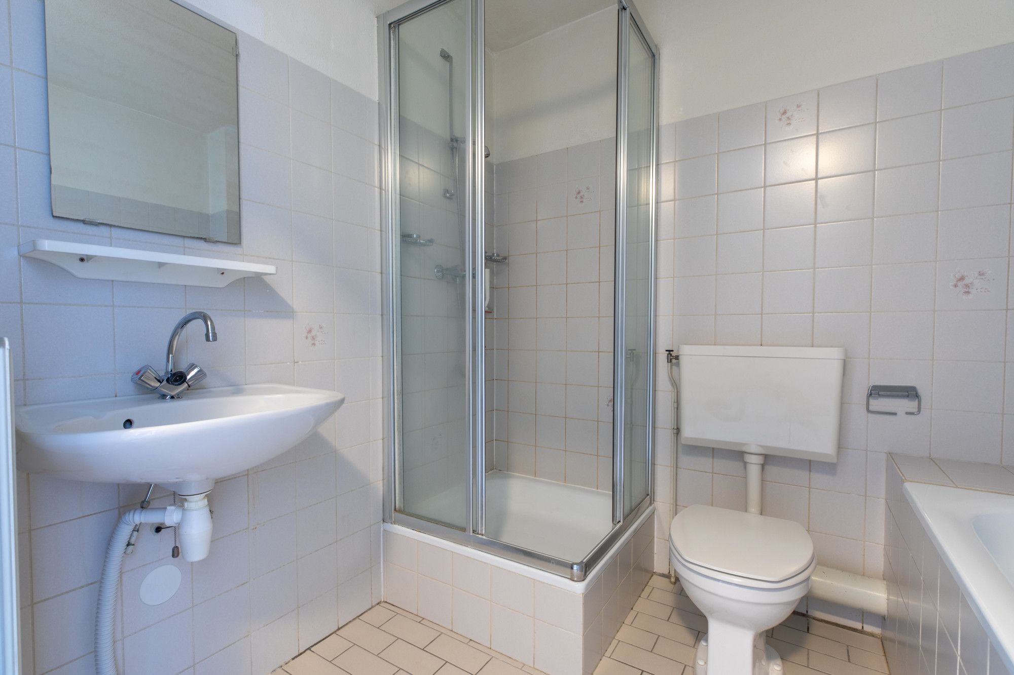 Overloop met toegang naar 2 ruime slaapkamers. Badkamer met ligbad, douche, 2e toilet en wastafel.