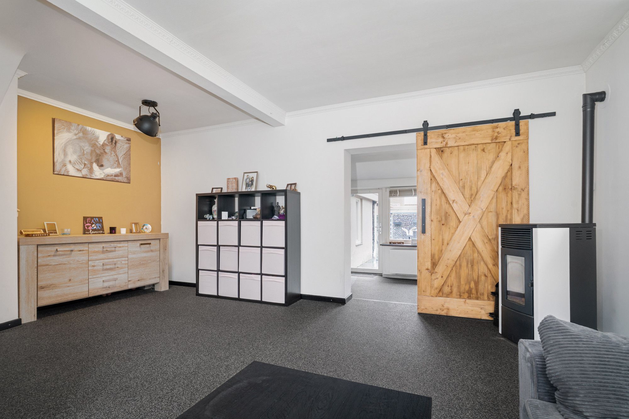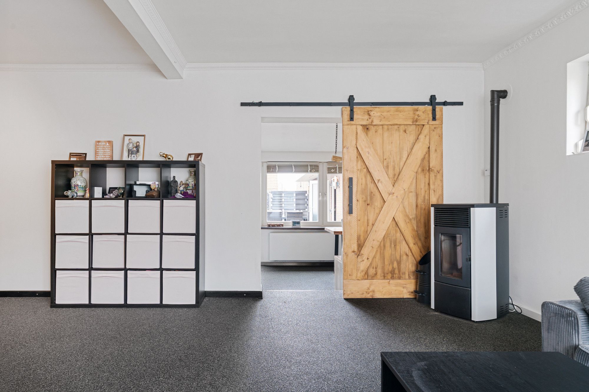 - Pelletkachel in de woonkamer voor extra snel comfortabele warmte;