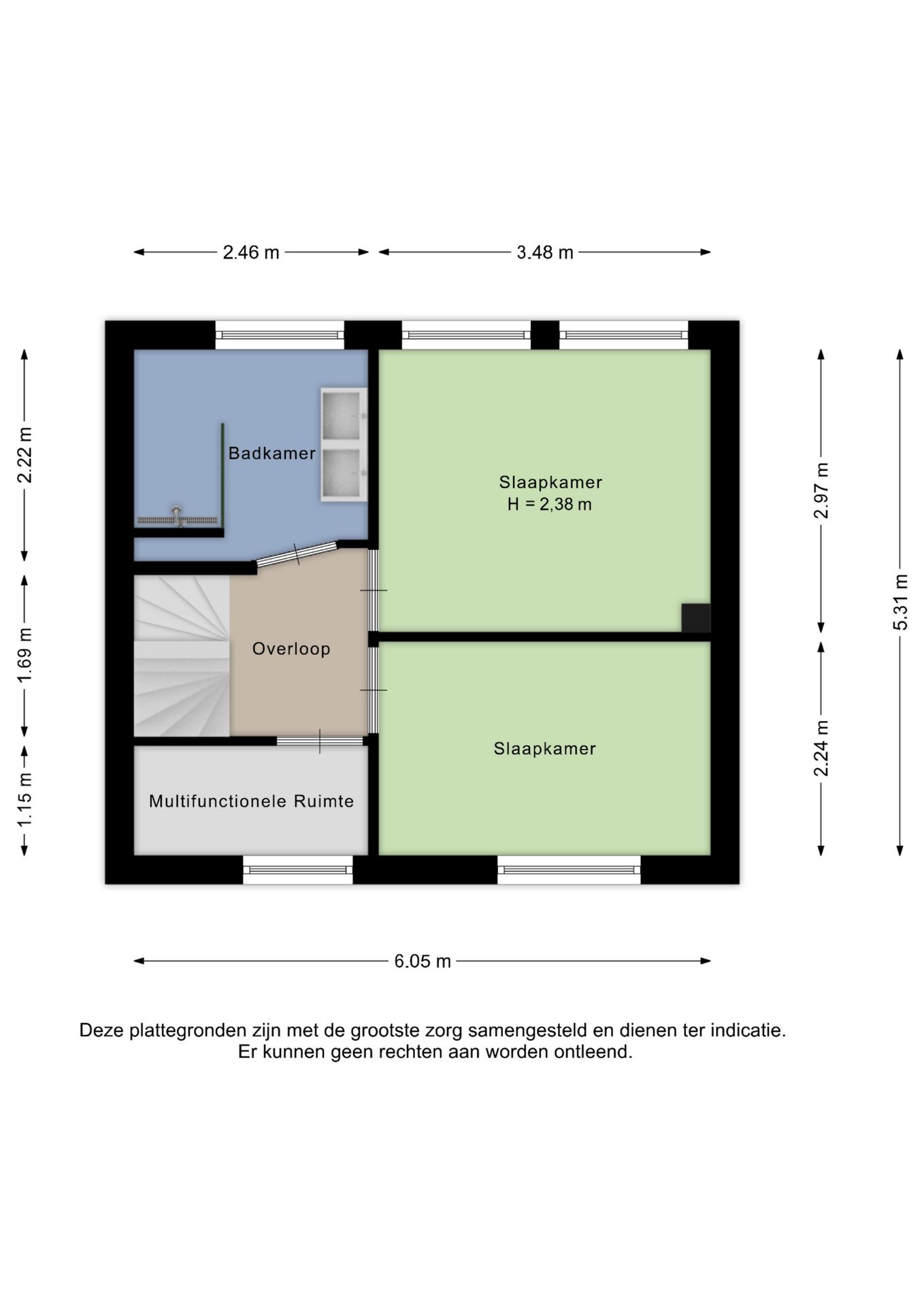 Alle door ons kantoor verstrekte informatie omtrent onroerende zaken, moet beschouwd worden als een uitnodiging om in onderhandeling te treden, en is geheel vrijblijvend! Alle vermelde maten en afmetingen zijn slechts bij benadering. Aan deze beperkte informatie kunnen geen rechten worden ontleend. Indien in enige documentatie of op enige website informatie staat die niet overeen komt met de werkelijkheid, dan geldt de feitelijke situatie waarin de woning zich bevindt, zoals koper deze tijdens de bezichtiging heeft kunnen waarnemen, en wordt de woning in deze feitelijke situatie/staat verkocht. Een (eventueel) bijgevoegde plattegrond dient uitsluitend als globale indicatie/visualisatie. Hieraan kunnen uitdrukkelijk geen rechten worden ontleend.