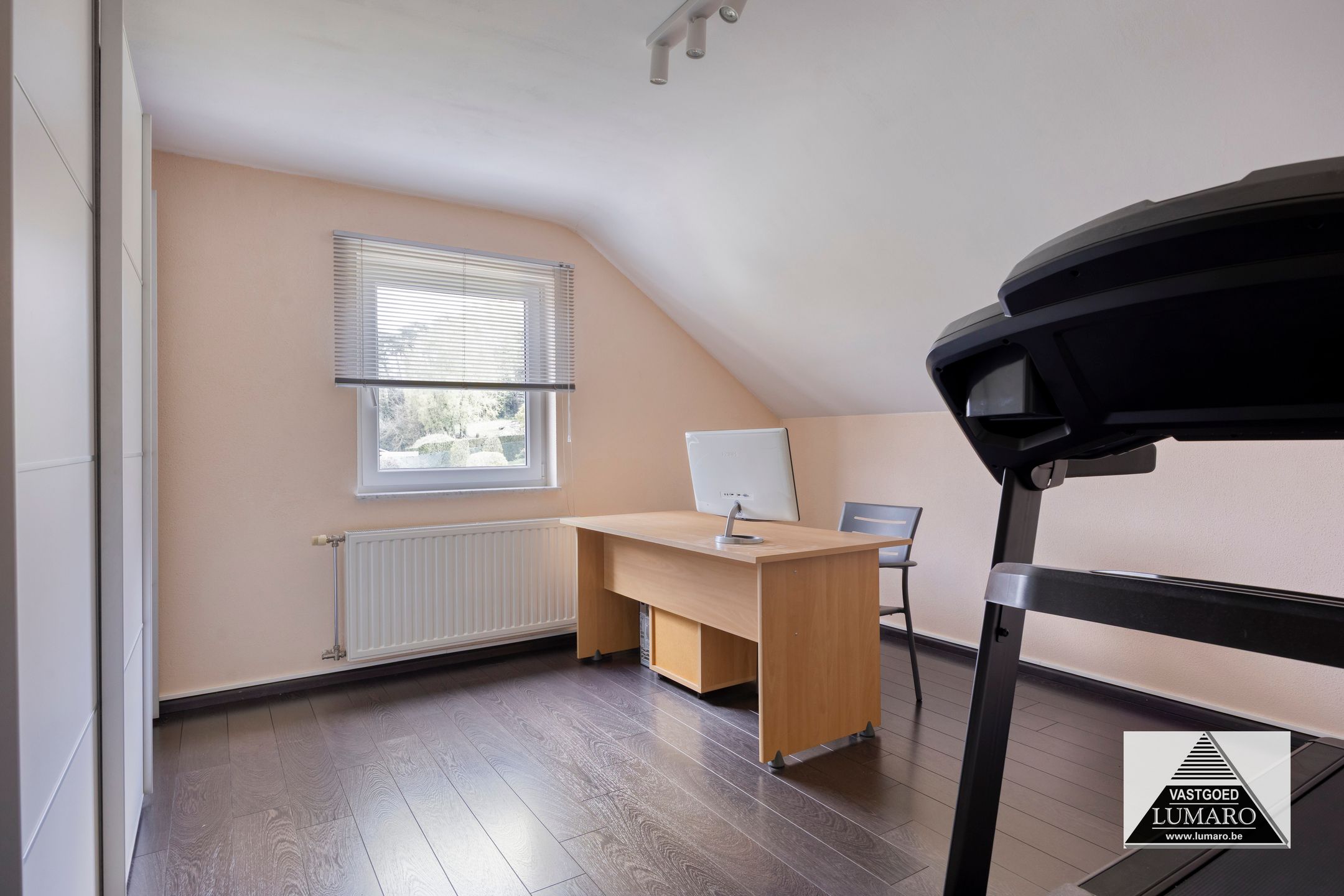 - Slaapkamer 2: (5,15/3,82 m x 6,00 m = 26,72 m²) – laminaat vloer – grote kamer met recht raam op zijgevel.