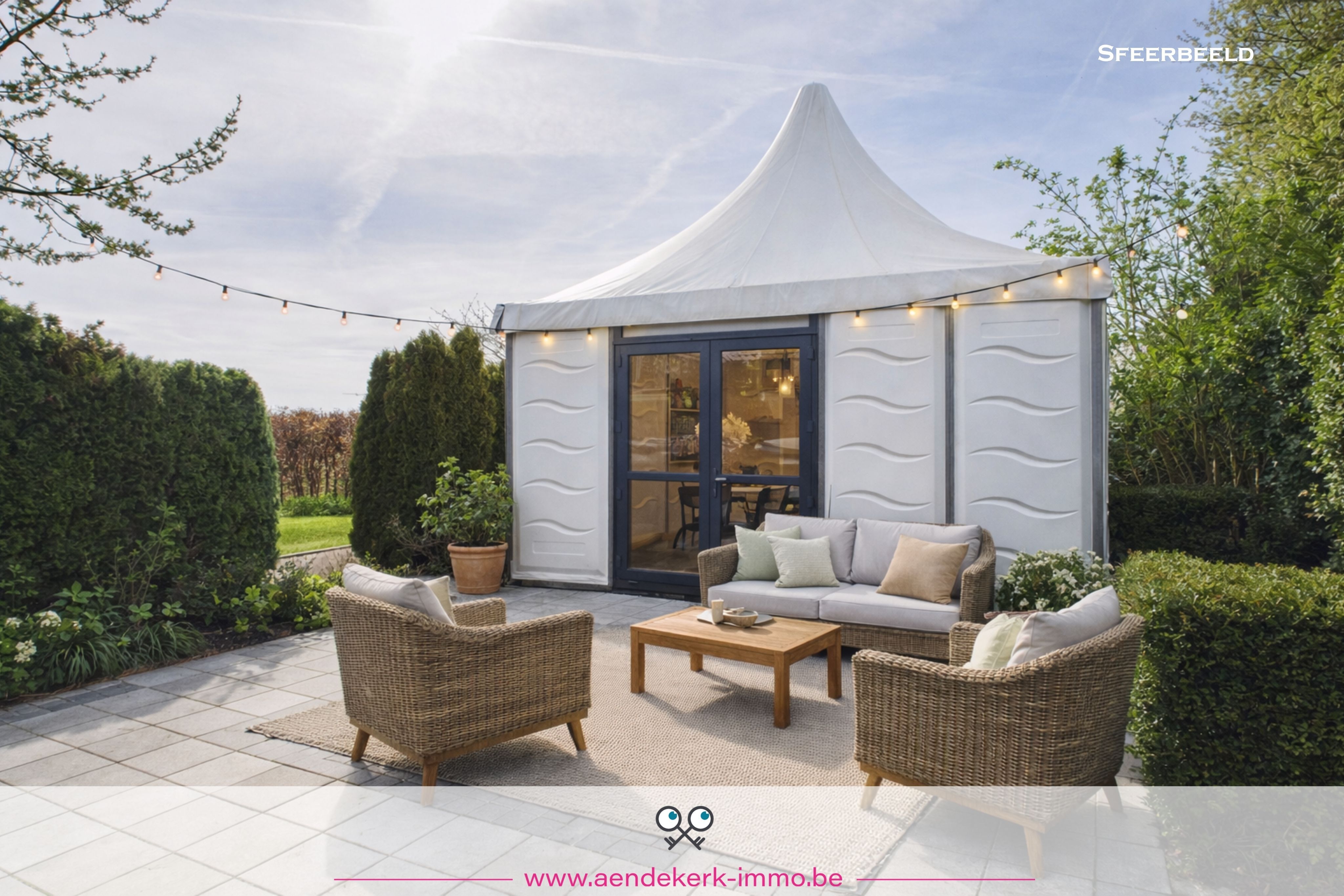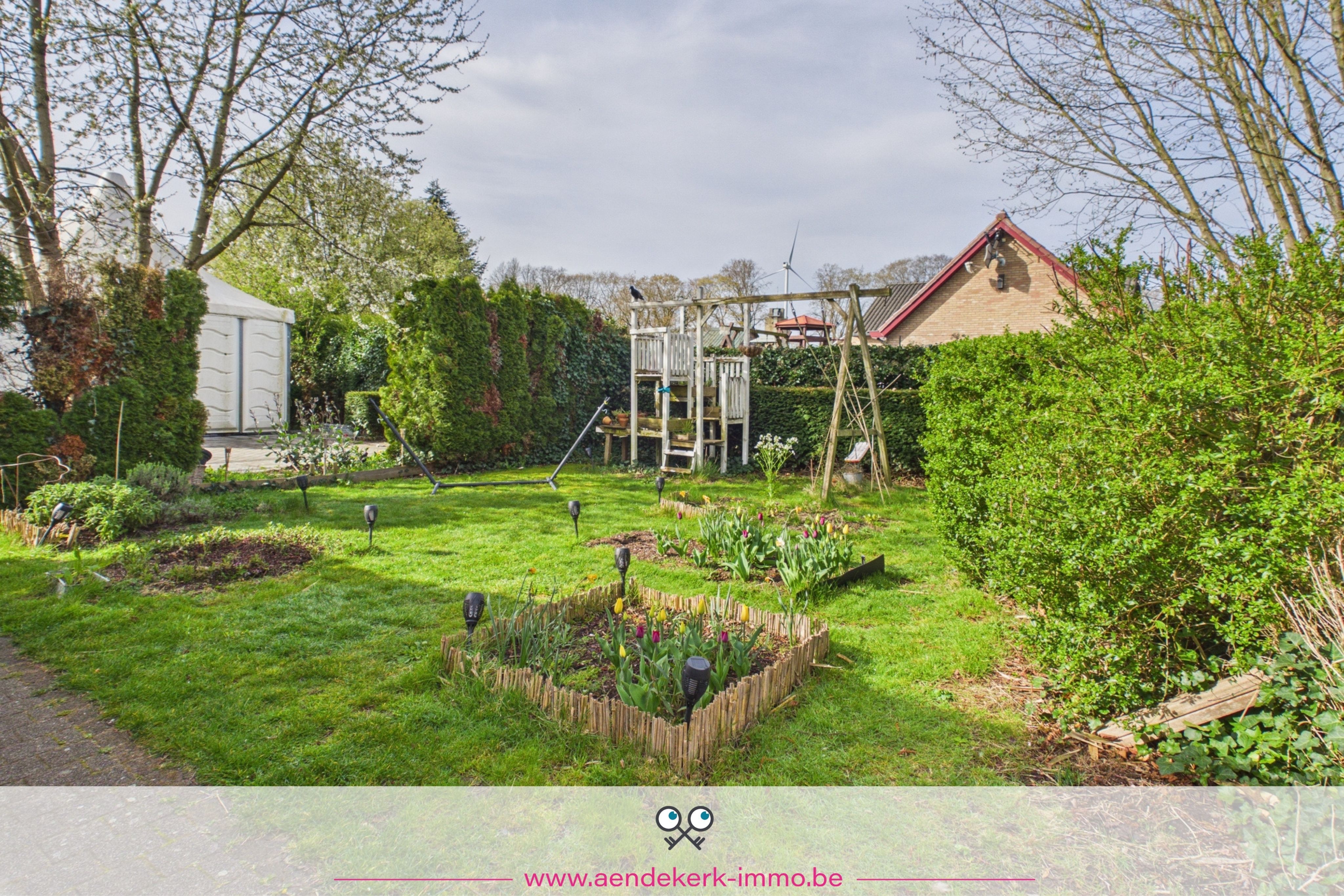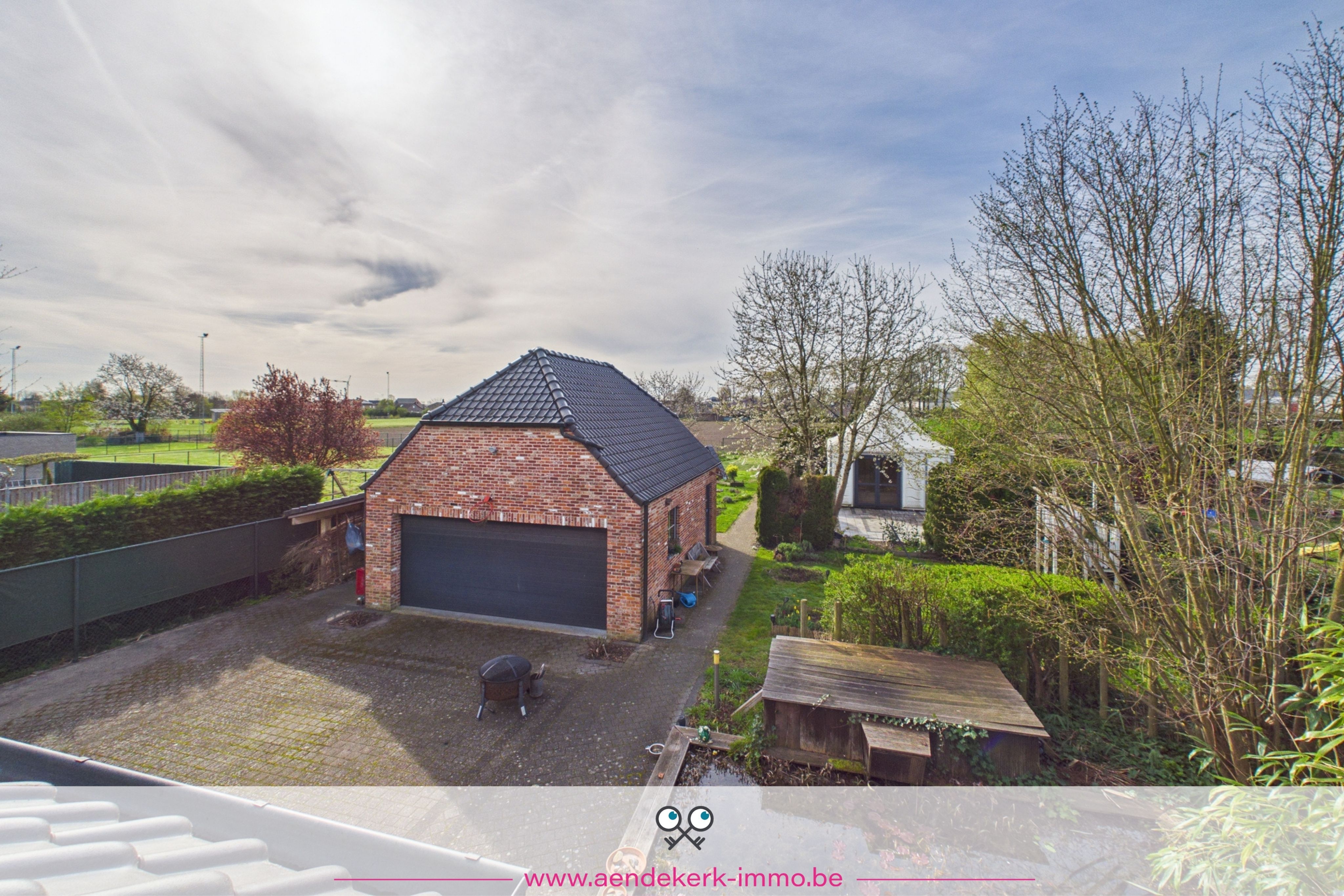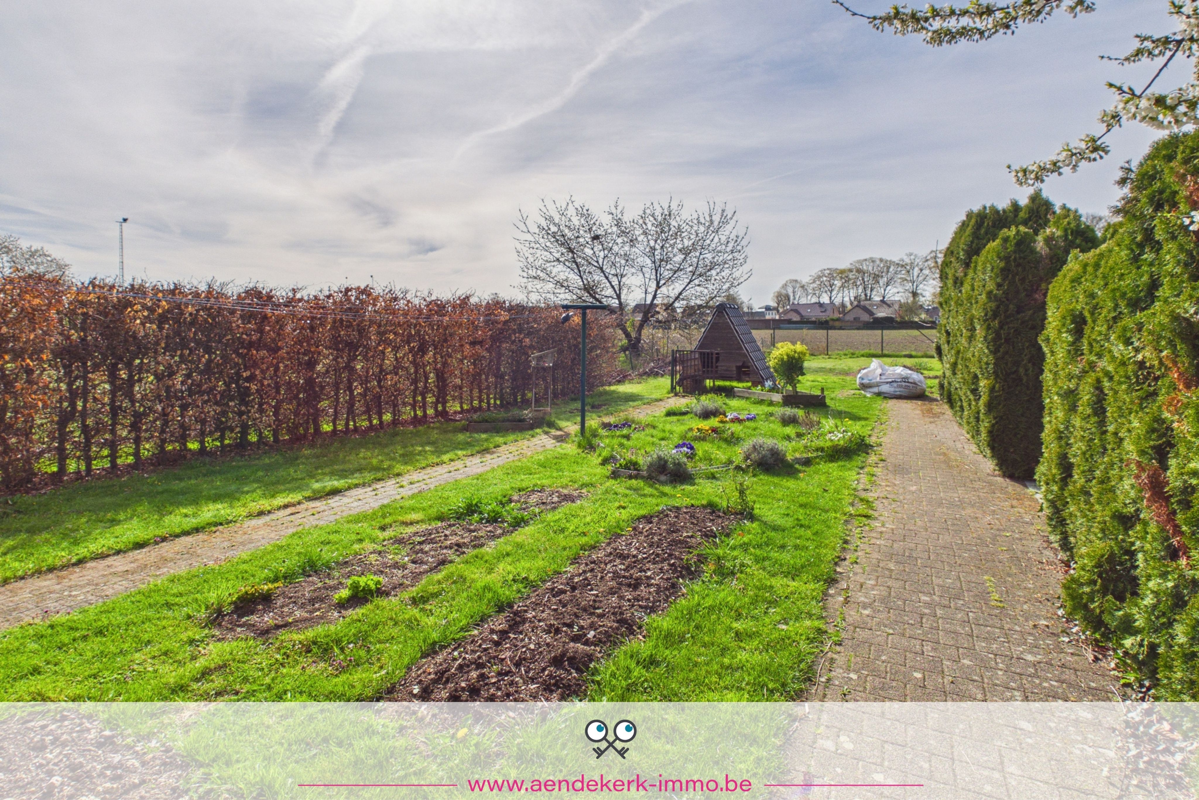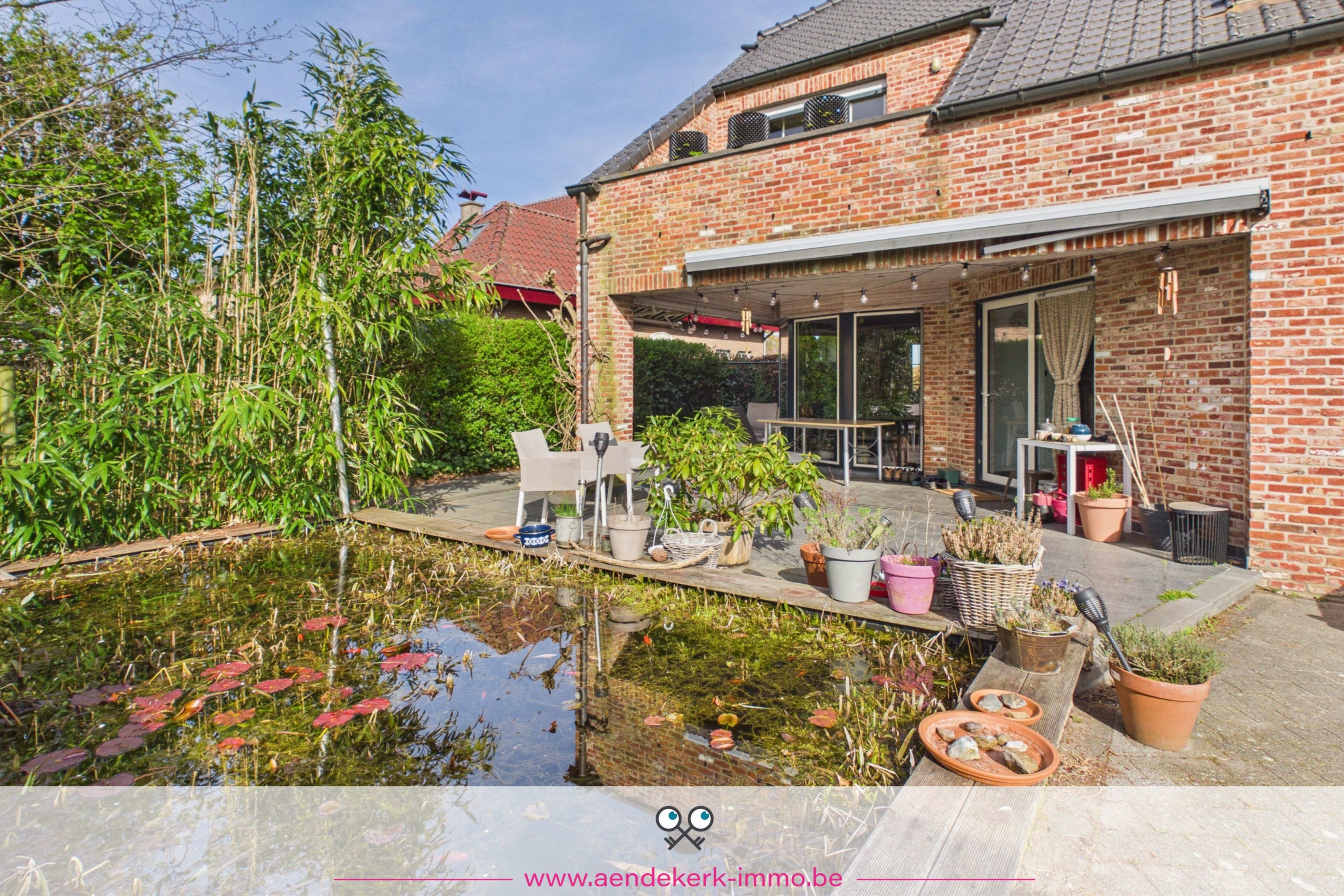Breed, diep en omringd door groen. Achteraan opent het zicht zich volledig, waardoor je hier werkelijk kan ontsnappen. Een plek waar je 's avonds nog even blijft zitten. Waar kinderen ruimte hebben. Waar stilte nog bestaat.