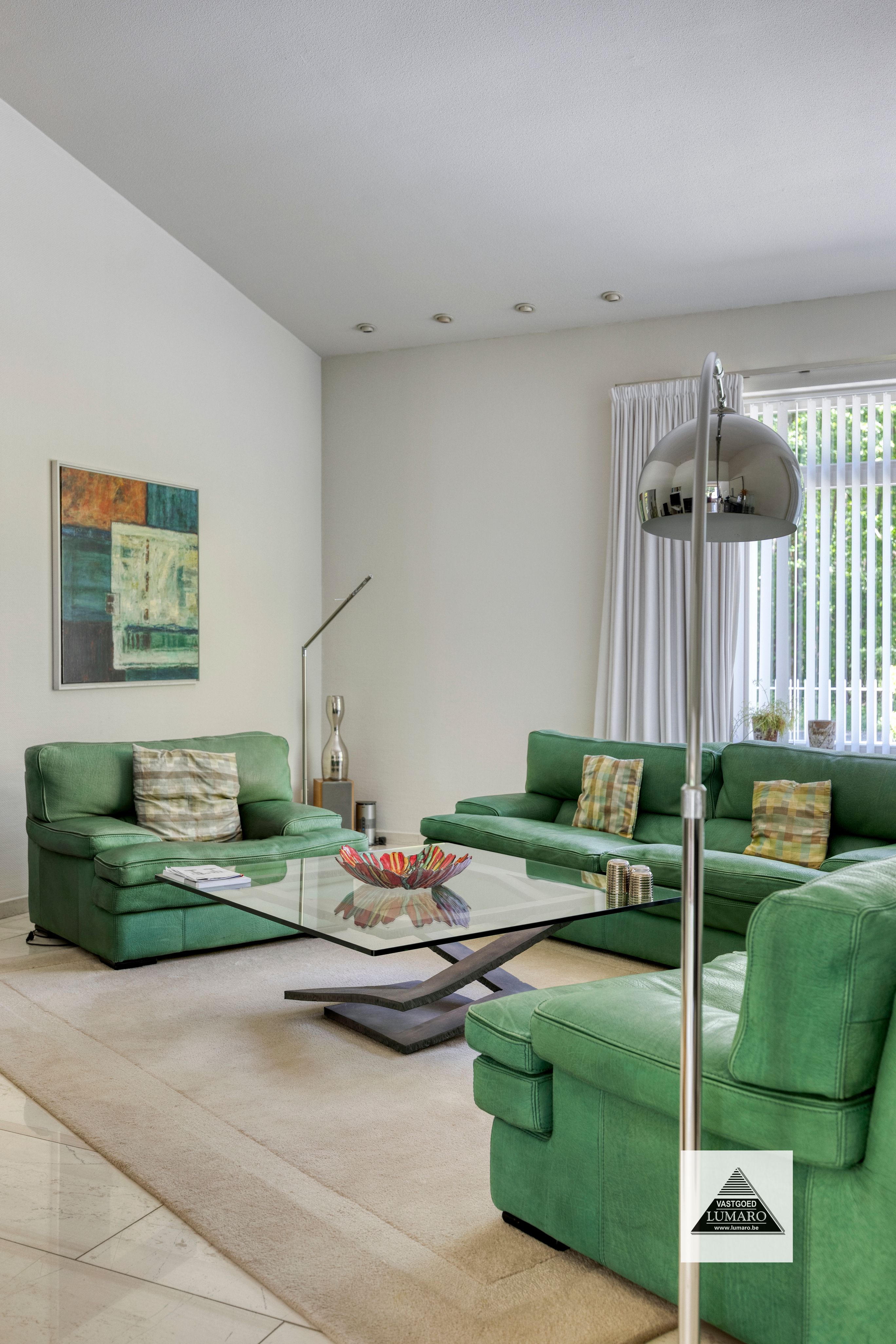 Natuurstenen vloeren. Veel lichtinval.