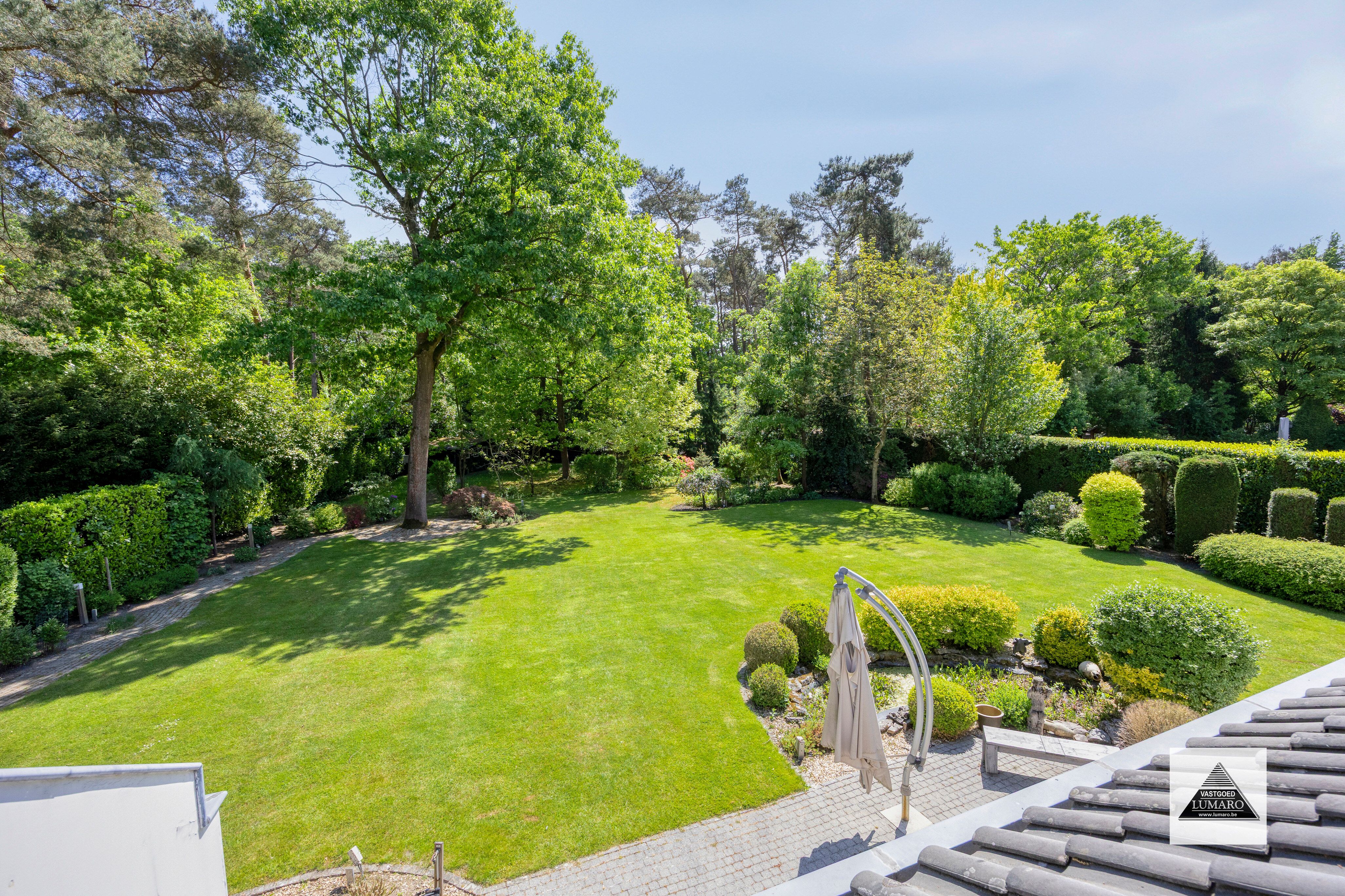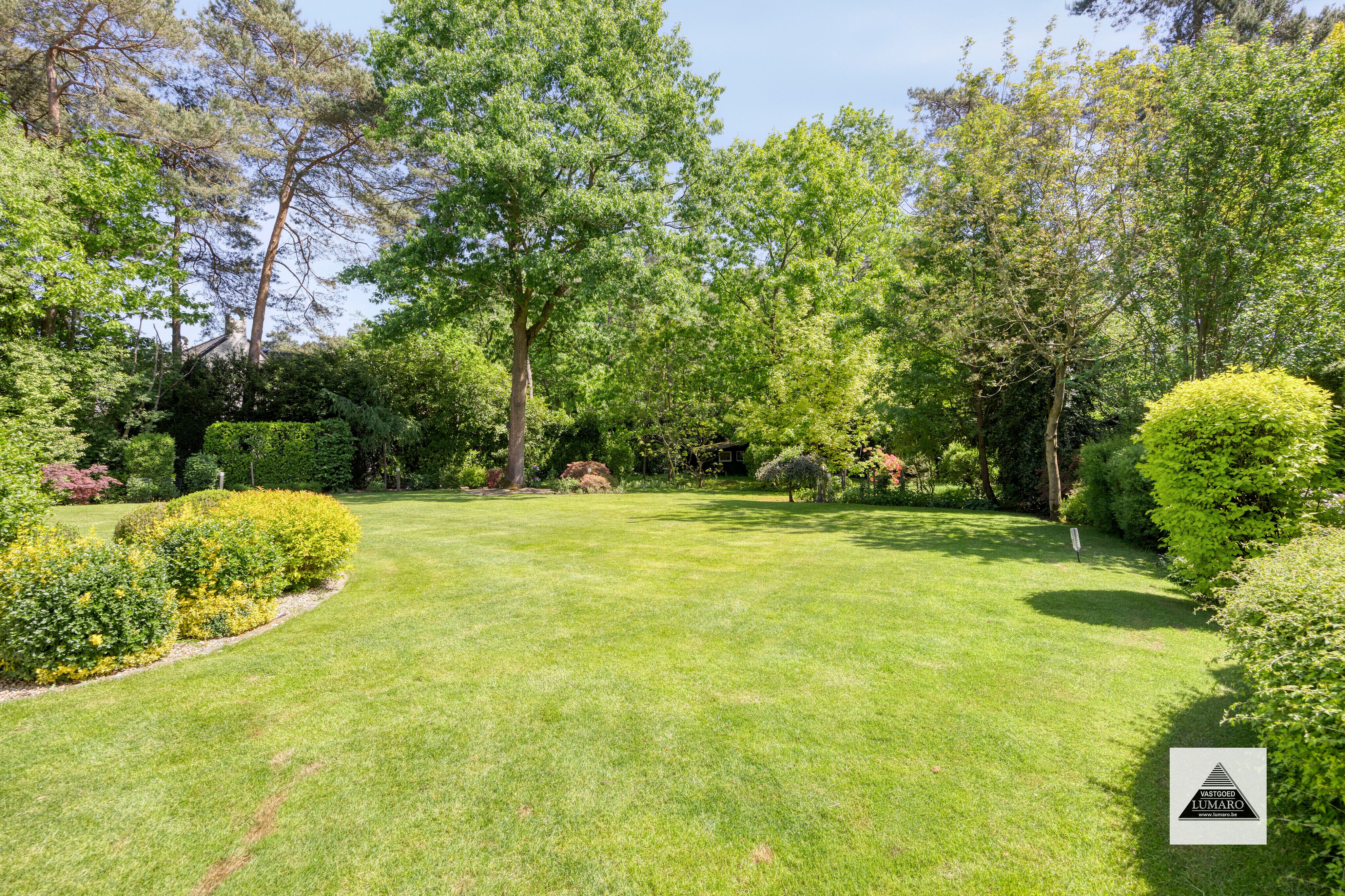 - Tuin 1.300 m² - gazon – beplanting – verlichting - tuinhuis