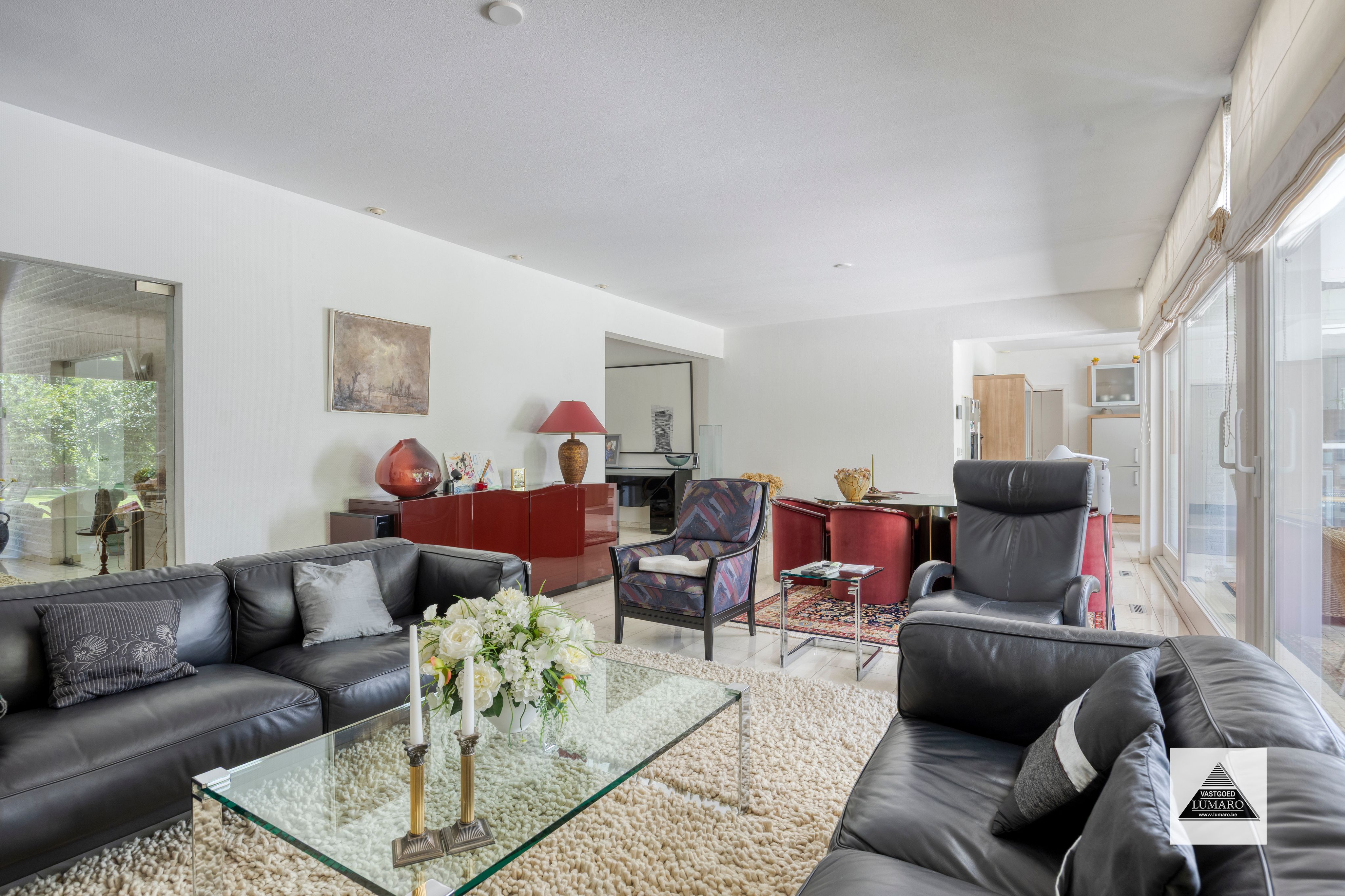 - toegang langs 3 schuifpuien van de leefruimte en 2 schuifpuien van de keuken