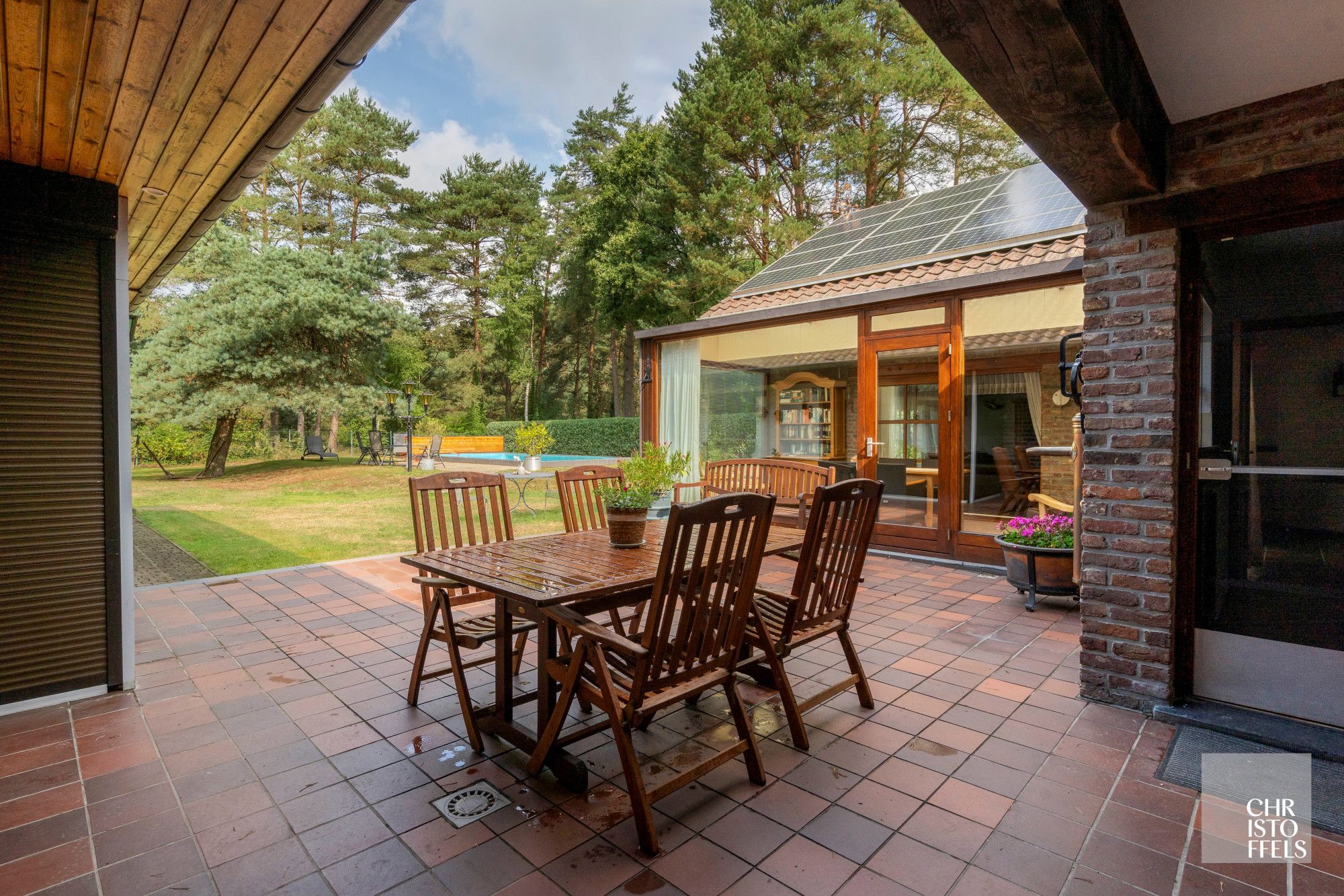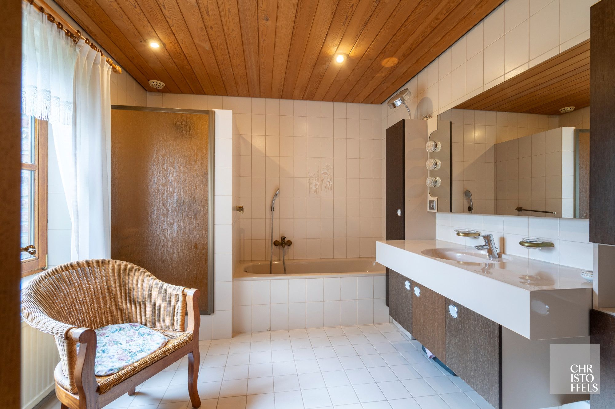 In een zeer rustige, groene omgeving ligt dit vrijstaand landhuis op een ruim perceel van 1.665 m². De woning combineert veel binnenruimte (243m²), een praktische indeling en een aangelegde tuin met zwembad. Ideaal voor gezinnen of voor wie op zoek is naar rust, privacy en comfort. De woning telt vier slaapkamers, waarvan één op het gelijkvloers met een ensuite badkamer – perfect voor wie levensbestendig wil wonen. Daarnaast is er een gezellige leefruimte met open haard, een bijgebouw, een extra douchekamer en sauna op de eerste verdieping.
