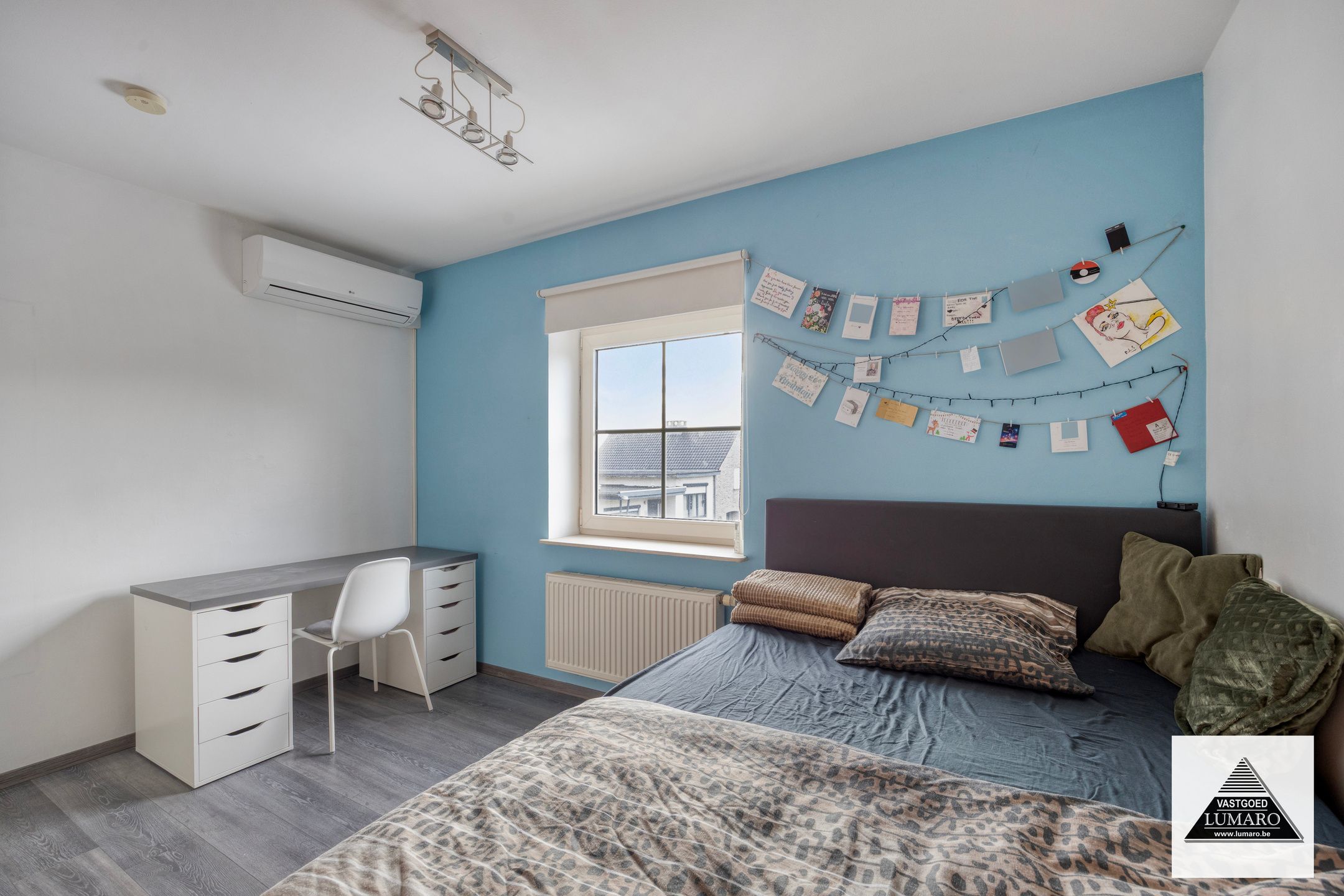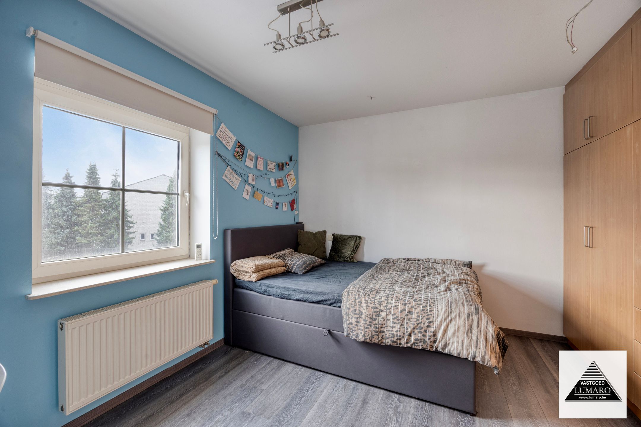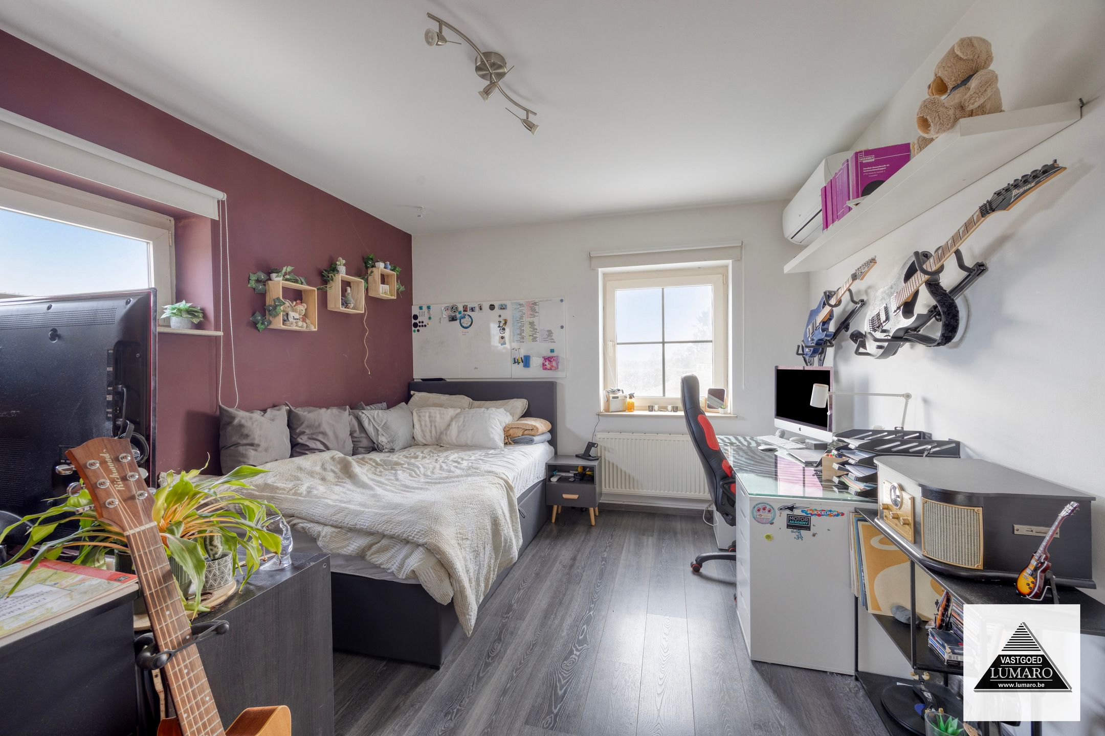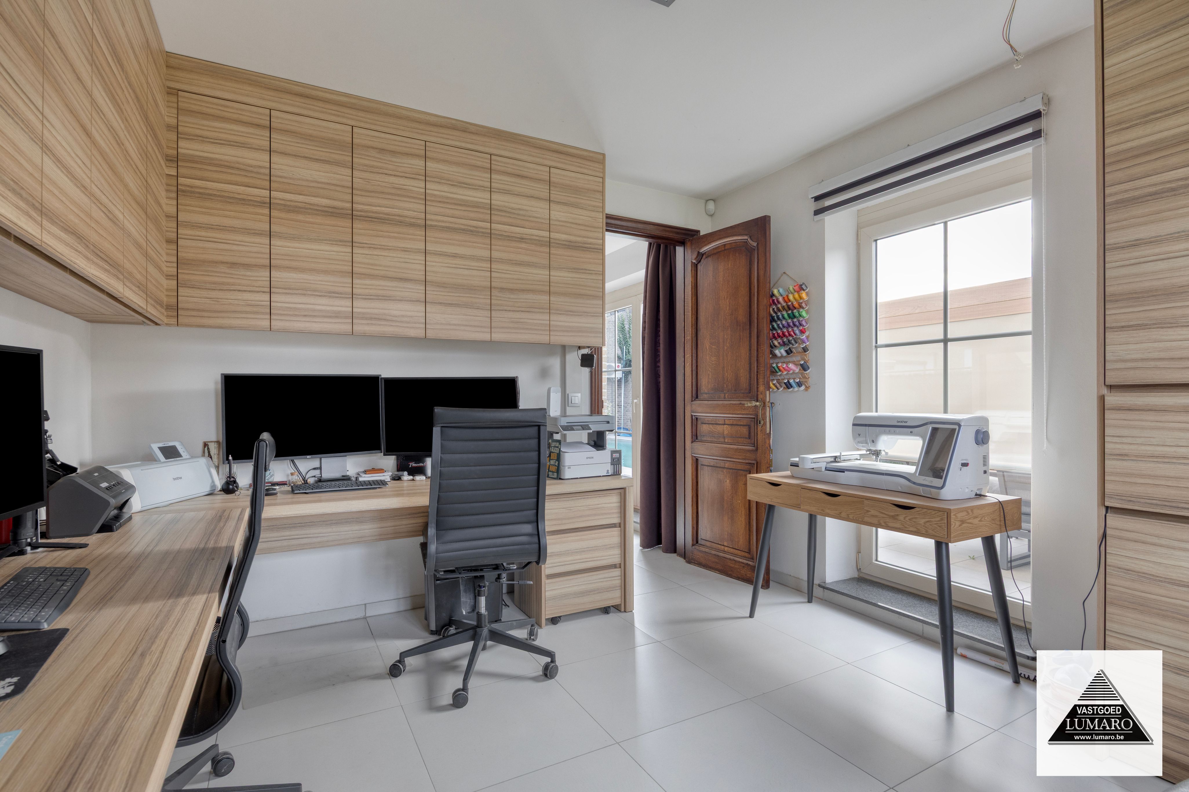 - Bureel: (3,50 m x 4,00 m = 15,54 m²) – tegelvloer - inbouwkasten,