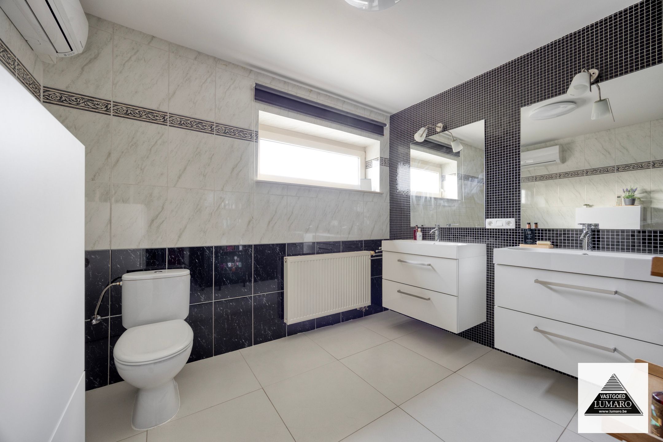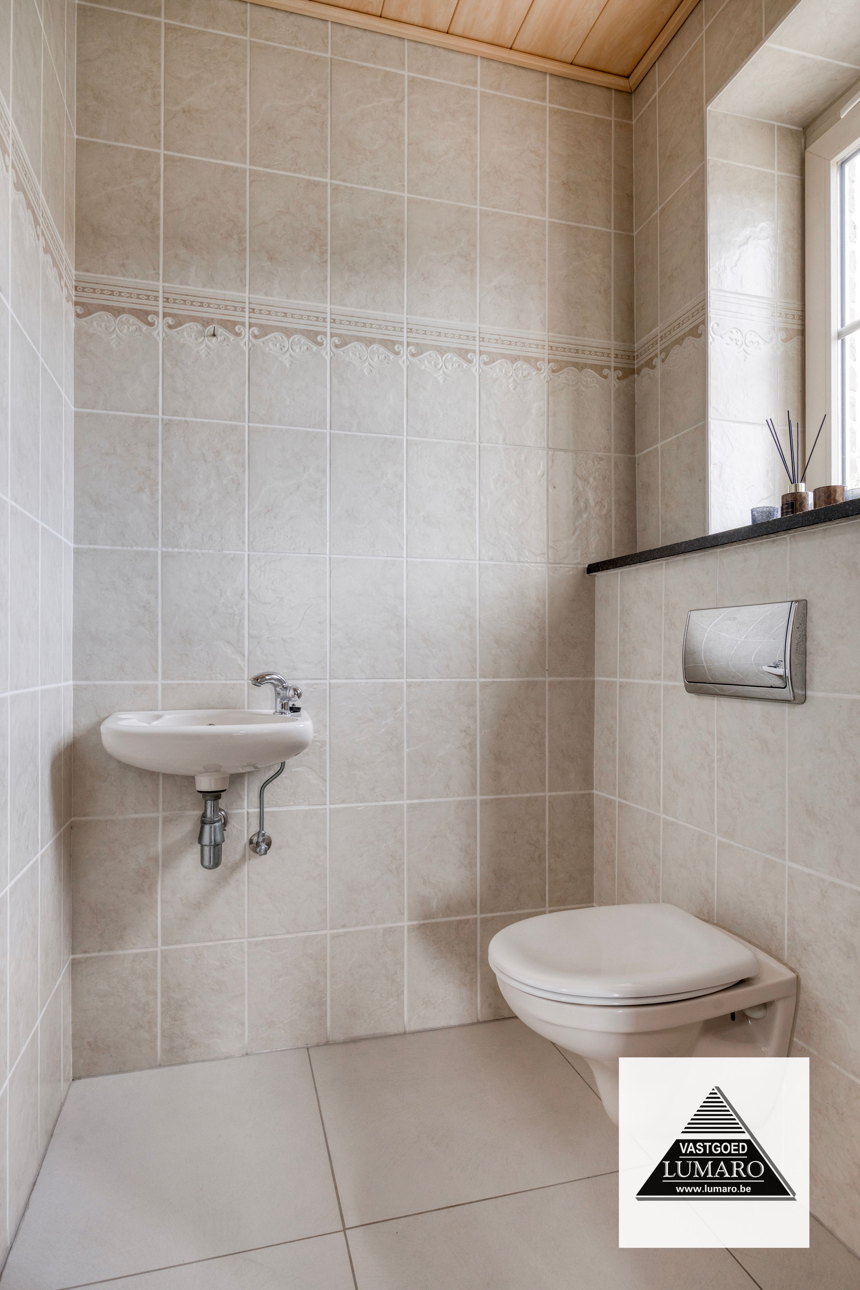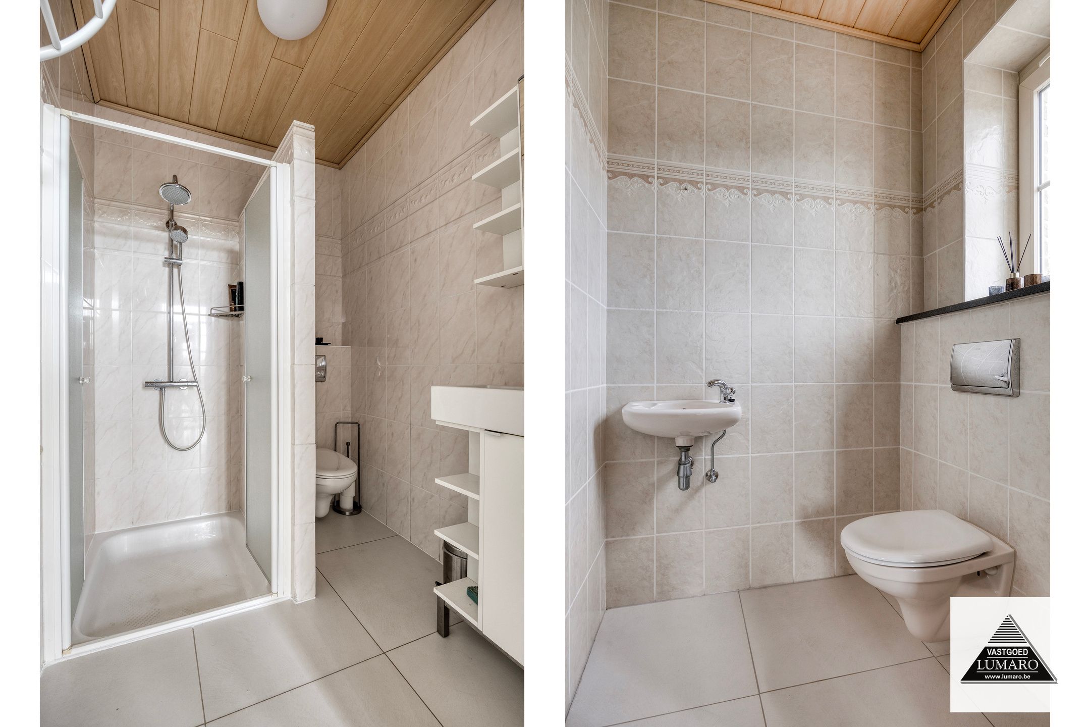 - Badkamer 2: (3,40 m x 3,00 m = 10,20 m²) tegelvloer - ingericht met toilet, 2 badmeubels, inloopdouche