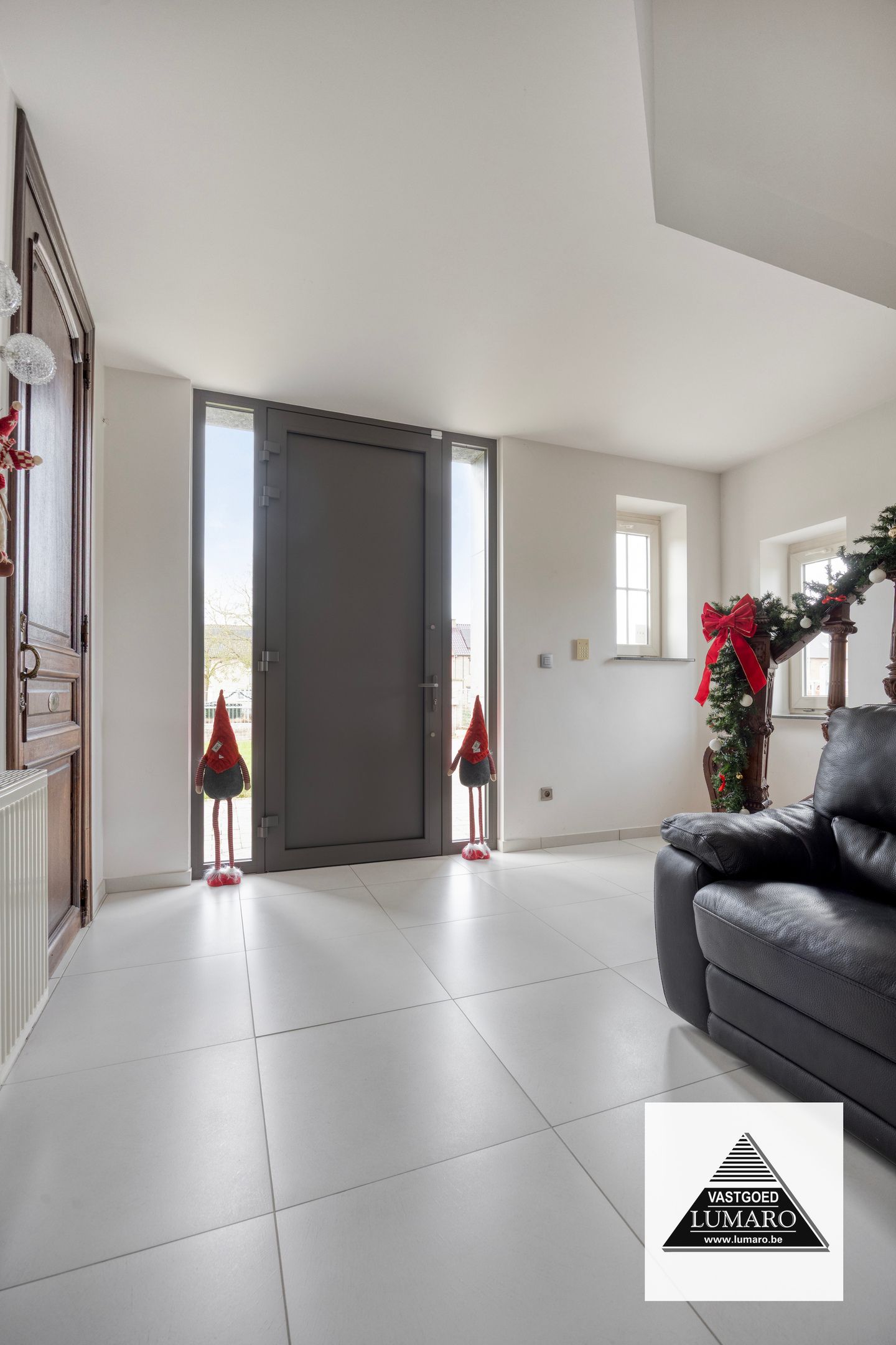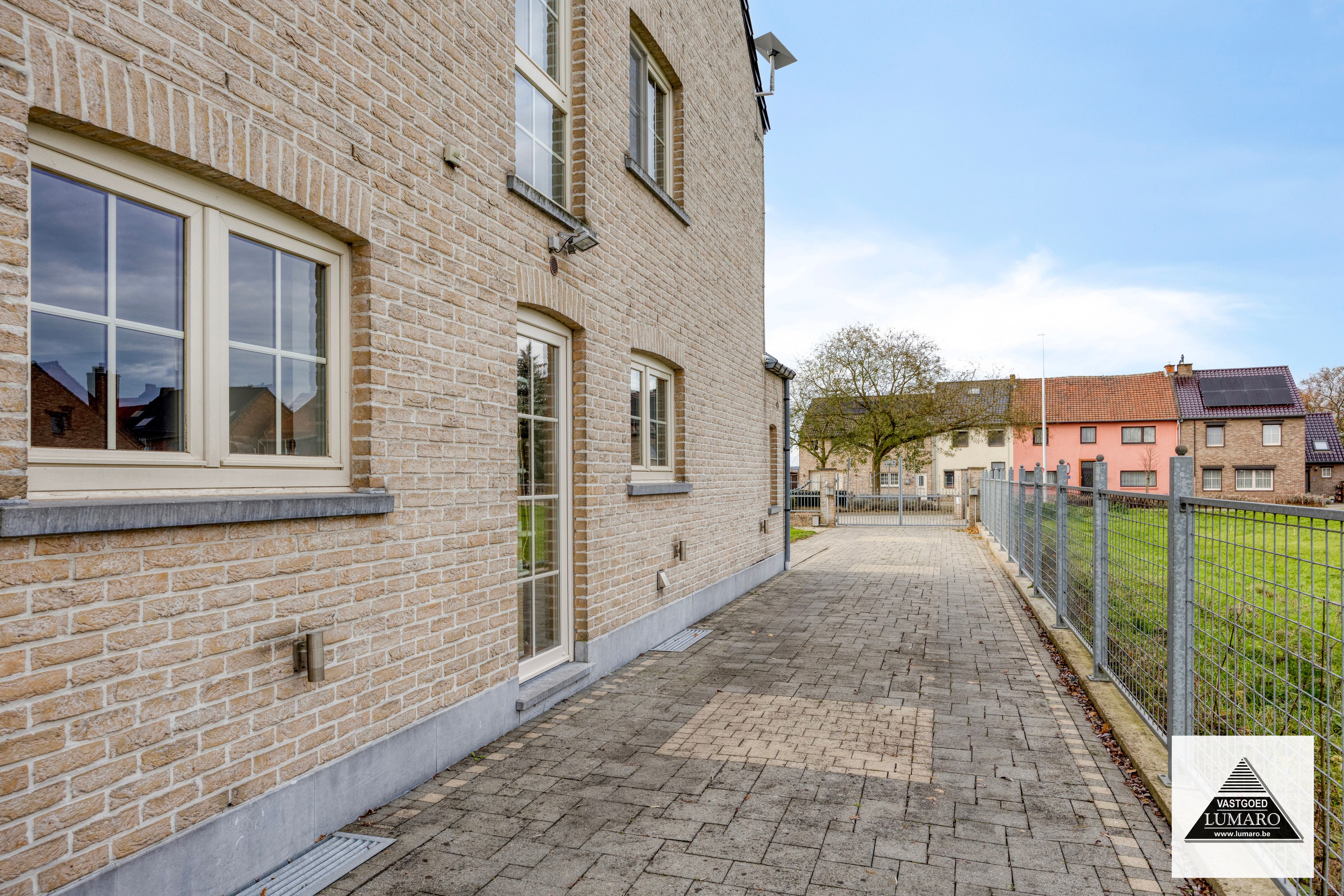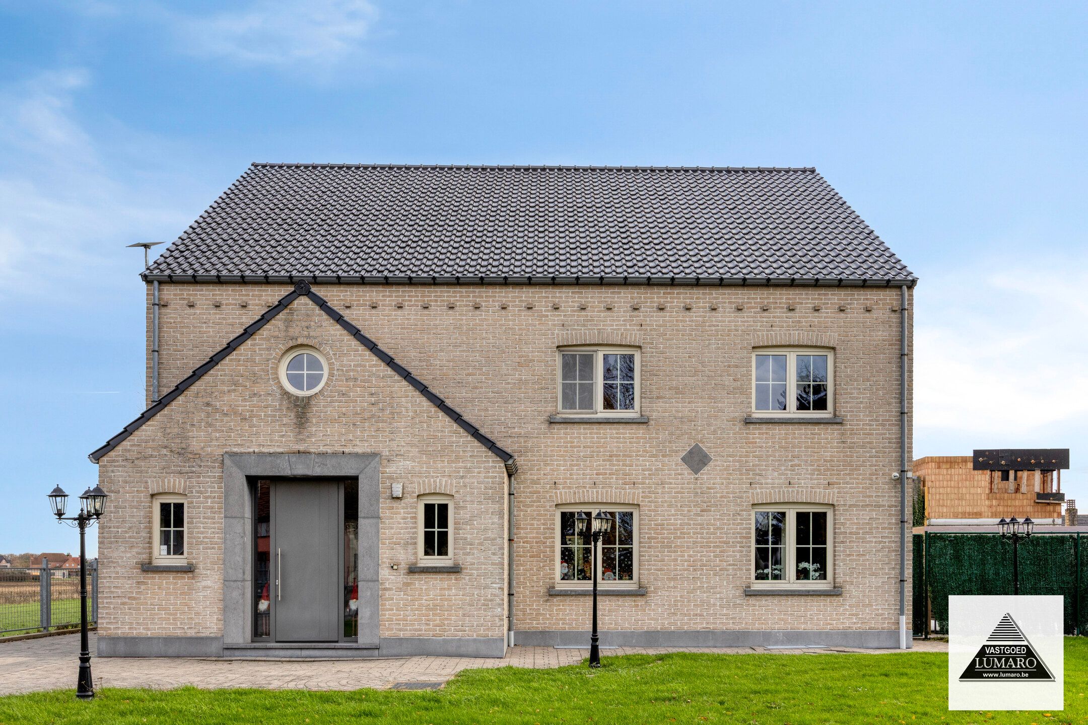 De villa met bouwjaar 2000. Draadloos buitenalarm. Buitenmuren zijn met dubbele spouw ( 3 muren: binnenmuur – muur in rode isolatieblok – buitenmuur). Dak geïsoleerd met iso-bouwpanelen. Tussenvloeren in welfsels. Plint in arduin; keldermetselwerk in dubbele betonblokken. PVC ramen met dubbel glas en ingewerkte kruisverdeling. Aluminium voordeur. Dorpels in arduin en vensterbanken in marmer. Vloerramen in living en bureel. Schuifpui naar overkapping/ veranda. Vloerverwarming gelijkvloers met aanvullende radiator in keuken, living en gang. Flam houthaard in de woonkamer.