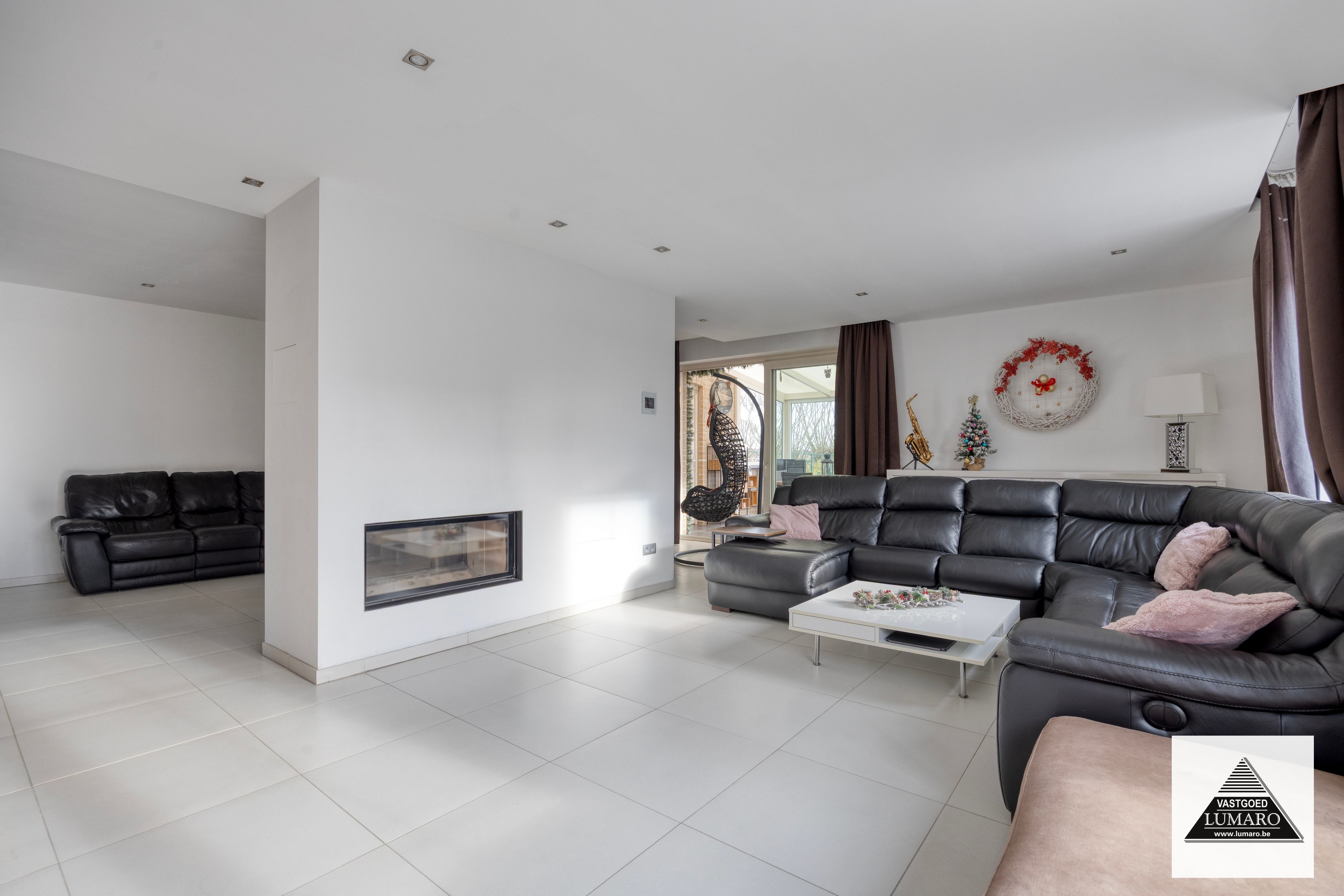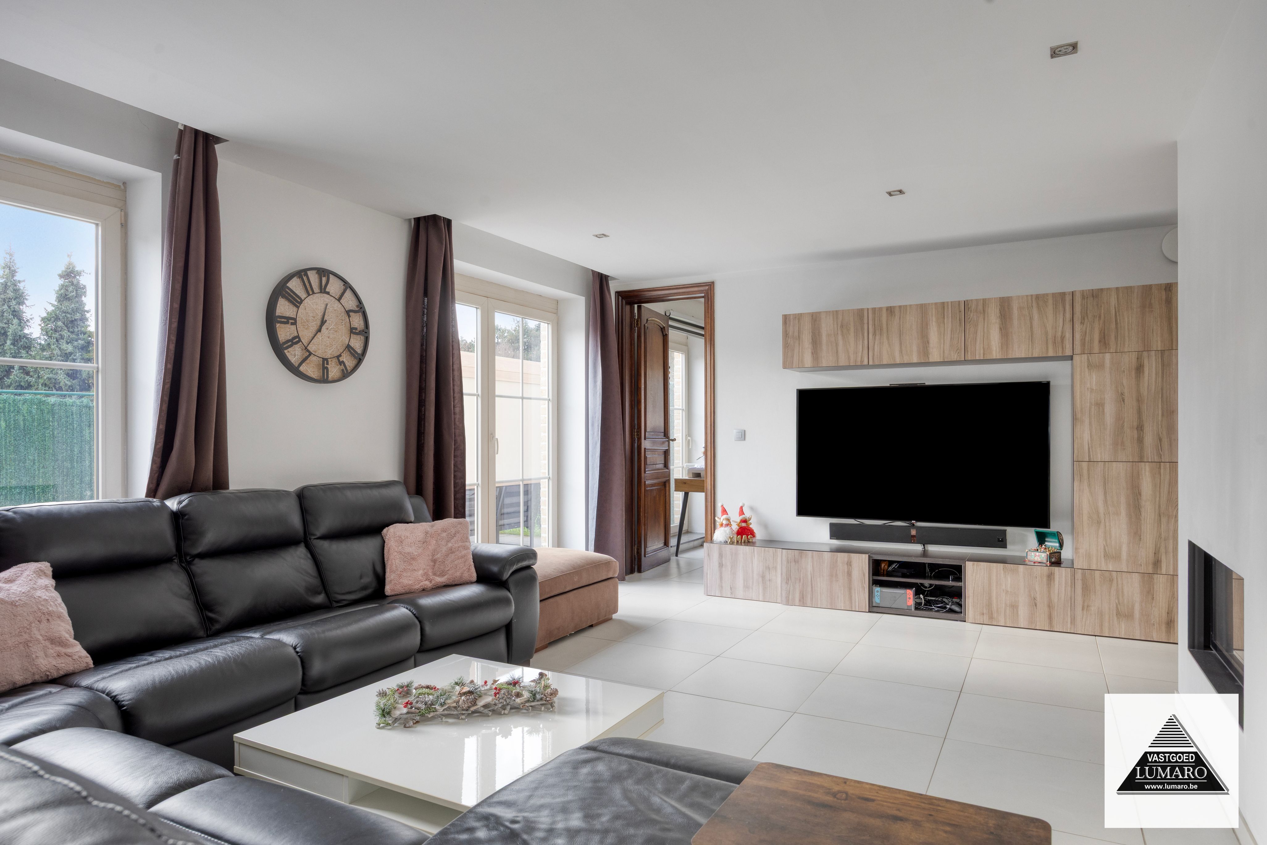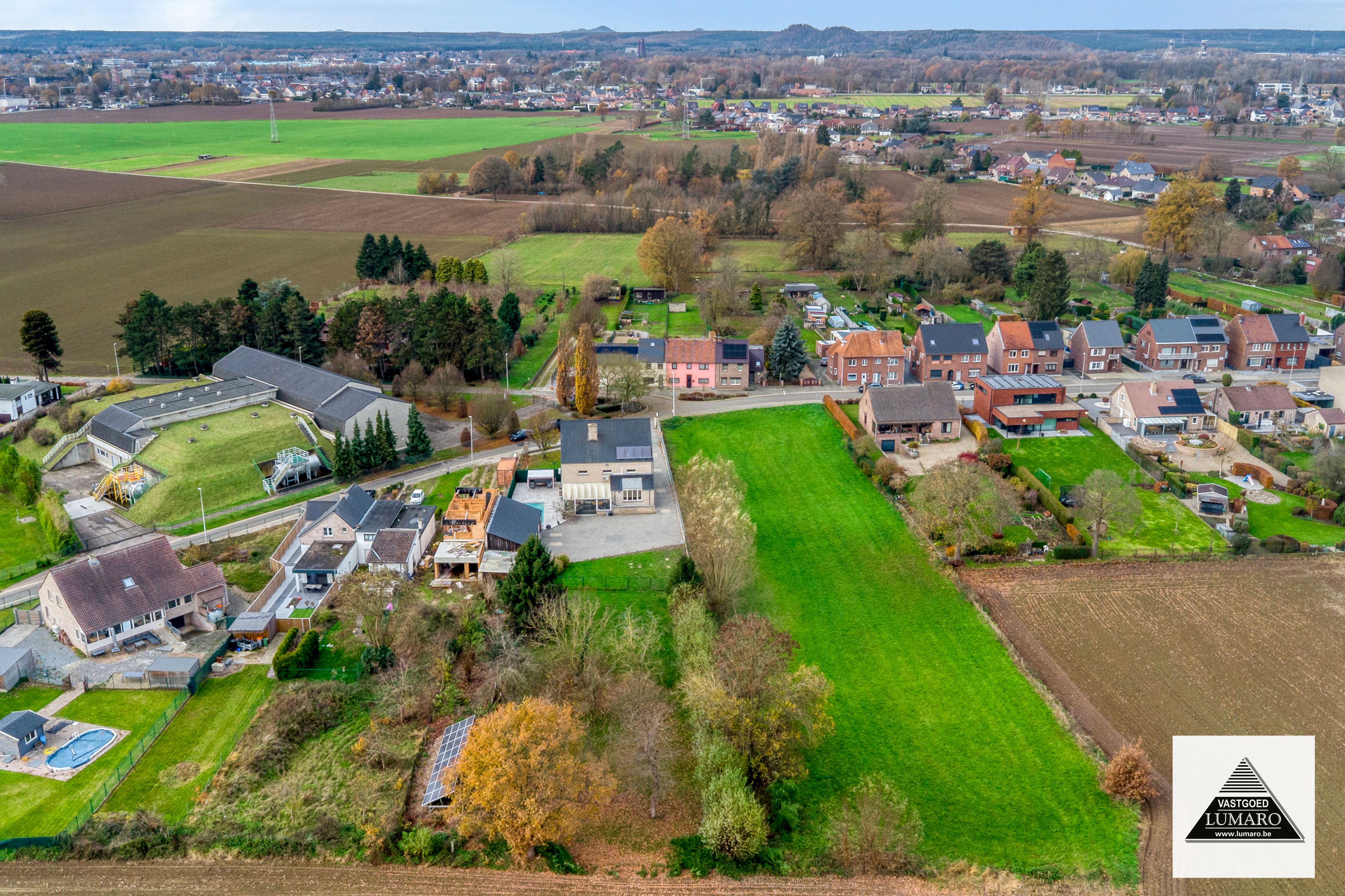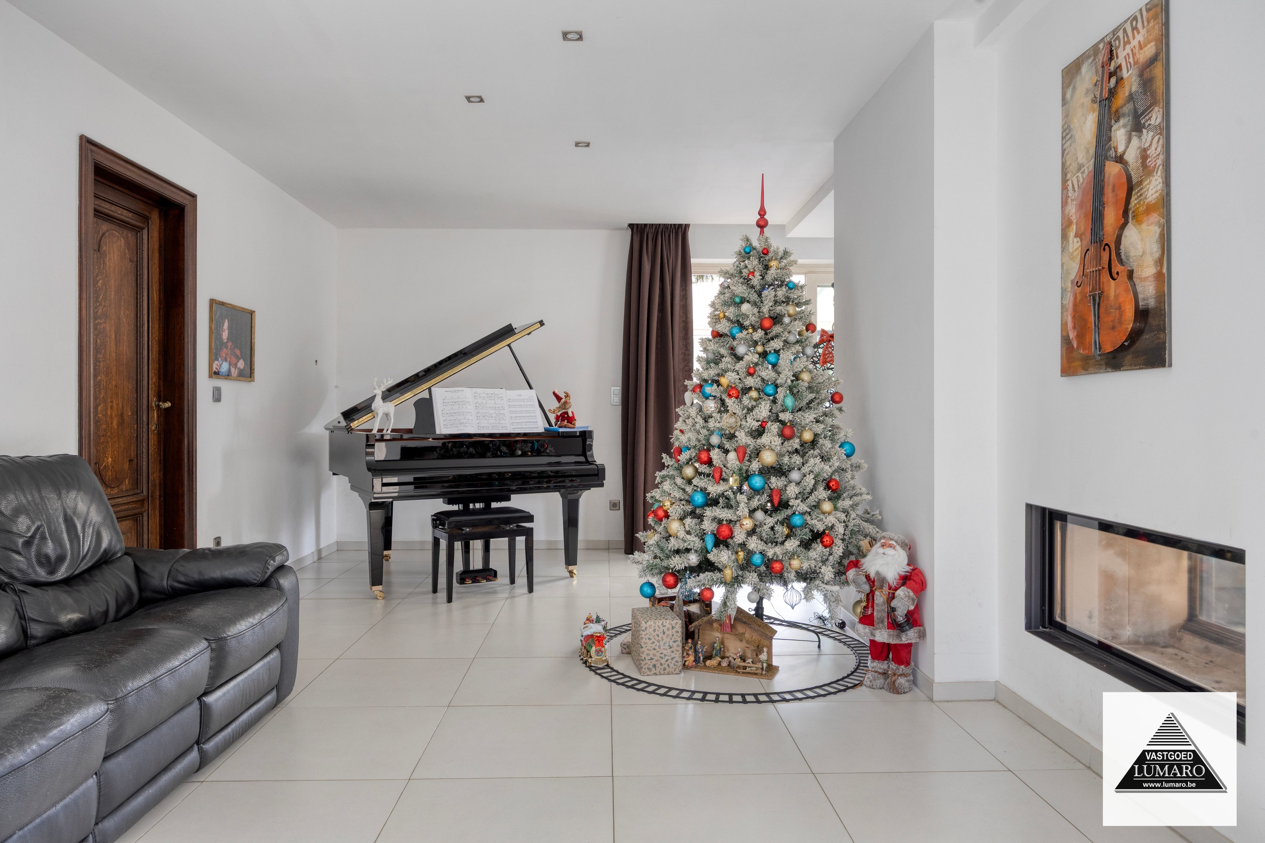 De villa met bouwjaar 2000. Draadloos buitenalarm. Buitenmuren zijn met dubbele spouw ( 3 muren: binnenmuur – muur in rode isolatieblok – buitenmuur). Dak geïsoleerd met iso-bouwpanelen. Tussenvloeren in welfsels. Plint in arduin; keldermetselwerk in dubbele betonblokken. PVC ramen met dubbel glas en ingewerkte kruisverdeling. Aluminium voordeur. Dorpels in arduin en vensterbanken in marmer. Vloerramen in living en bureel. Schuifpui naar overkapping/ veranda. Vloerverwarming gelijkvloers met aanvullende radiator in keuken, living en gang. Flam houthaard in de woonkamer.