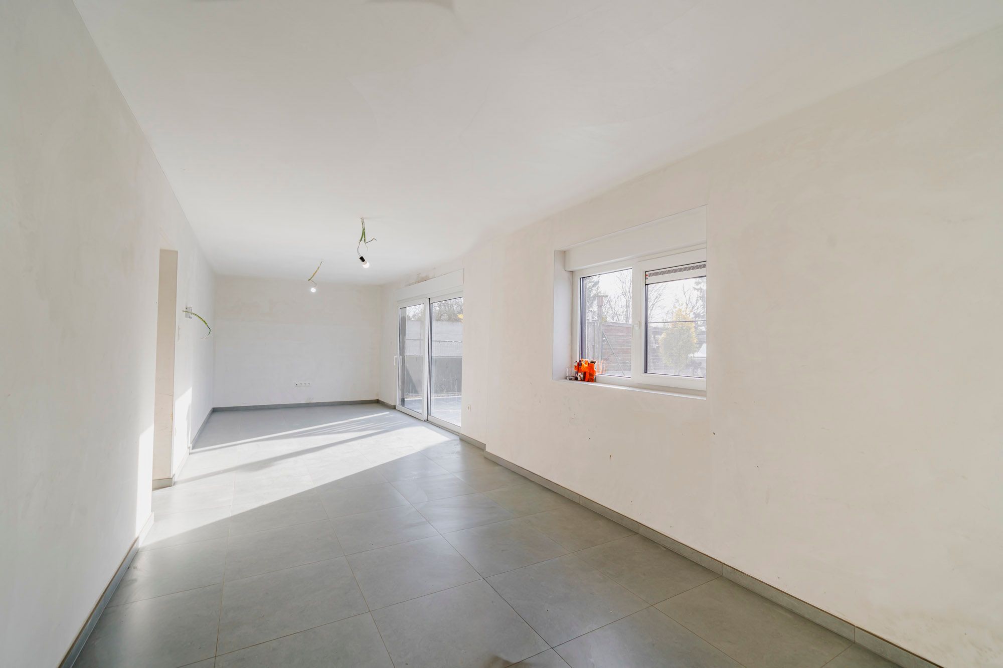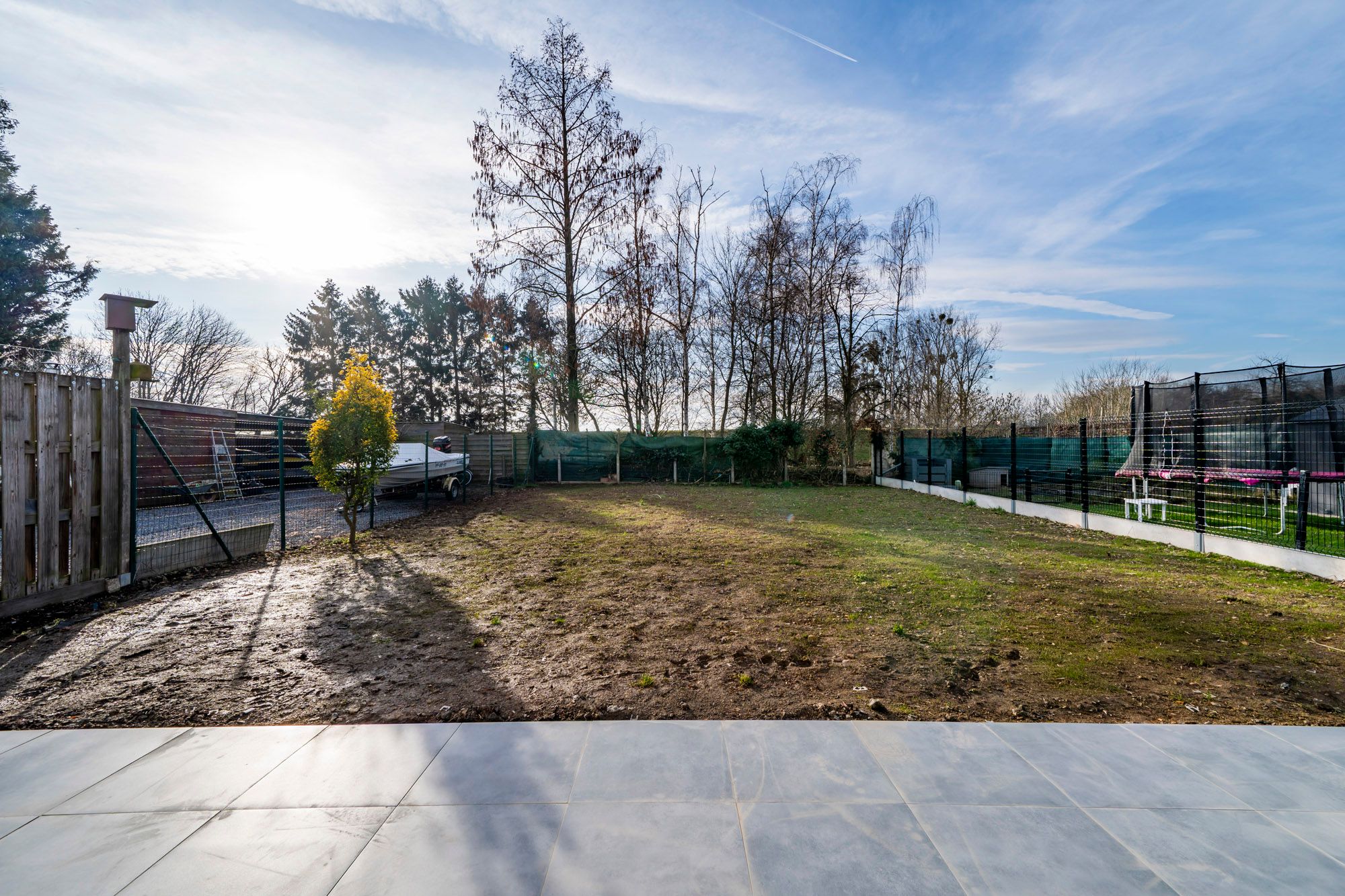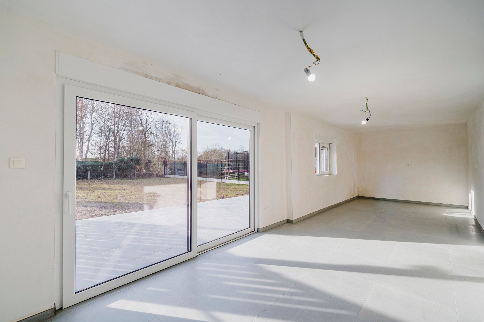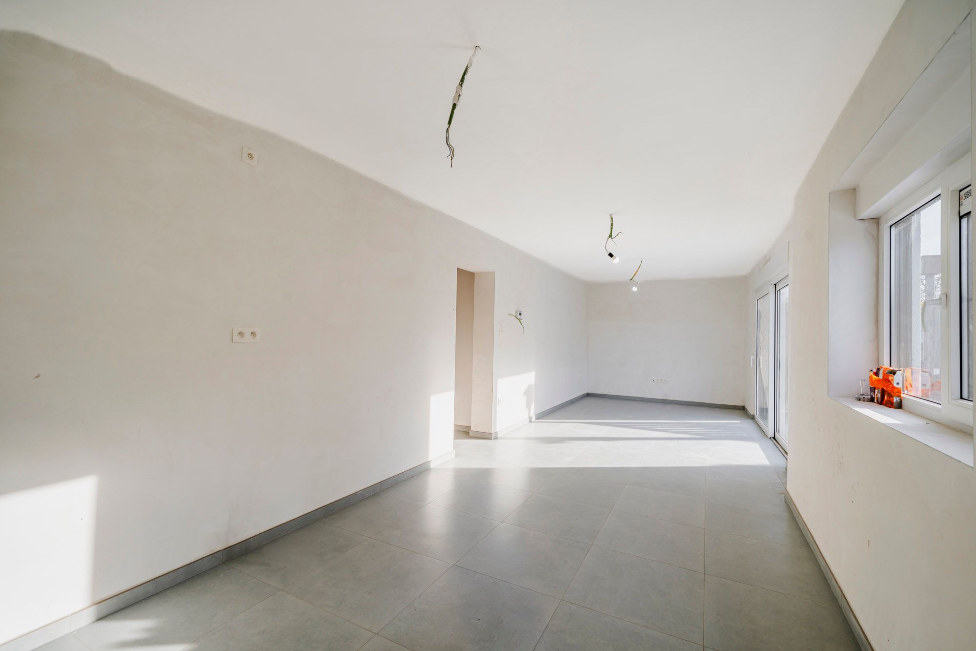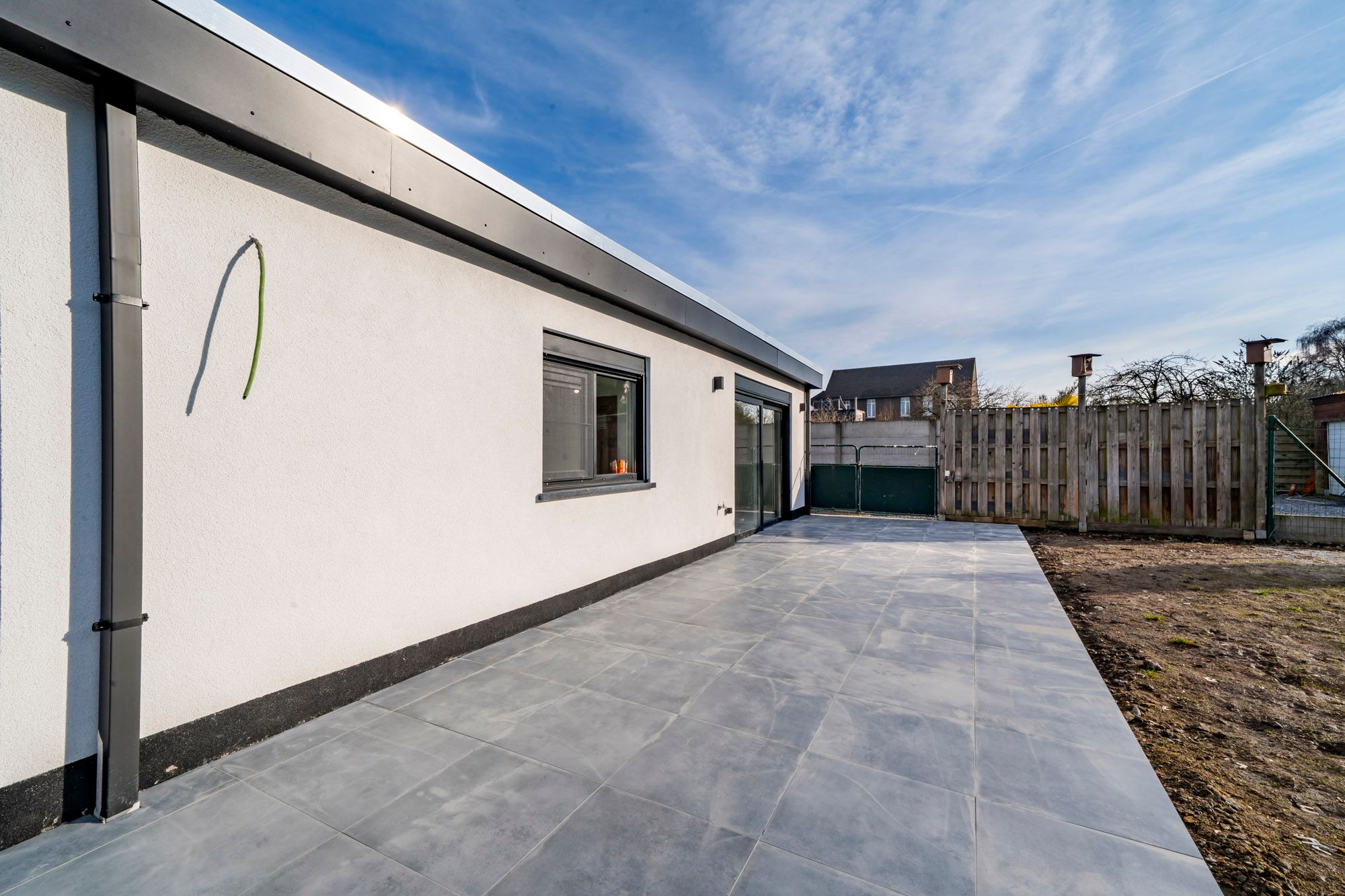 Aansluitend op de woonkamer met open keuken is er via schuifpui een terras over heel de breedte van de woning.