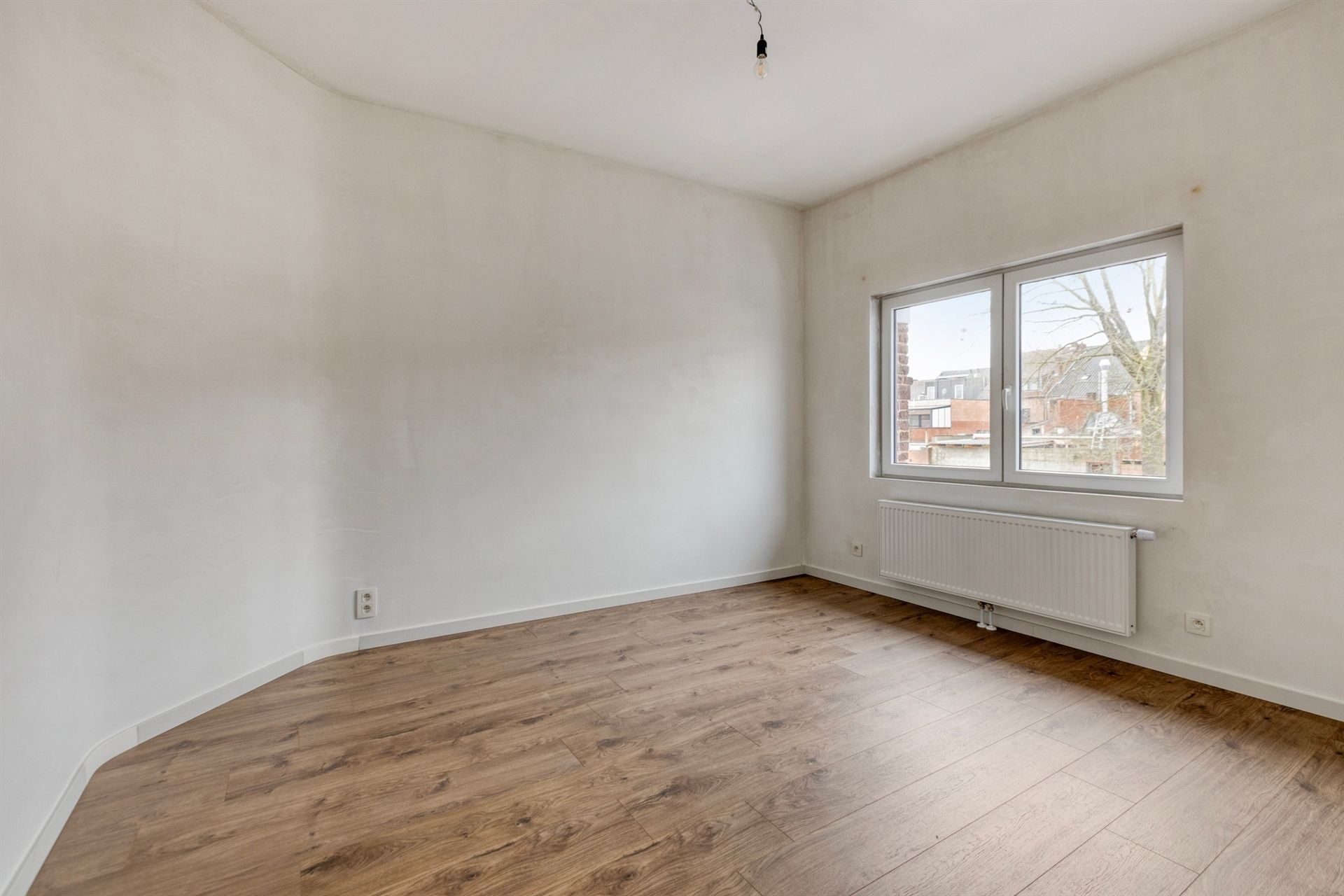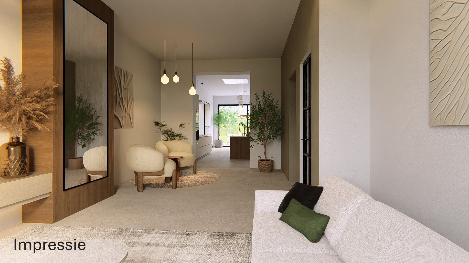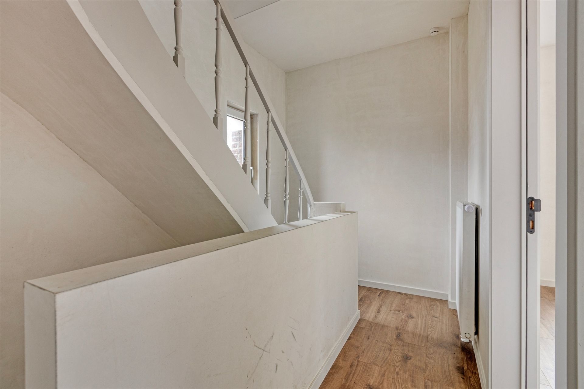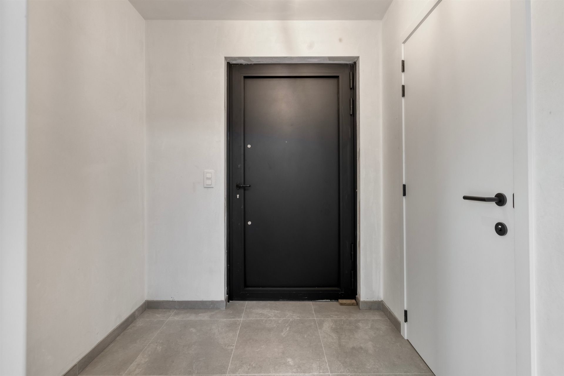 Bij binnenkomst word je verwelkomd in een stijlvolle inkomhal met parkettegels, die doorlopen in de ruime, lichtrijke woonkamer. Dankzij de grote raampartijen geniet je hier van een overvloed aan natuurlijk licht.