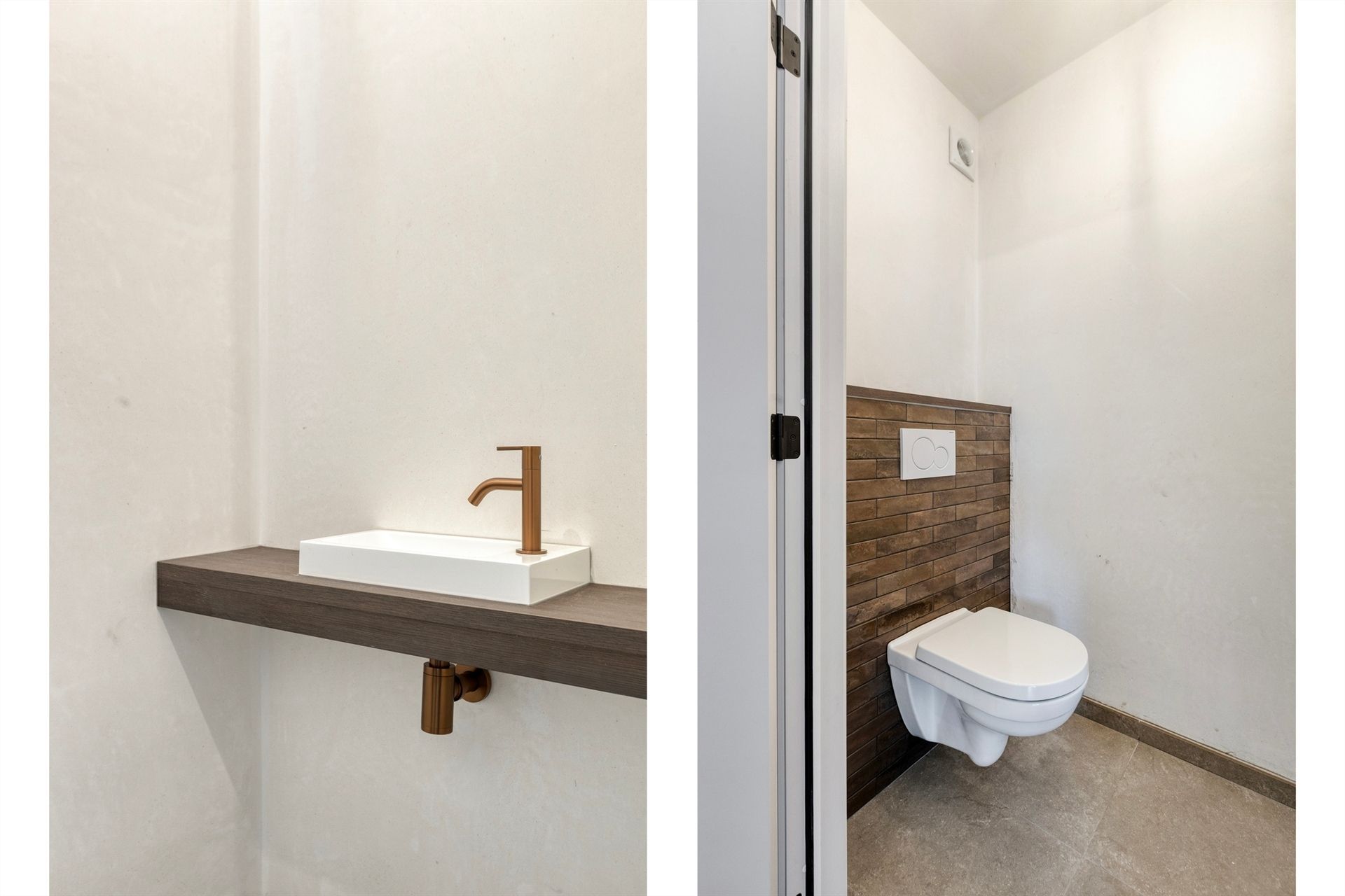 Via een handige zijdeingang kom je binnen in een kleine hal met gastentoilet, die rechtstreeks toegang biedt tot de keuken.