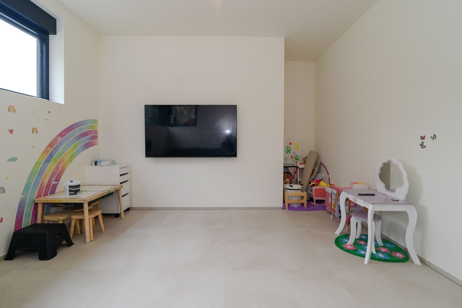Aansluitend aan de leefruimte bevindt zich een polyvalente ruimte die momenteel dienst doet als speelkamer. Dankzij de reeds voorziene aansluiting voor een douche kan deze ruimte eenvoudig ingericht worden als gelijkvloerse slaapkamer met badkamer.