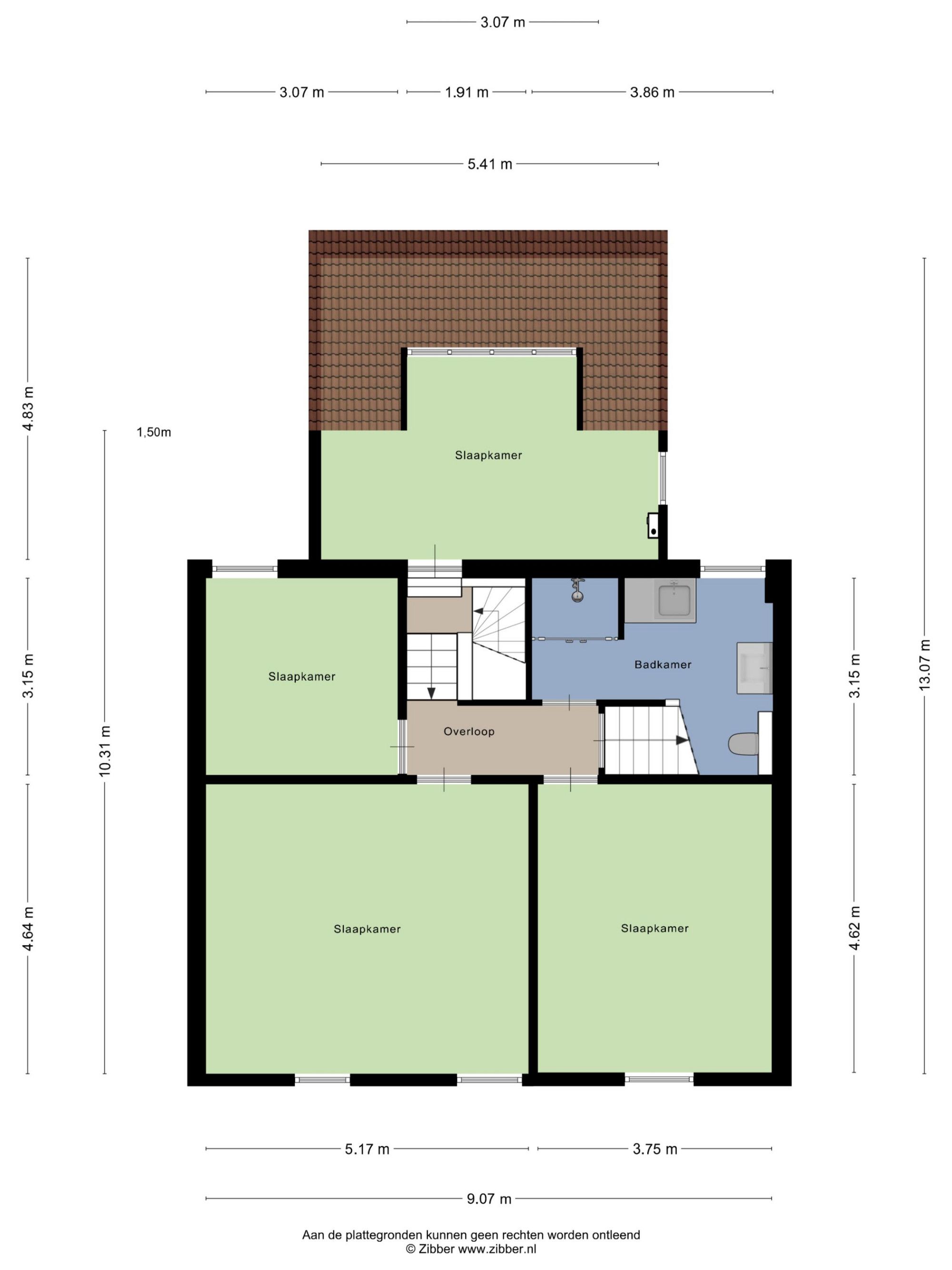 - Overloop met toegang tot de vertrekken en vaste trap naar de zolder.