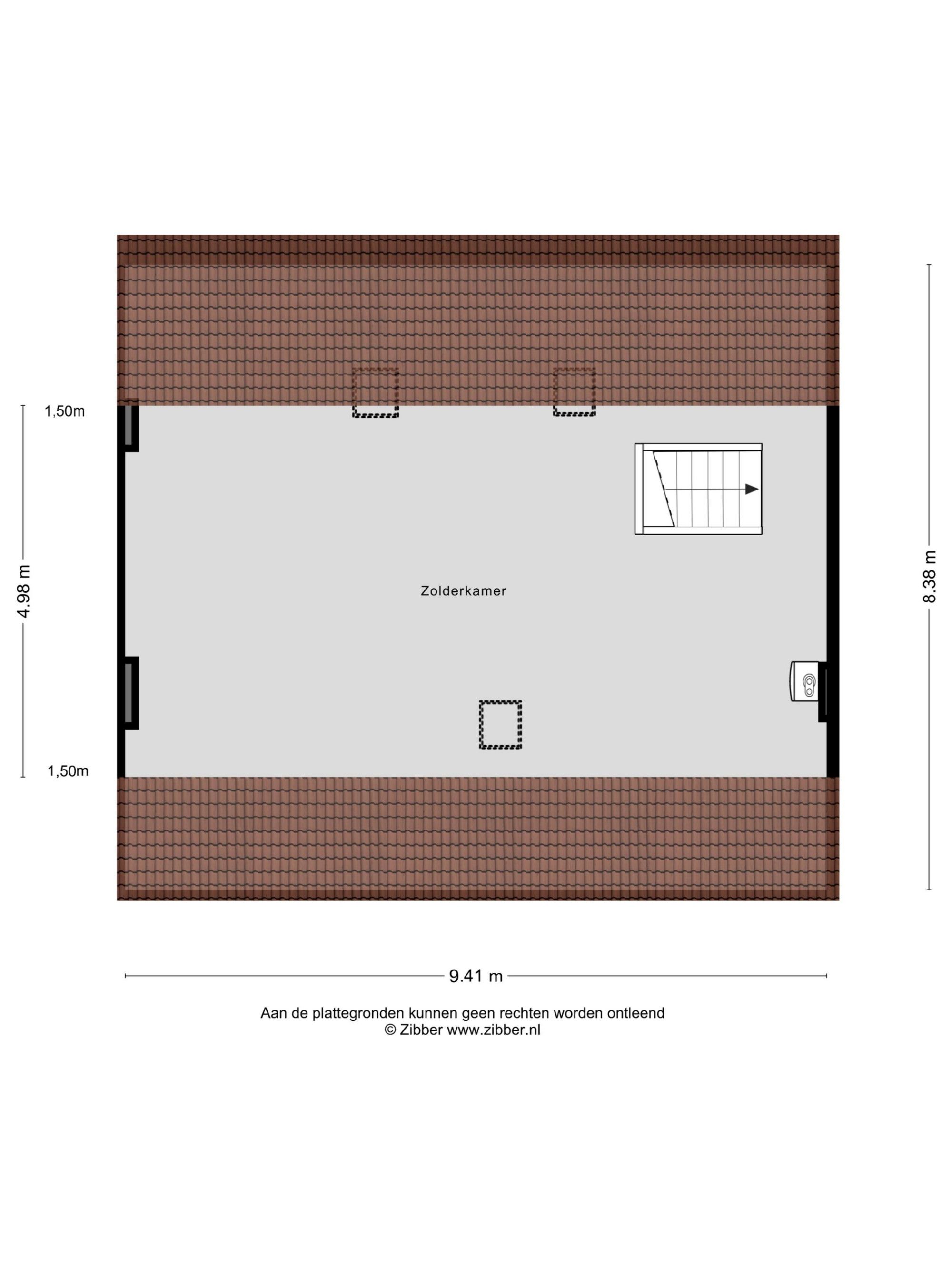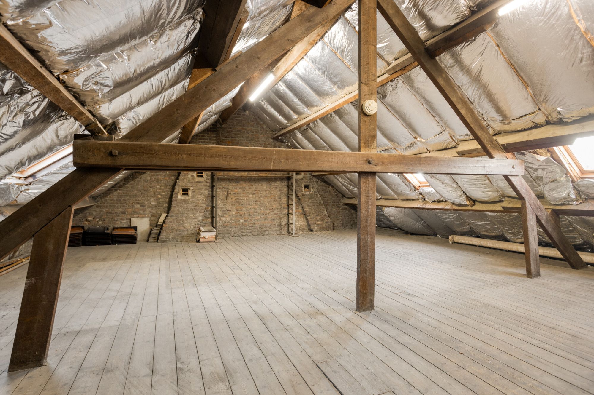 Via vaste trap bereikbare grote zolder van ca. 47 m² met 3 dakramen en met opstelplaats van de CV installatie.