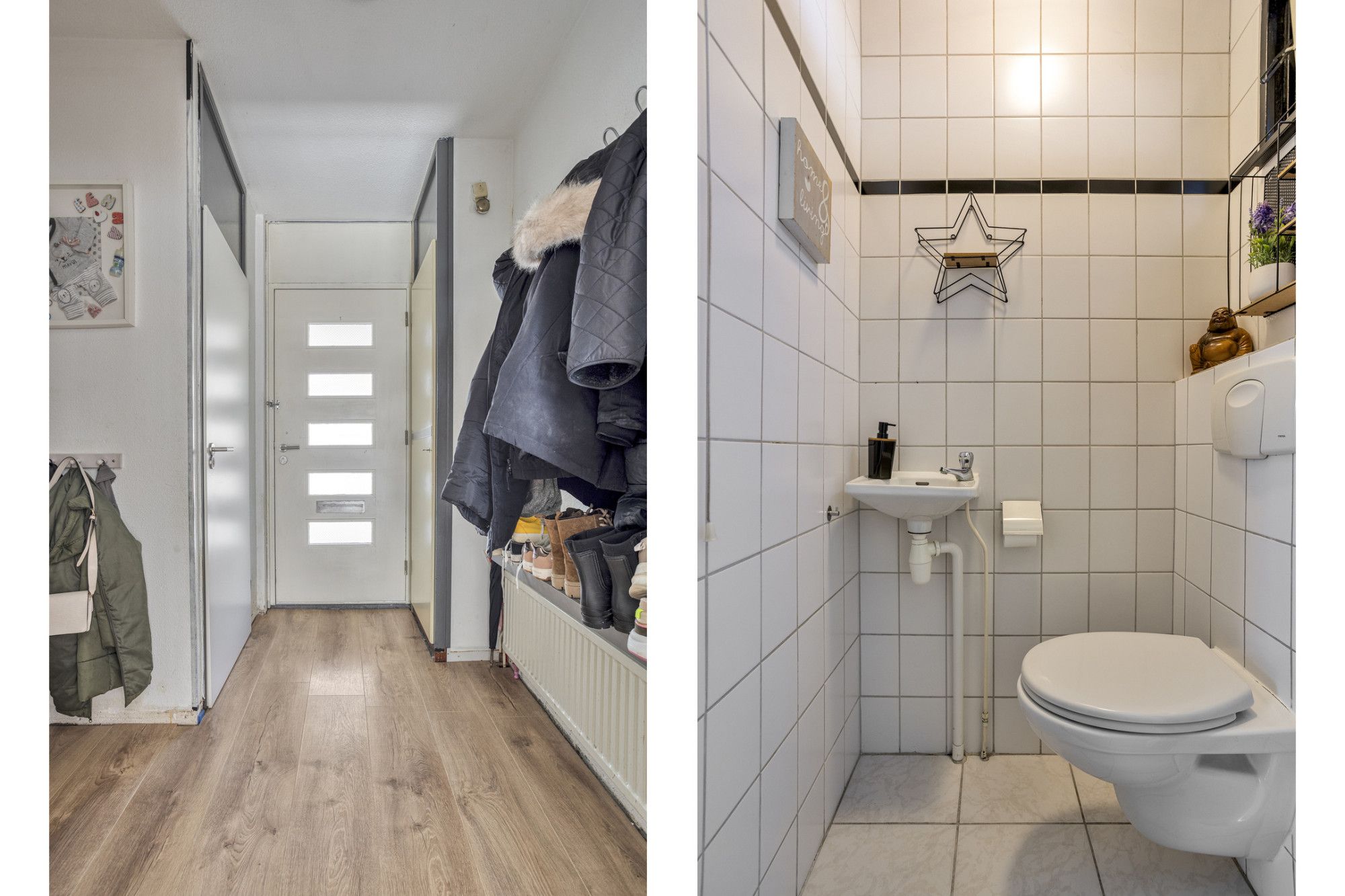 Entreehal met toiletruimte (wandcloset, fontein) en meterkast.