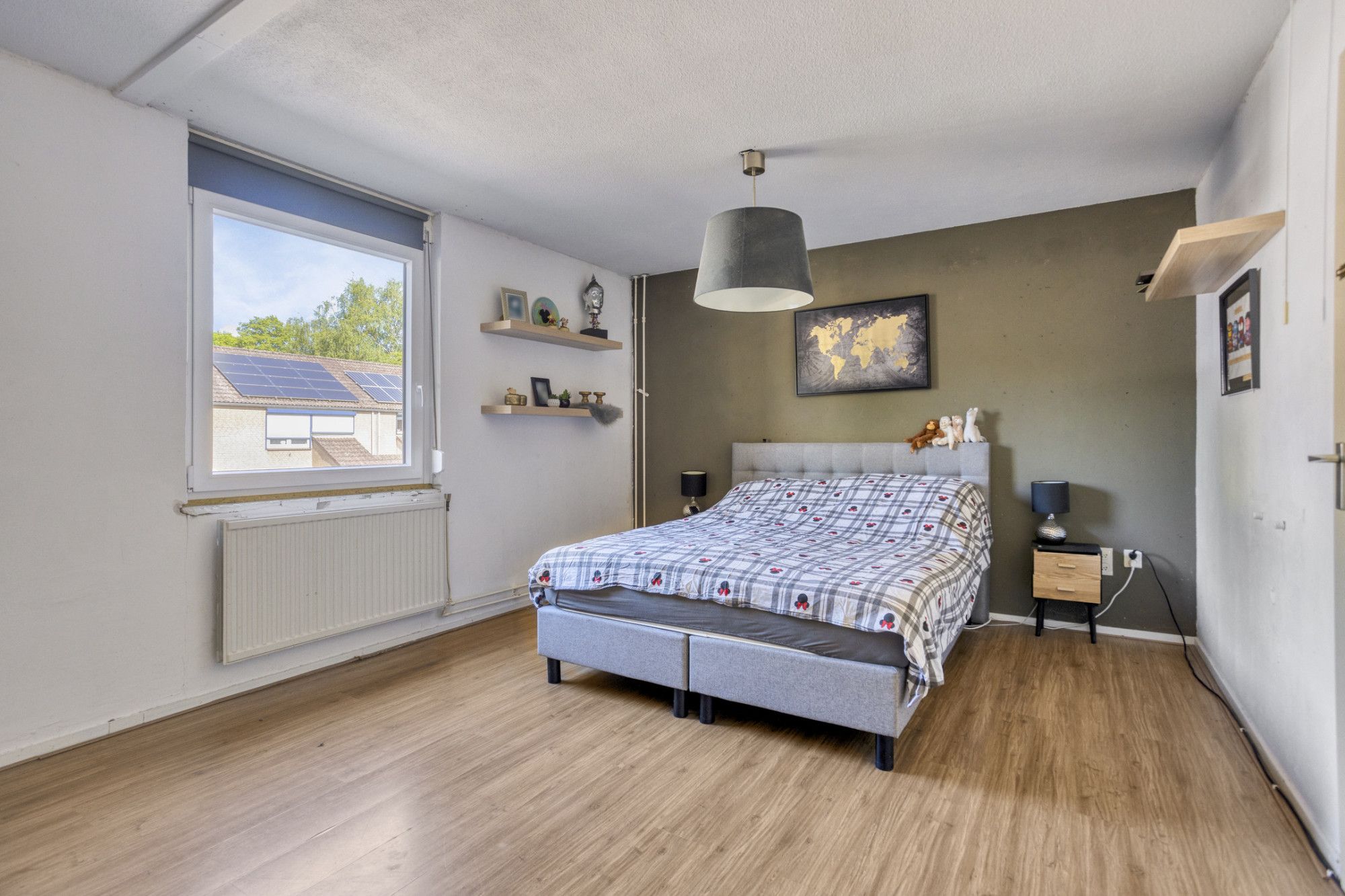Woning brede slaapkamer aan de voorzijde (voorheen 2 slaapkamers), 2 slaapkamers aan de achterzijde.