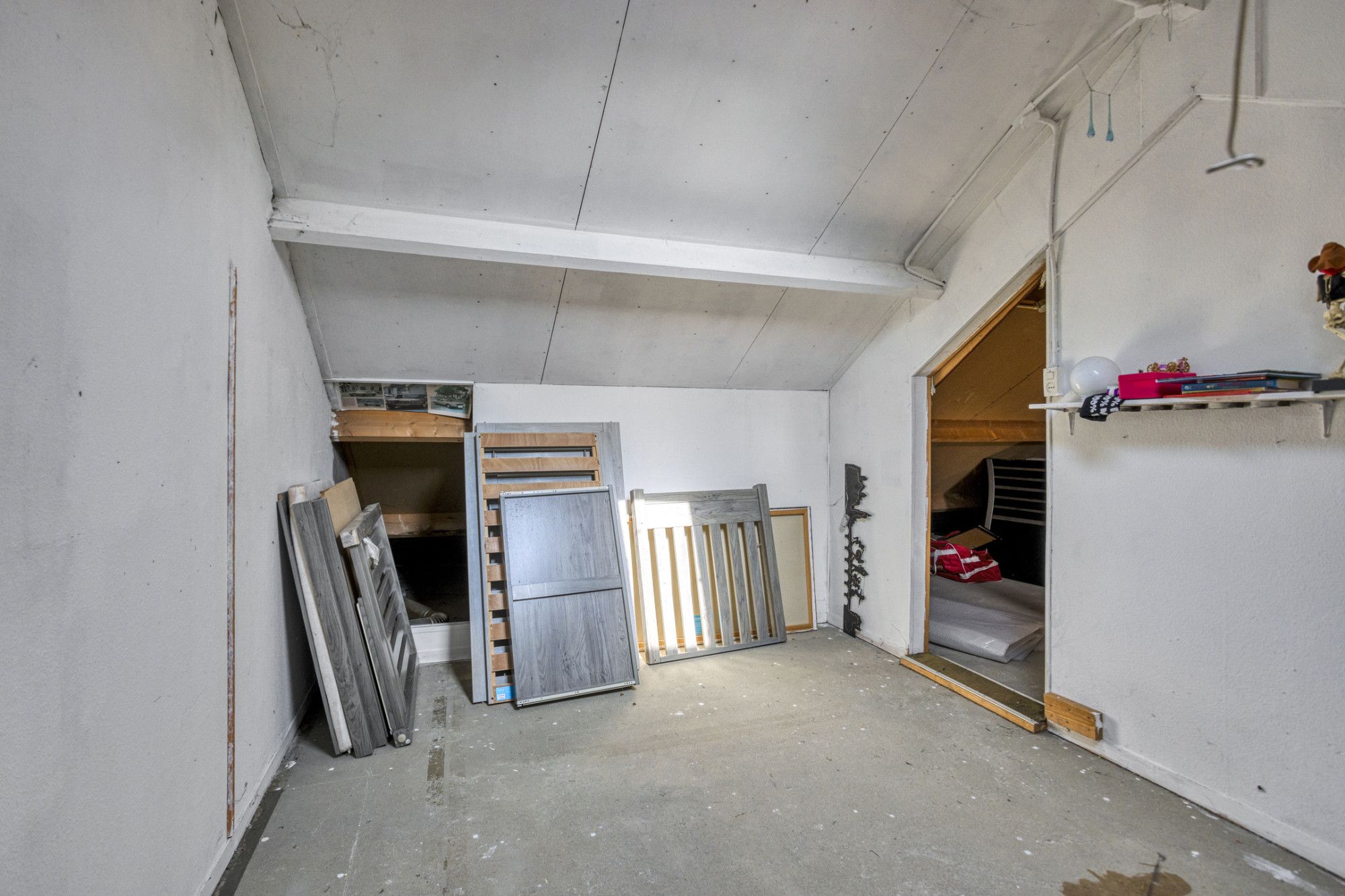 Middels vlizotrap bereikbare ruime zolder, met een nokhoogte van bijna 2,5 meter, verdeeld in 2 ruimtes, beide voorzien van een dakraam. Hier hangt de c.v.-combiketel.