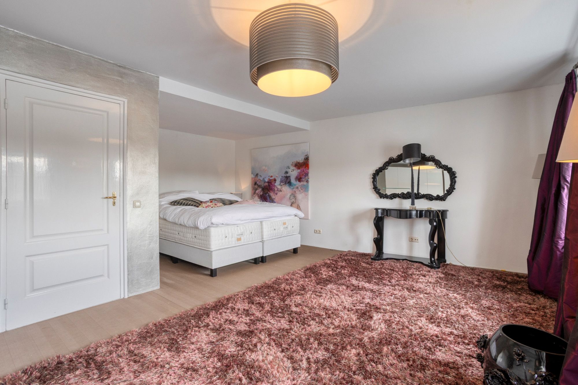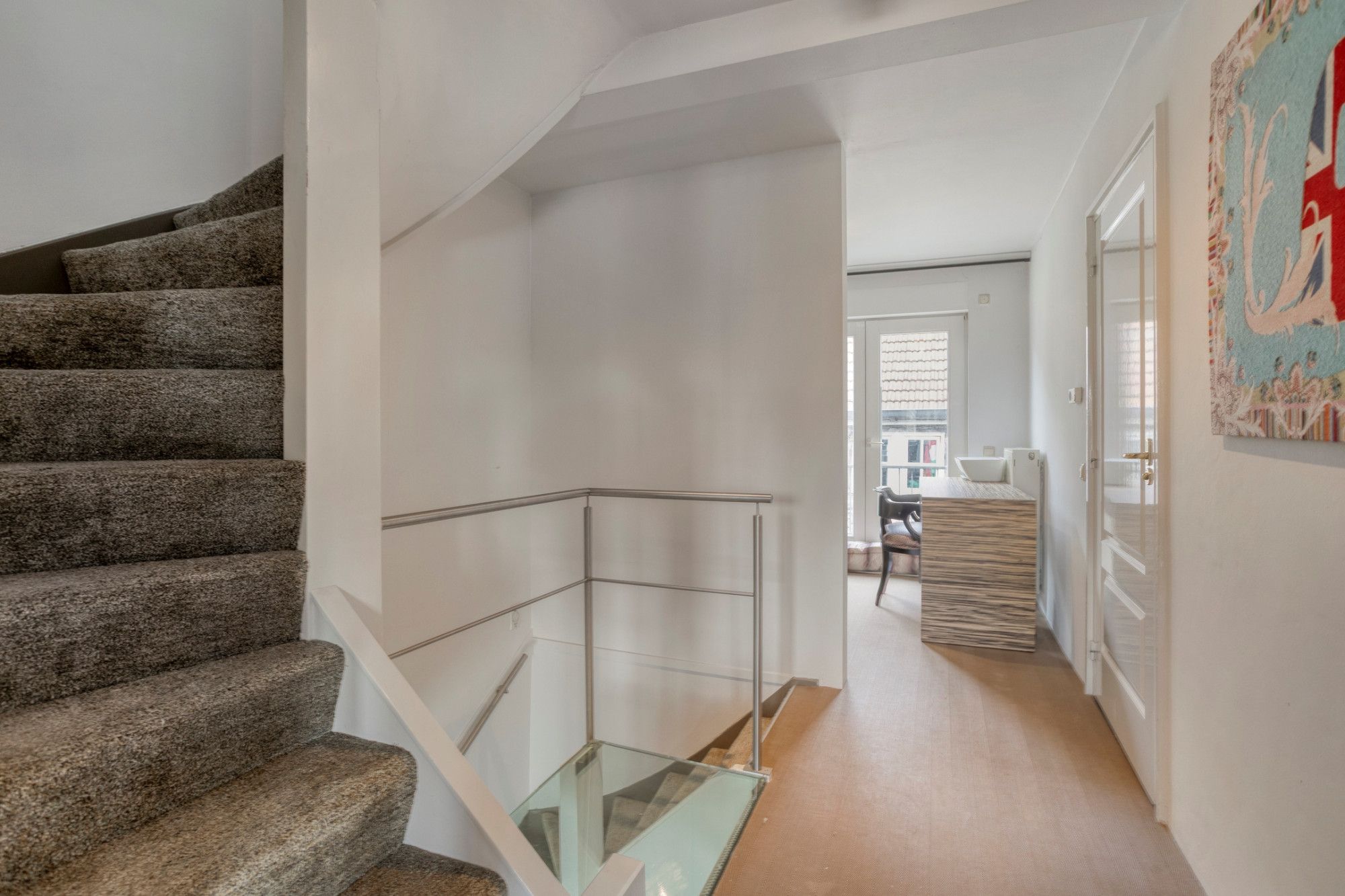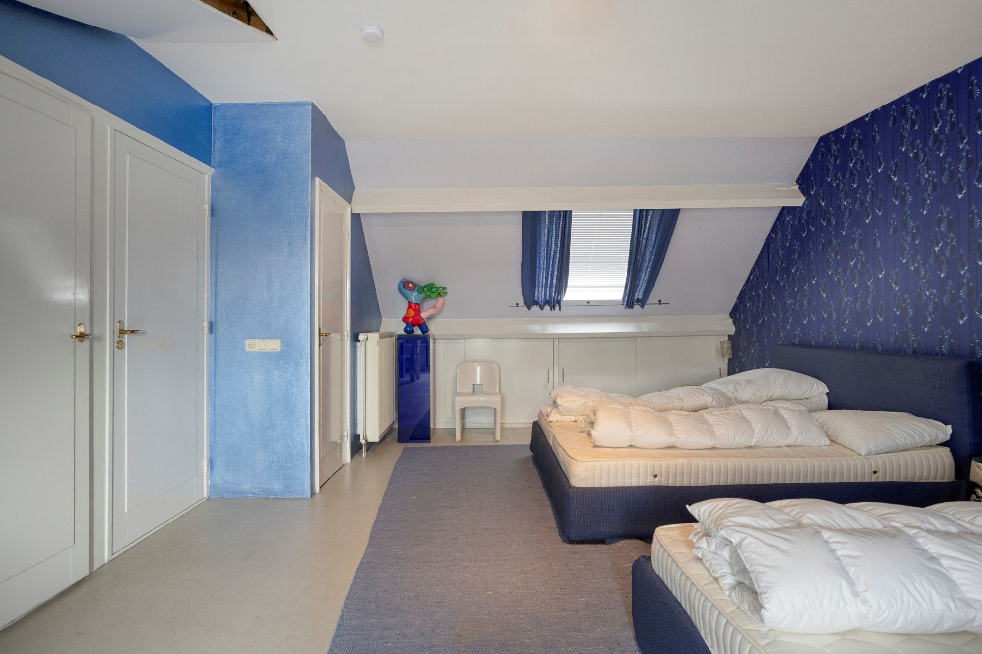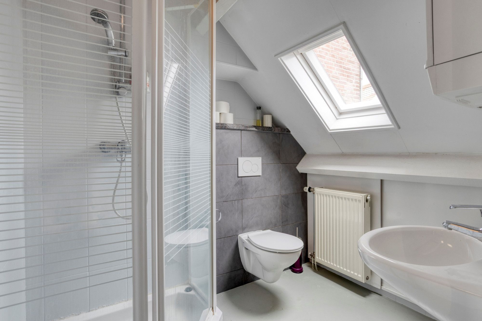 Op de derde verdieping bevindt zich de tweede slaapkamer, momenteel in gebruik als logeerkamer. Deze kamer beschikt over een eigen badkamer met douche, zwevend toilet en wastafel.