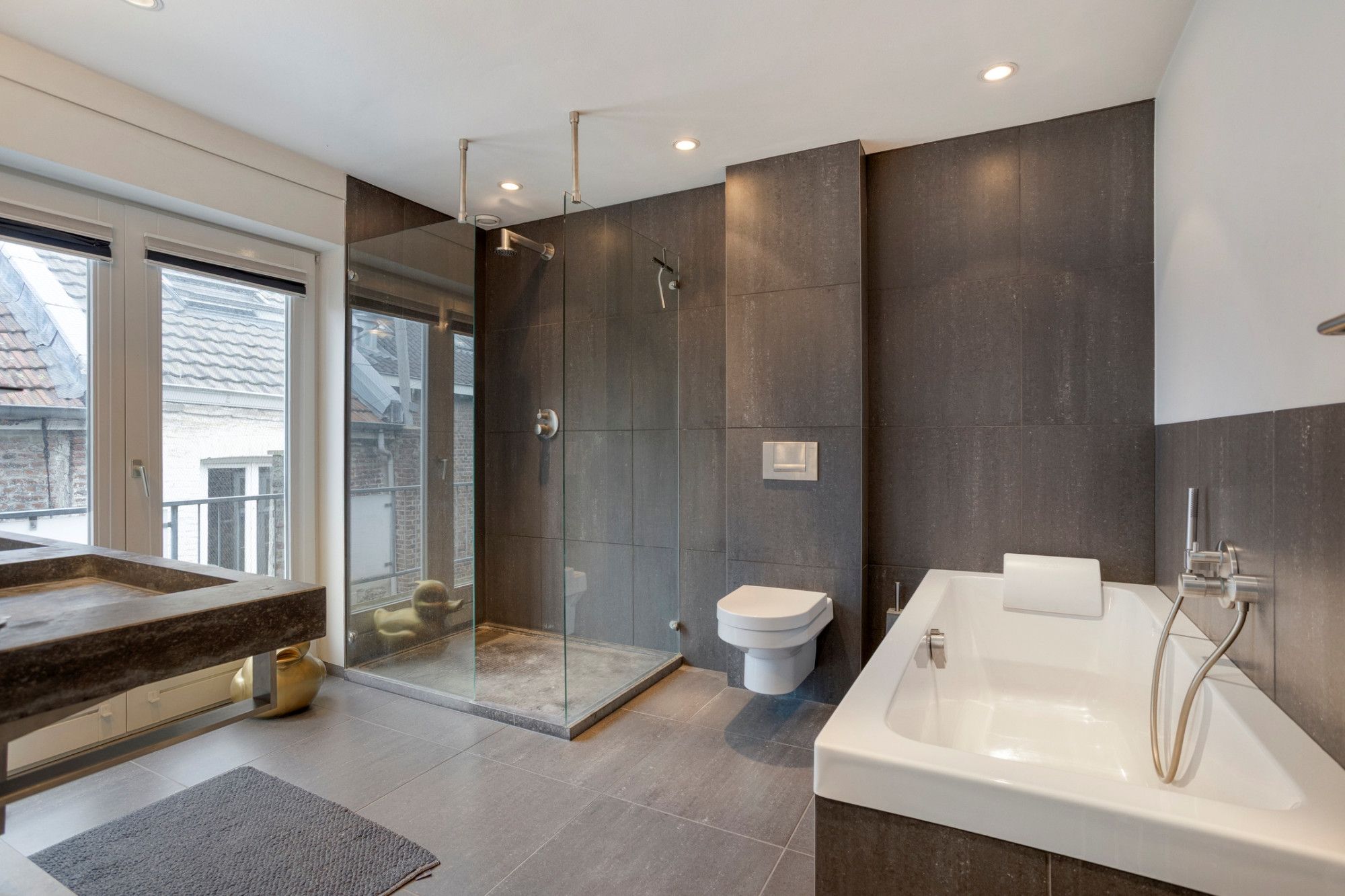 De tweede verdieping beschikt over een overloop met praktische werkhoek, een royale slaapkamer aan de voorzijde met wederom uitzicht over de Maas en een ruime badkamer. Deze badkamer is compleet ingericht met een ligbad, inloopdouche, zwevend toilet en een dubbele wastafel. Zowel vanuit de badkamer als de werkhoek is er toegang tot het tweede balkon, eveneens op het oosten.