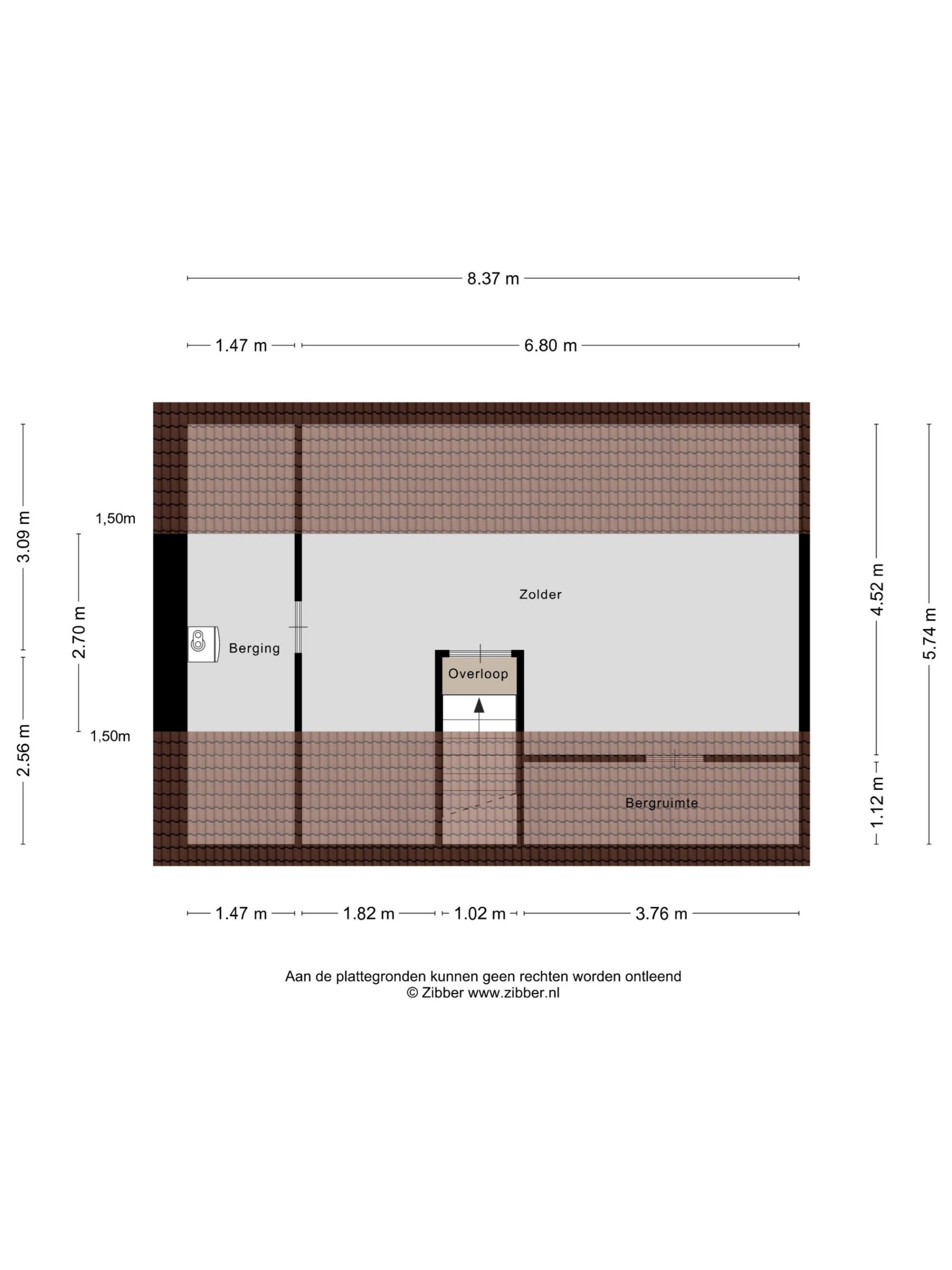 2e Verdieping: bergzolder en plaats voor de cv-installatie en omvormer.