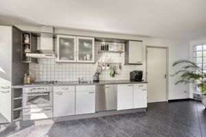 Aansluitend is via 2-zijden de speels ingedeelde leefkeuken bereikbaar welke is voorzien van een keurige aanbouwkeuken en is uitgerust met alle comfort zoals een 4-pits gasfornuis, afzuiging, spoelbak, oven, vaatwasser en koel-vries combinatie. De keukenruimte is afgewerkt met een plavuizenvloer en voorzien van vloerverwarming. Vanuit de keuken is tevens de praktische bijkeuken te bereiken welke is voorzien van een praktisch aanrecht met voldoende opbergmogelijkheden en handige gootsteen. Tevens is vanuit de bijkeuken de zij-tuin bereikbaar.