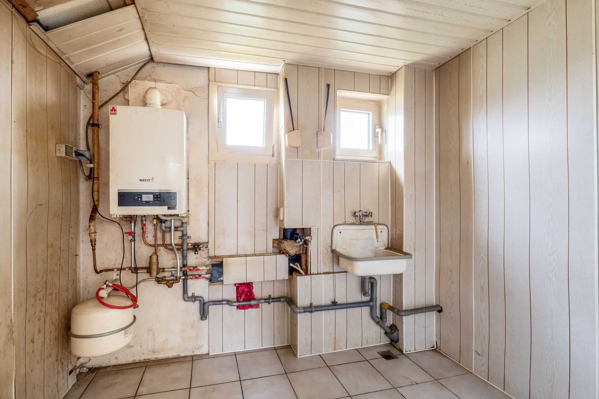 - Dubbele garage met kantelpoorten;