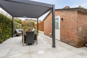 Diepe tuin: De 30 meter diepe achtertuin biedt volop privacy en ruimte, compleet met een achteringang, overkapping, elektrisch bedienbare pergola en tuinberging.