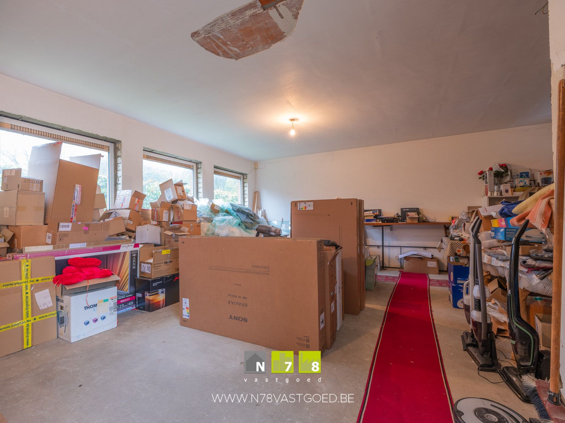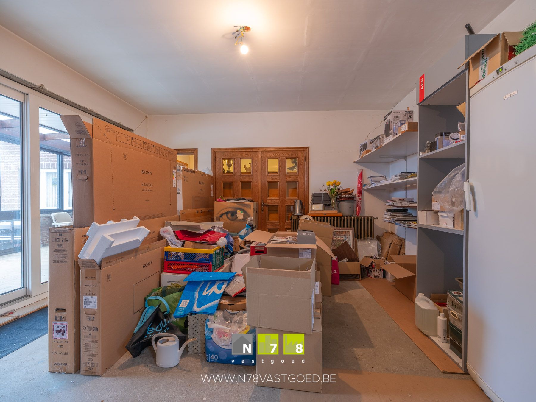 - Magazijn 2 :voorz. open haard, tegelvloer.