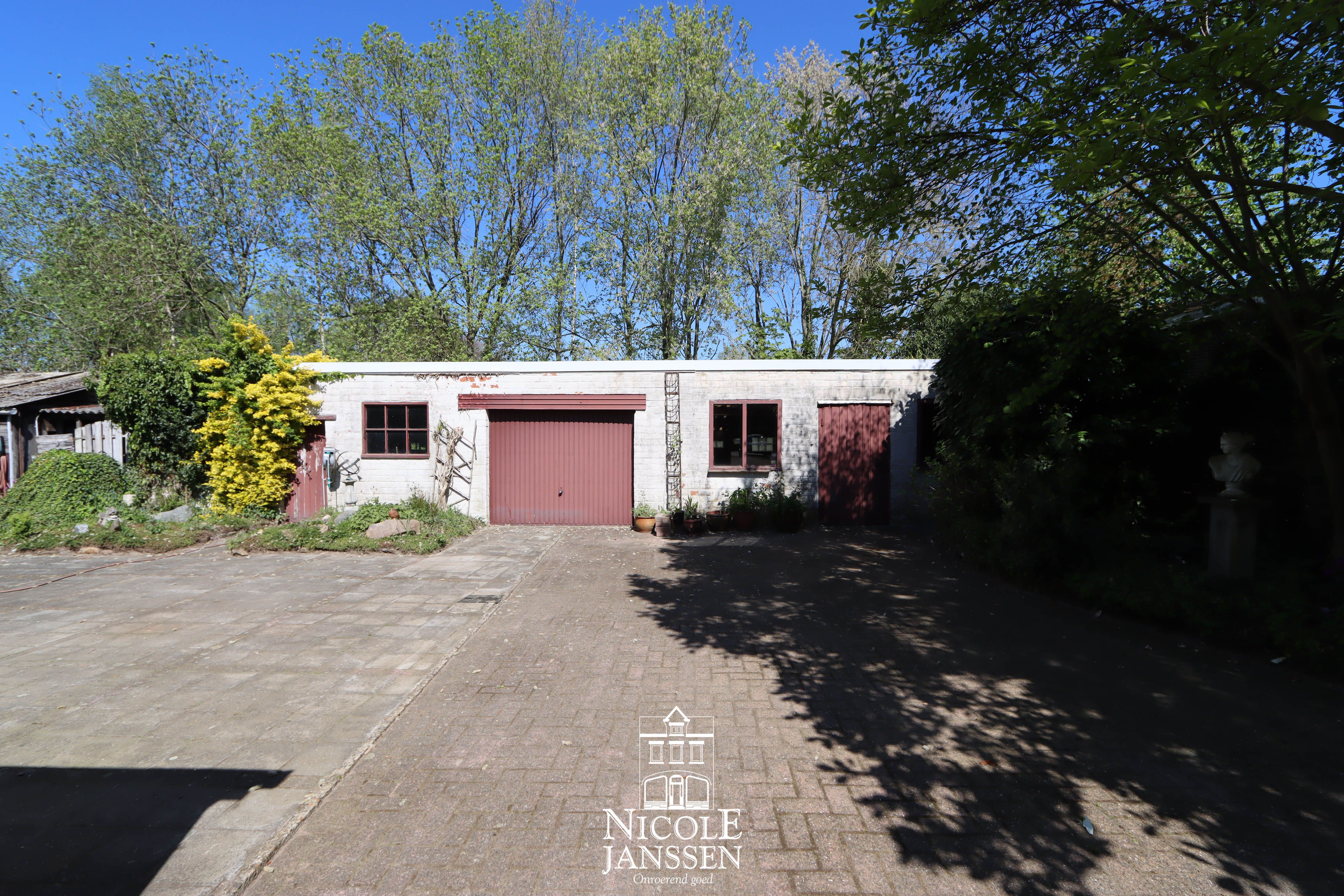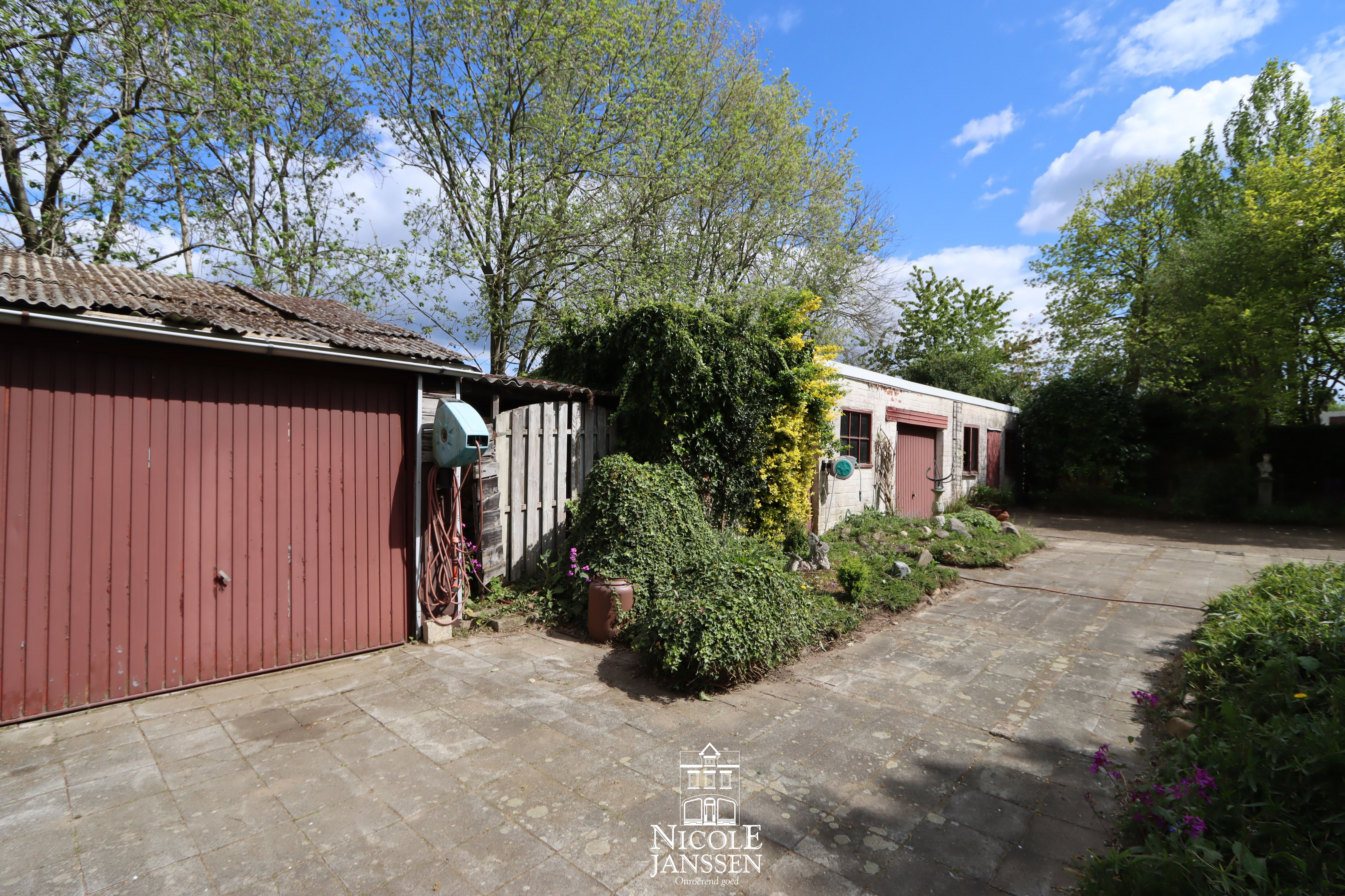 - Vrijstaande tuinbergingen en garage in het verlengde van de inrit