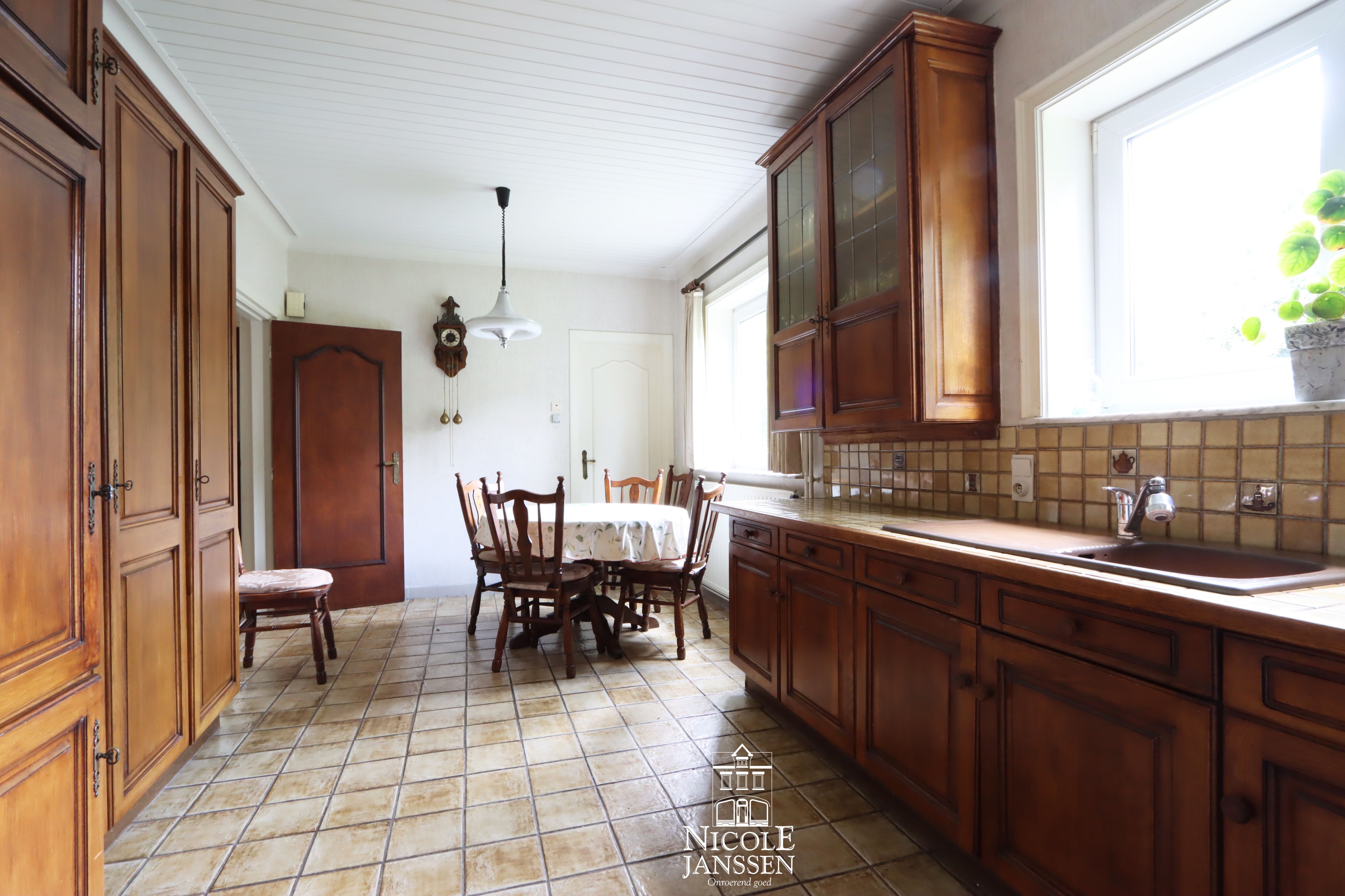 - Eiken keuken met veel kastruimte en mogelijkheid tot eethoek in de keuken zelf