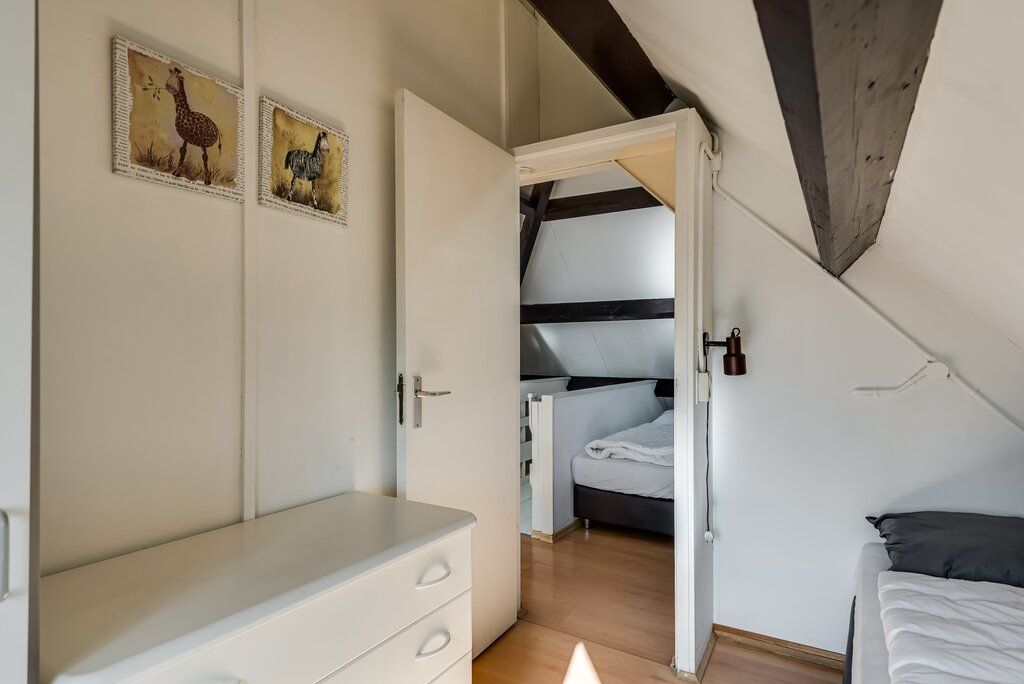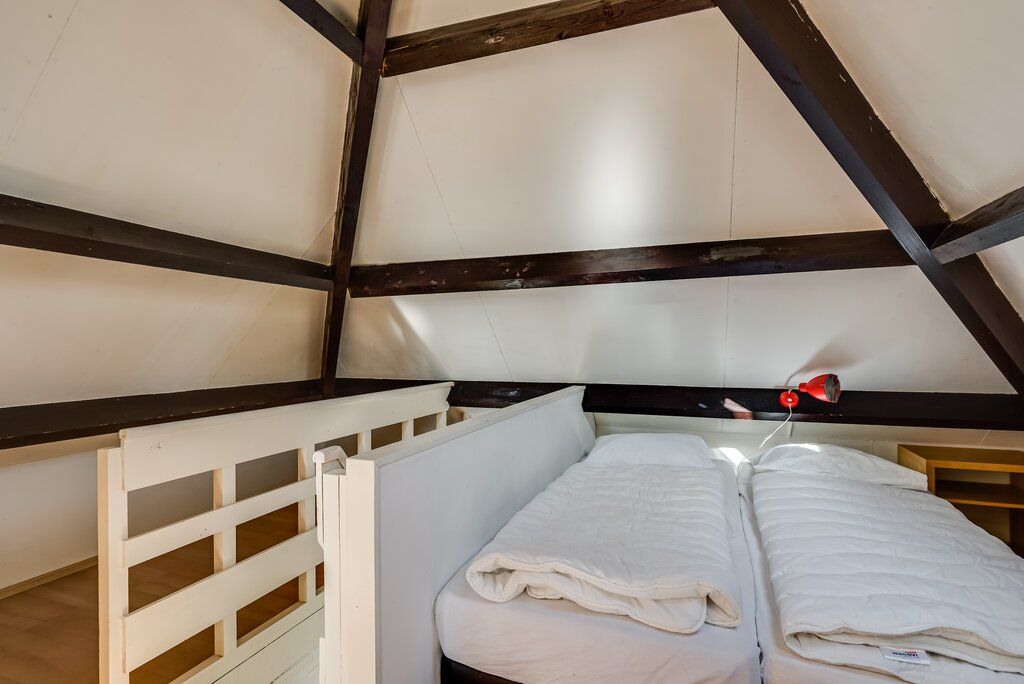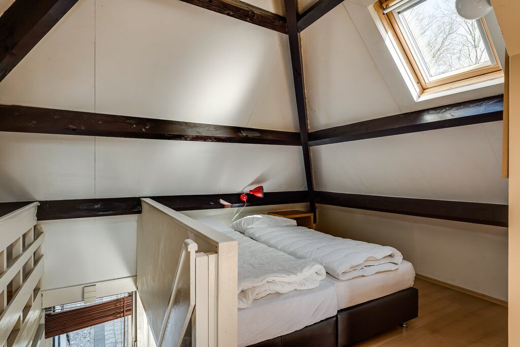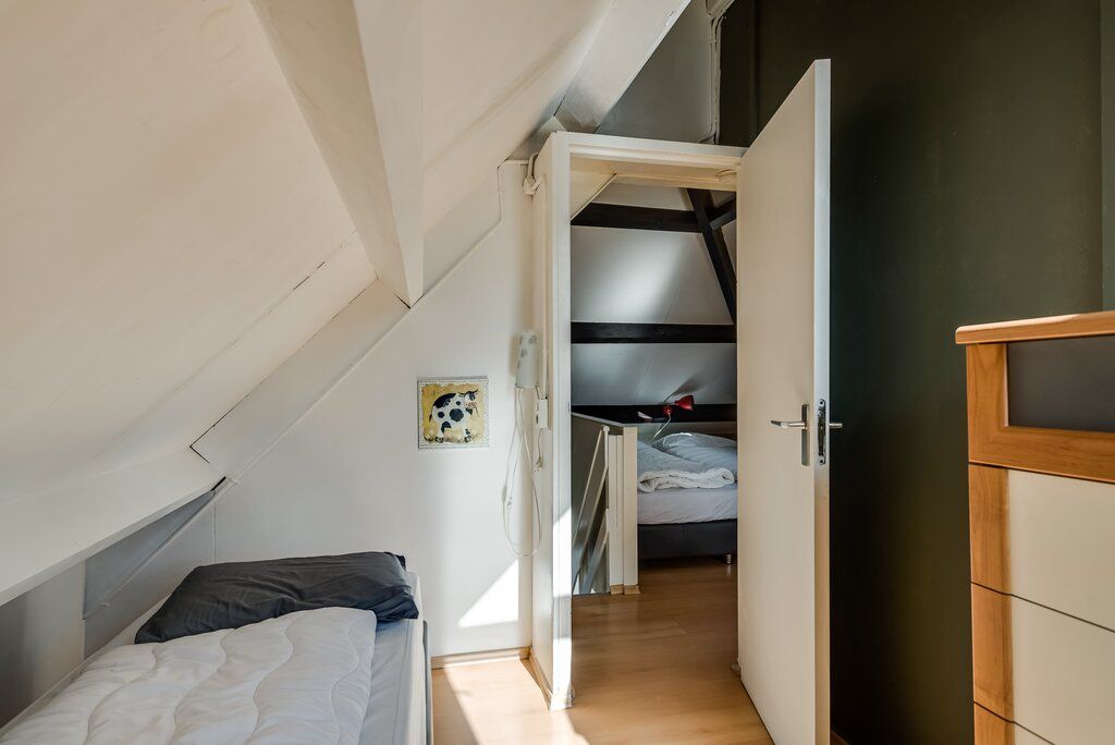 De verdieping beschikt over een overloop met dakraam, momenteel ingericht als extra slaap- of hobbyruimte. Daarnaast zijn er nog twee slaapkamers aanwezig, waardoor de woning verrassend veel slaapplaatsen biedt – ideaal voor gezinnen of gasten.