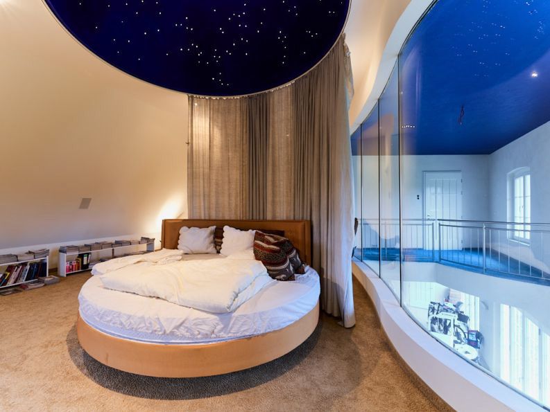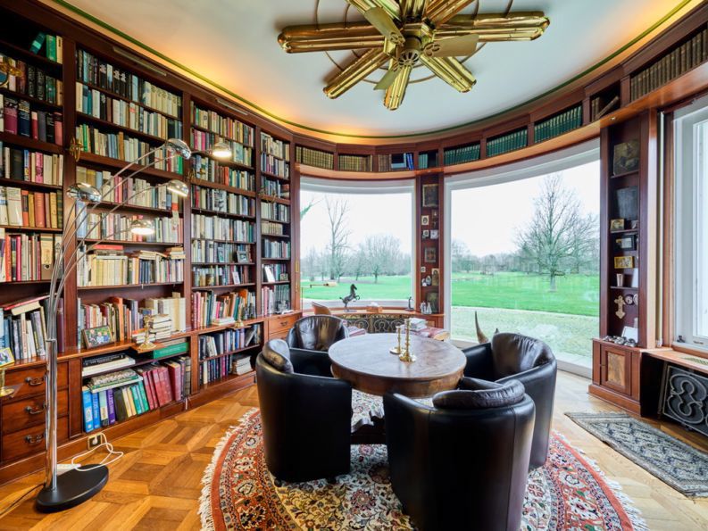 Rond vormgegeven bibliotheek met weids uitzicht over het landgoed