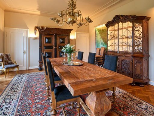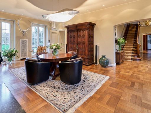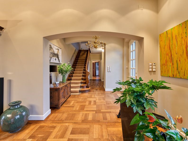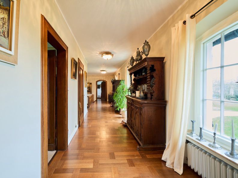 Gebouwd in 1939, draagt het huis de charme van klassieke architectuur, gecombineerd met de ruimte en het comfort van een royaal landgoed. Hier geen vluchtige moderniteit, maar “oude chique” in zijn meest pure vorm: elegant, warm en authentiek.