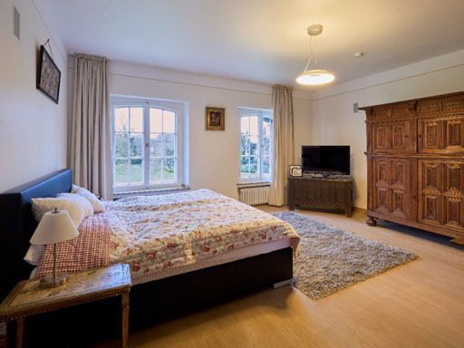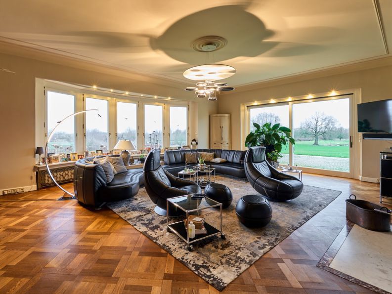 Binnen word je omarmd door een sfeer die zelden nog te vinden is. Hoge plafonds, royale vertrekken en zichtlijnen die telkens weer het omliggende landschap naar binnen halen. Het huis leeft met de seizoenen, van het zachte ochtendlicht dat door de ramen valt tot de lange avonden waarin het buiten langzaam tot rust komt.