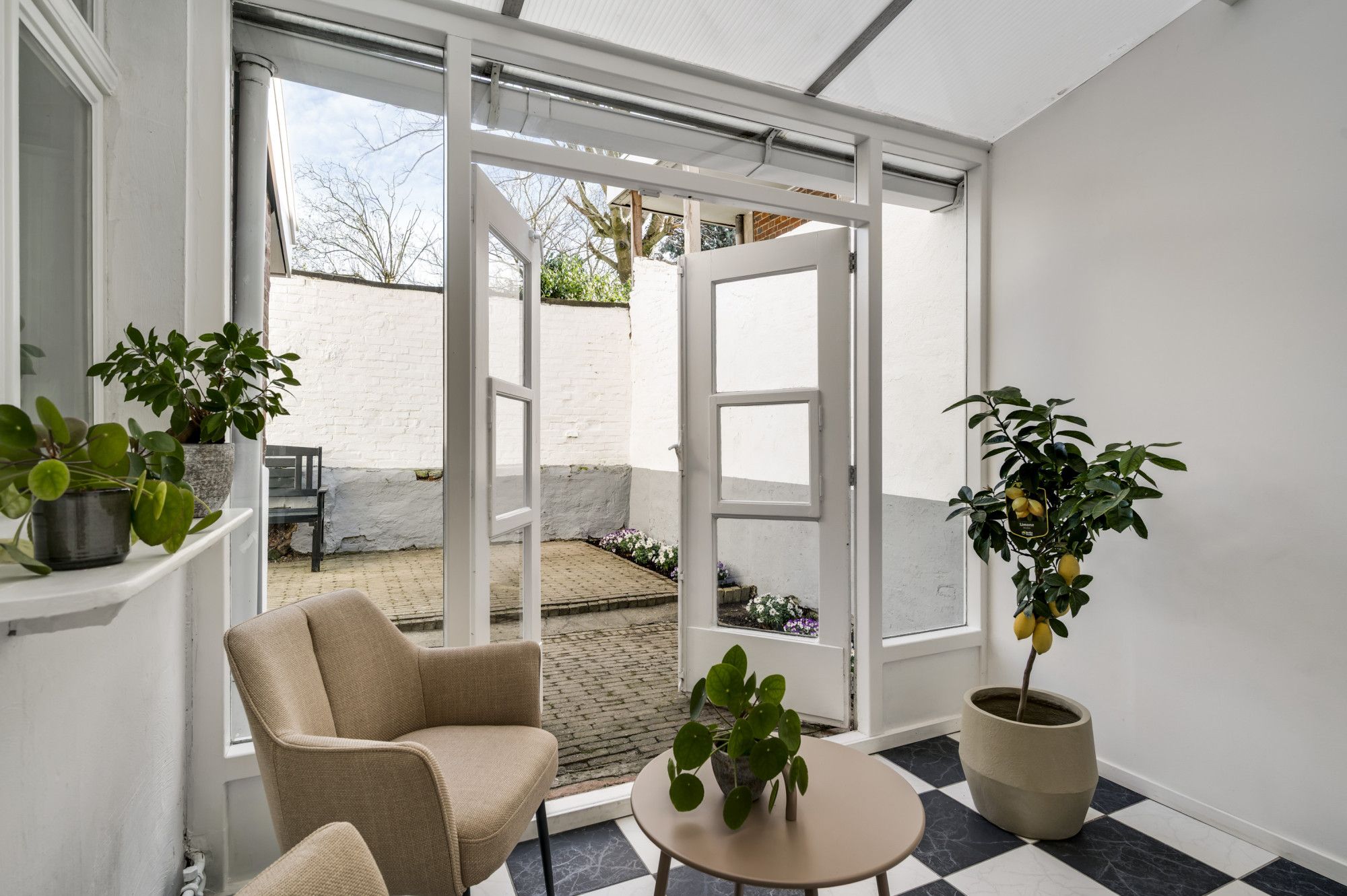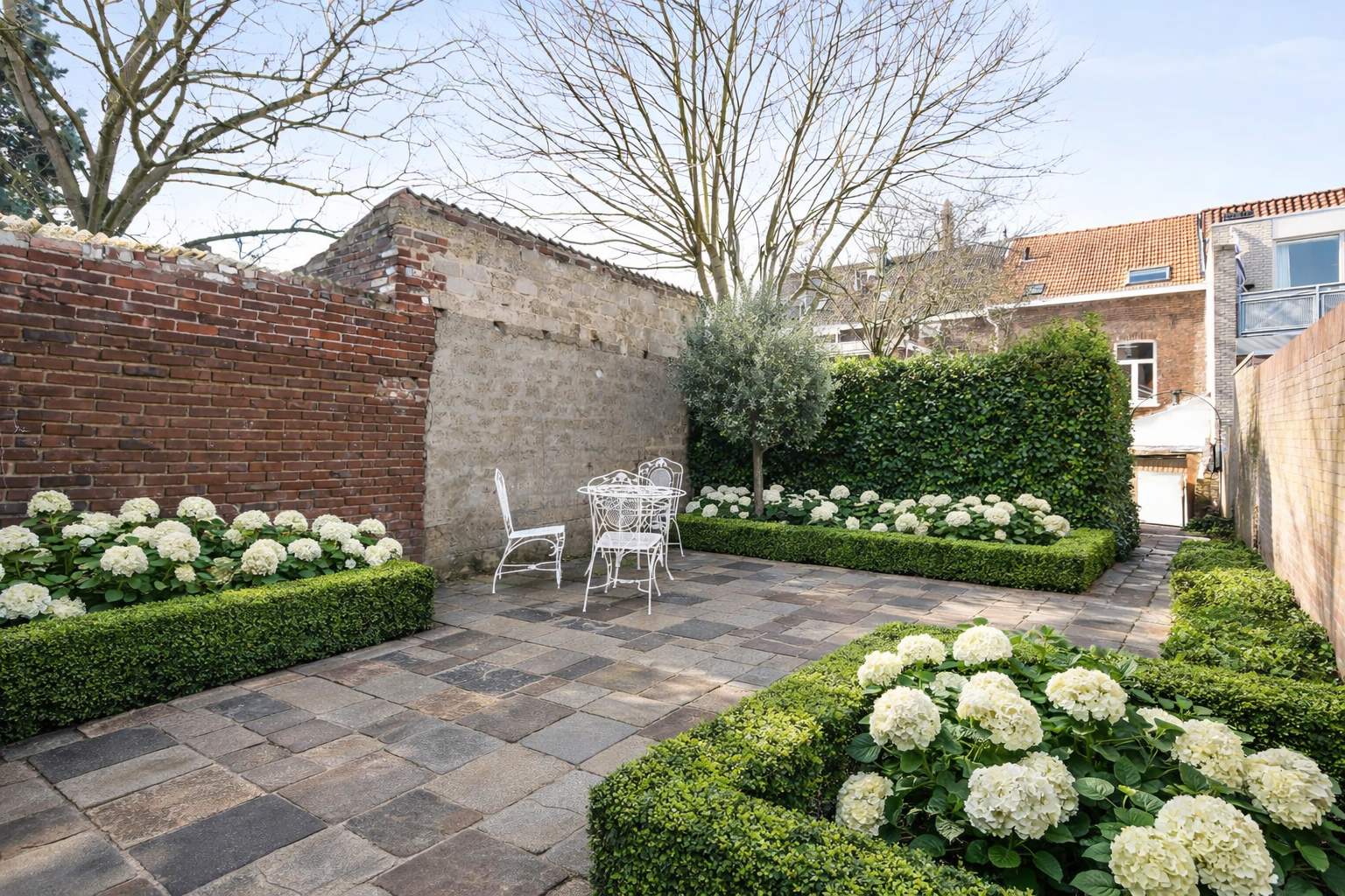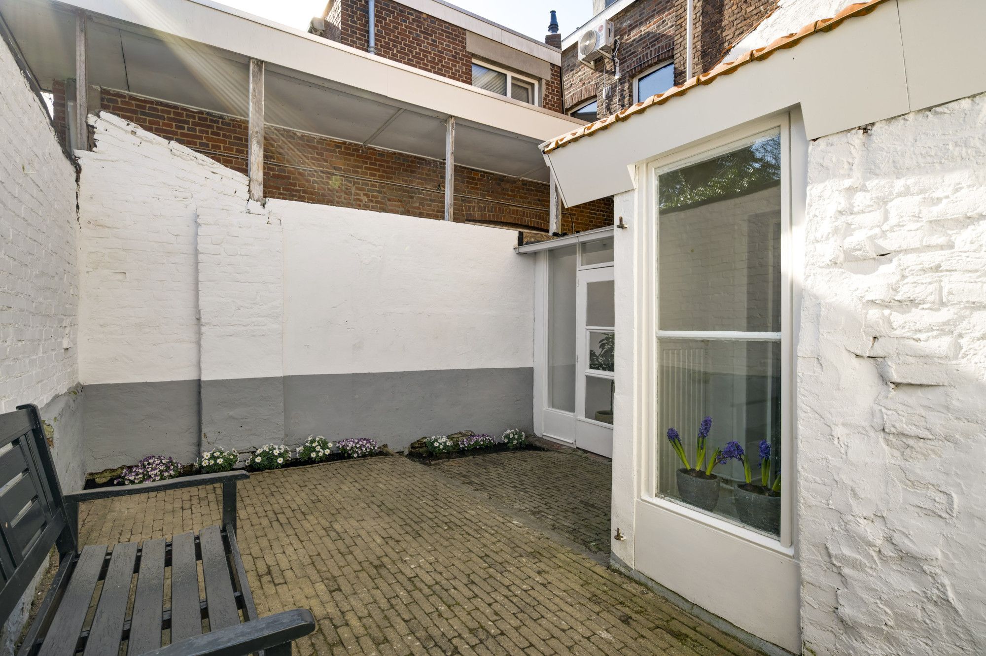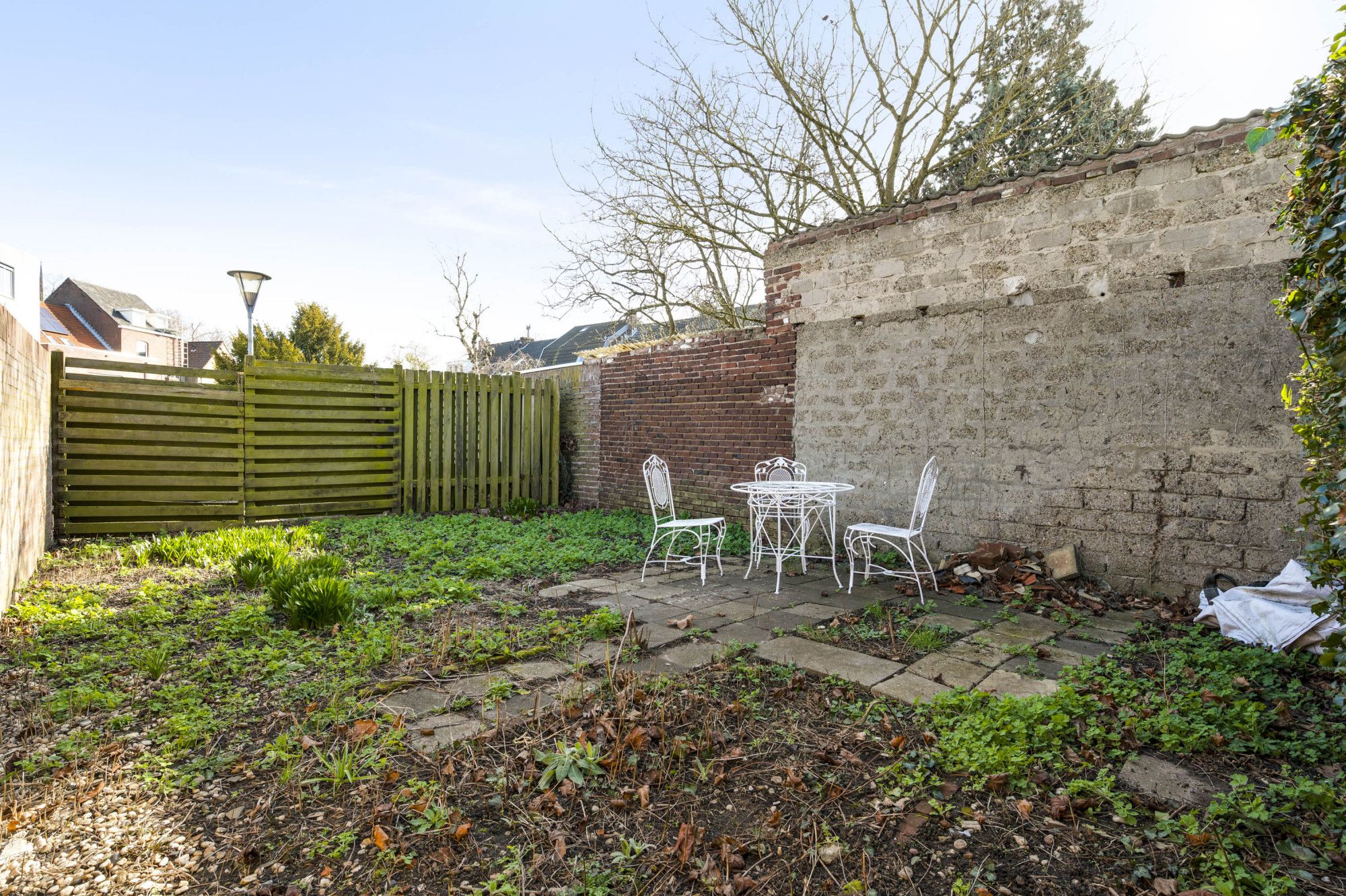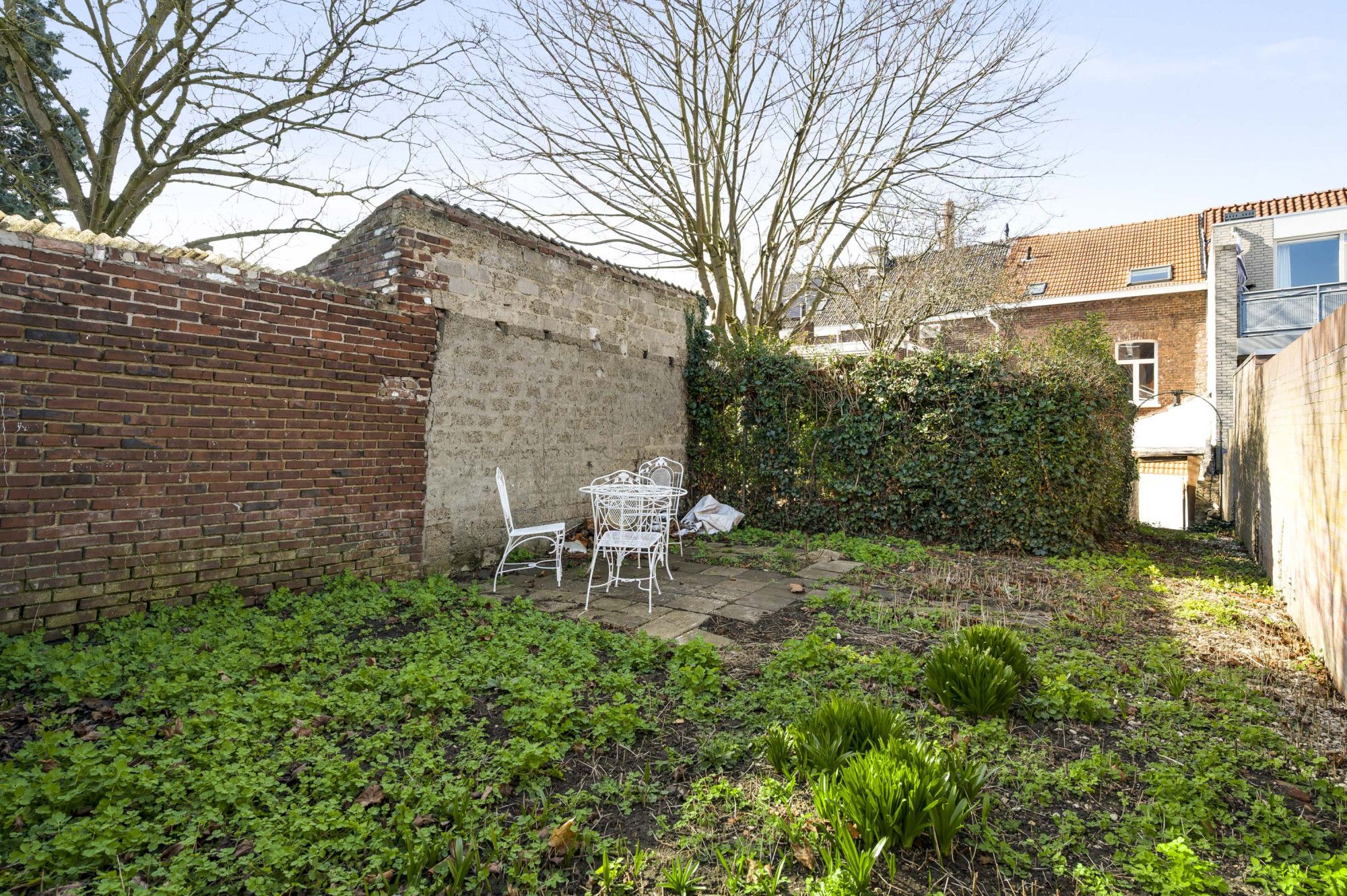 De zonnige stadstuin op het zuidoosten is een fijne en rustige plek om te ontspannen. De tuin is speels ingedeeld in twee delen: een direct aan de woning gelegen terras en een achtergelegen gedeelte met gazon en volop privacy, bereikbaar via een poortje. Dit deel van de tuin is nog aan te leggen, in de presentatie vind u een suggestie van de mogelijkheden terug.