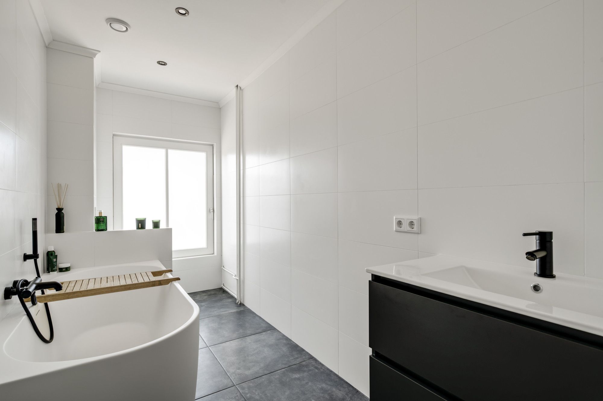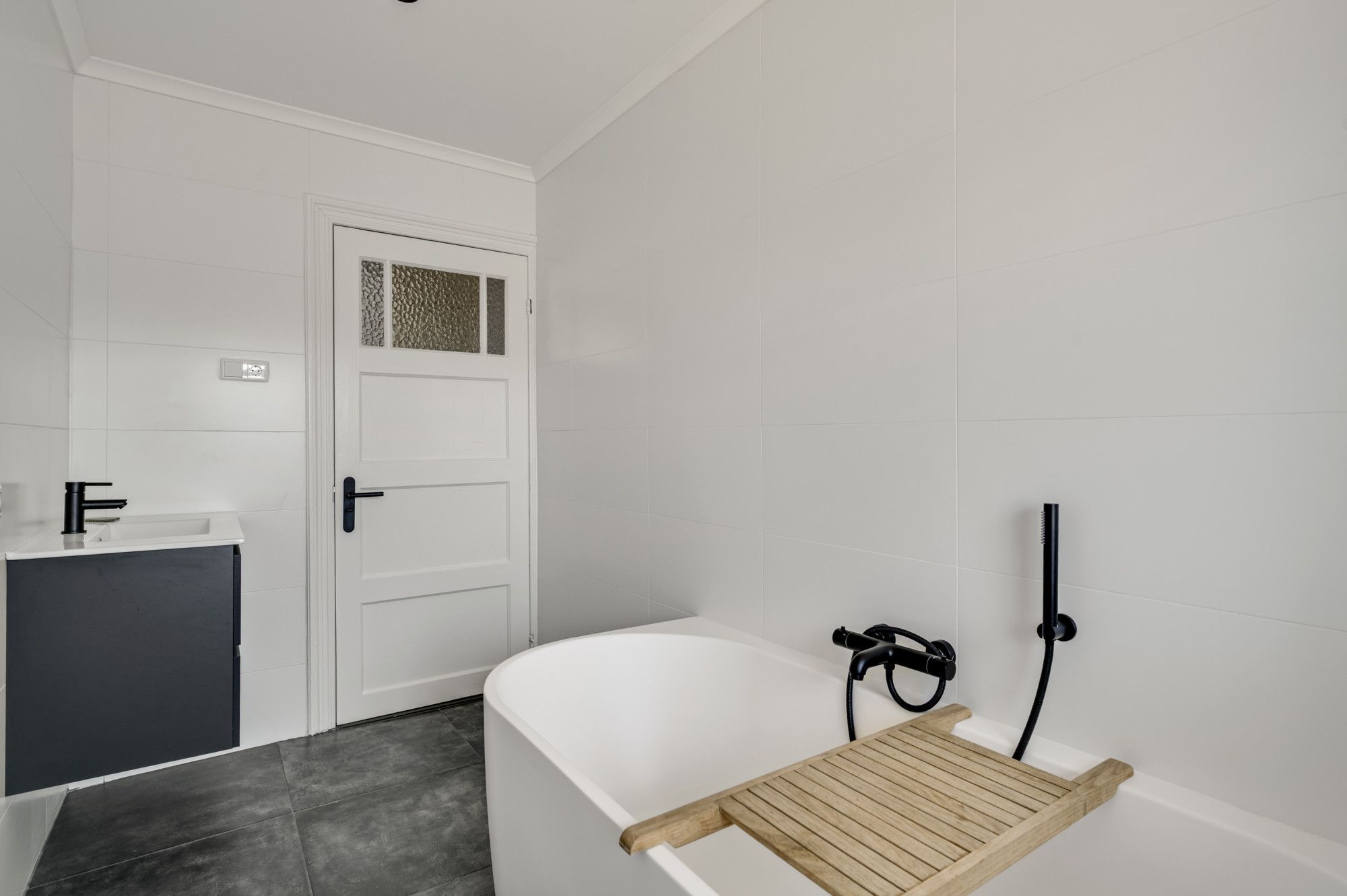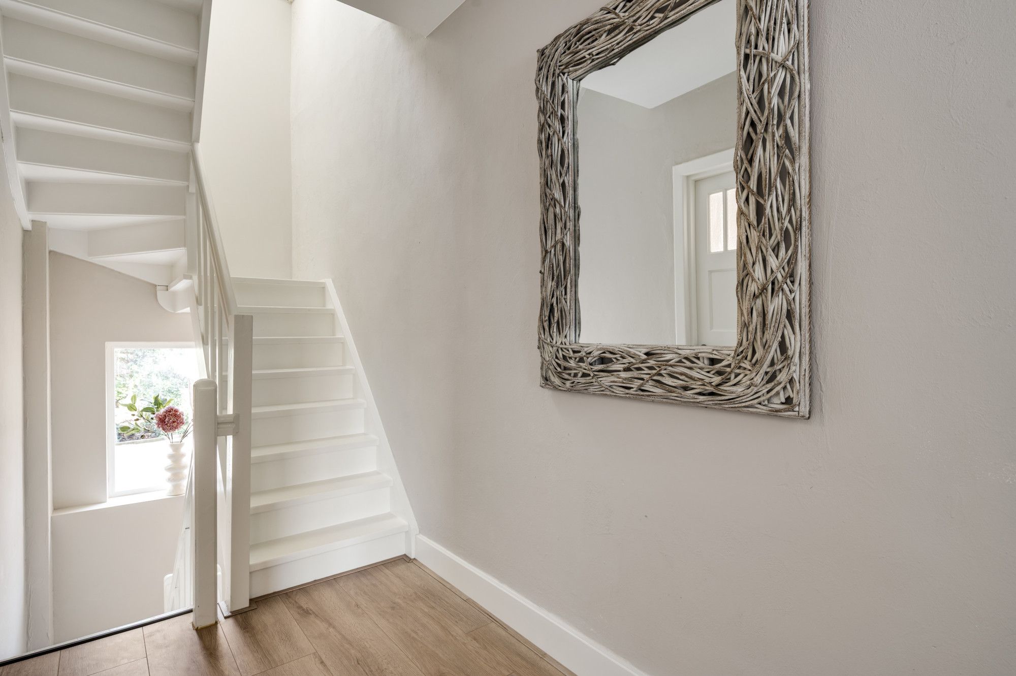 Hier bevinden zich de eerste twee royale slaapkamers en een recent (2025) vernieuwde, moderne badkamer met ligbad, toilet en wastafelmeubel. De verdieping is grotendeels afgewerkt met een nette laminaatvloer.